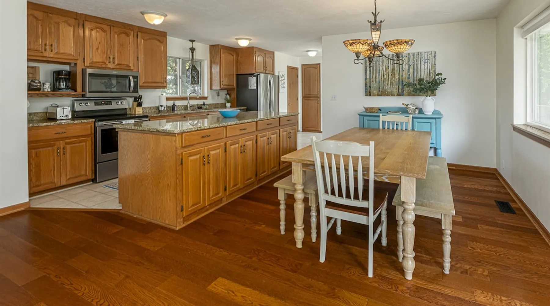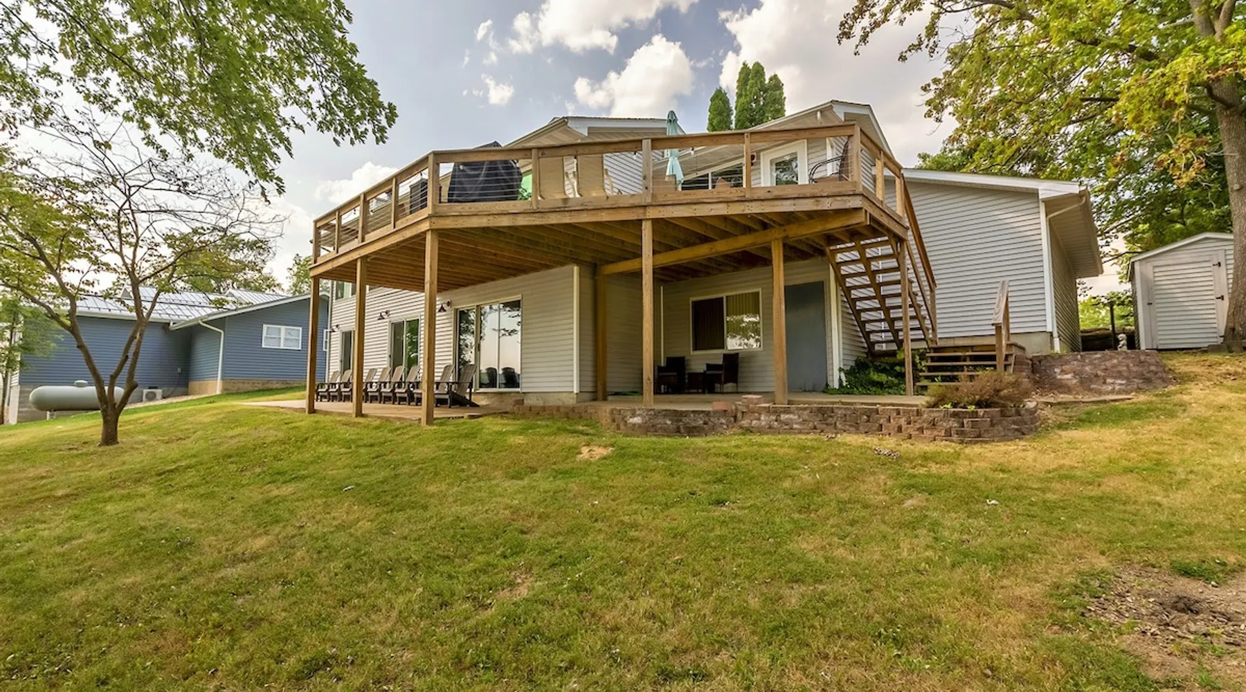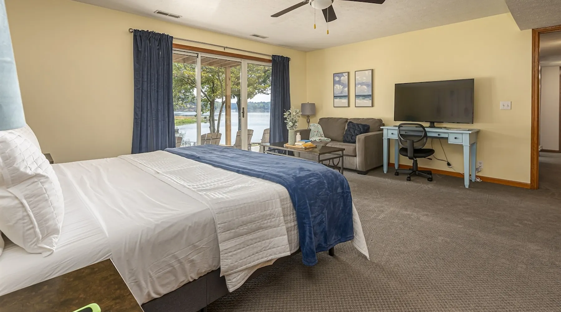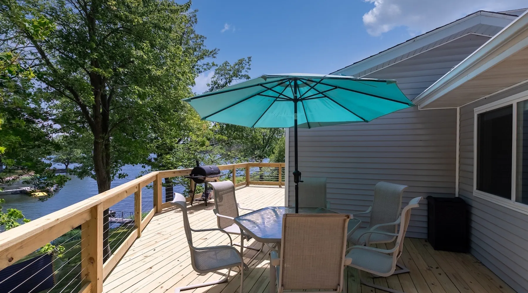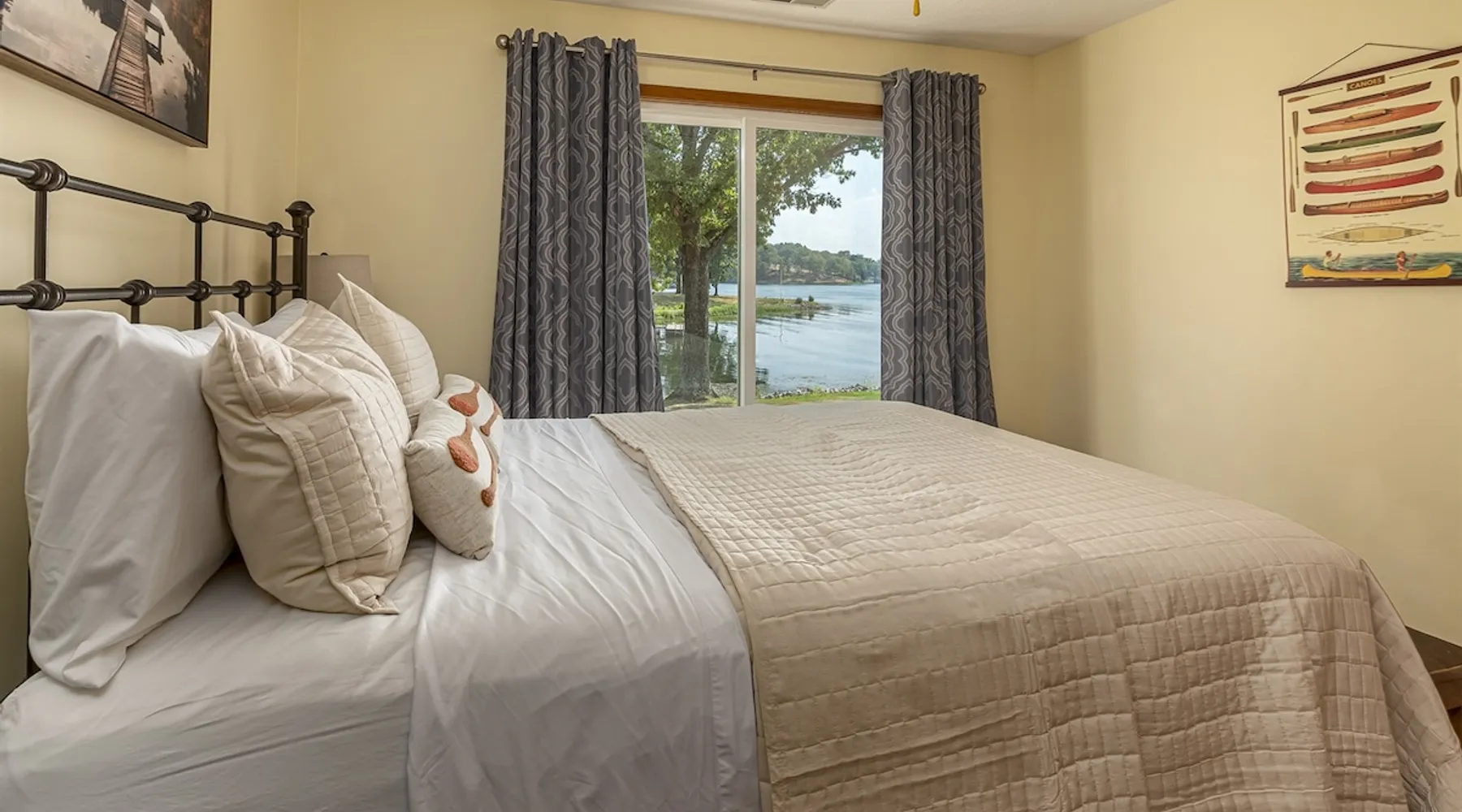 Set on a peaceful cove just off the main channel of Lake of Egypt, The Lookout at the Lake is a beautifully updated split-level home perfect for families and groups. Sleeping up to 10 guests, this lakefront getaway features a gentle slope to the dock, 4 kayaks, and easy access for swimming or boating. Enjoy evenings by the new fire pit or mornings on the deck overlooking the water. Close to the ski area, hiking, and wineries — it’s the perfect spot for those who love lake life with quiet charm. The space SLEEPING ARRANGEMENTS 1 King Bed in Master Bedroom in lower level 1 Queen Bed in 2nd Bedroom in lower level 1 Queen Bed in 3rd Bedroom in lower level 1 Bunk Bed in 4th Bedroom in upper level/loft MAIN LEVEL: Living Room with propane fireplace with endless windows overlooking the water Kitchen & Dining Area- Bench seating and chairs can fit up to 10 Walkout Deck with large charcoal grill and dining table + chairs for 10 Views of lake from every room Half Bathroom UPPER LEVEL/LOFT: Accessible by a secured ladder Bedroom 4: Bunk Bed Views of the Lake LOWER LEVEL: Master bedroom with king bed with walkout to patio and ensuite full bathroom and jetted soaker tub Bedroom 2: queen bed with walkout to patio Bedroom 3: queen bed with walkout to patio Washer/Dryer Bathroom 3: Full Bathroom OUTDOORS: Private "T" dock with ladder 4 Kayaks on site Fire pit for relaxation close to the water Hammock for extra lounging Great base for lake lounging and skiers/tubers- located on the main channel near the ski area It's a gentle slope of just 20 steps down from the house to the dock AMENITY HIGHLIGHTS: Located just off of the main channel Small private dock for boat tie-off Lake views from almost every room. Charcoal Grill and firepit provided Complimentary WiFi Personal Recommendations of things to do and places to go Guest access Guests have access to the entire property. Other things to note A rental agreement is required with ID verification within 48 hours of booking. Access to the property is only provided after the renter's agreement is signed. Check-in is after 3 PM. Check-out is before 10 AM. An off-site rental agreement is required with ID verification. Pet Policy: Pets are not allowed at this property. If guest are caught with a pet, guests may be subject to an immediate cancellation without refund. If evidence is found after your stay, there will be a $150 penalty for rule violation. Inventory: We provide a "starter package" of inventory for our cabin: 3 rolls of T.P. and 1 full roll of paper towels. Guests not staying overnight are welcomed. Loud, disruptive parties are not. BYO Beach Towels. We provide bath towels Maximum 4 vehicles- ABSOLUTELY NO STREET PARKING. No Boat Trailers allowed. Additional parking and/or trailer drop is located 10 minutes away at no cost. BYO Life Vests HIGHLY encouraged to ensure proper size. Firewood is not provided. Purchasing options available.
