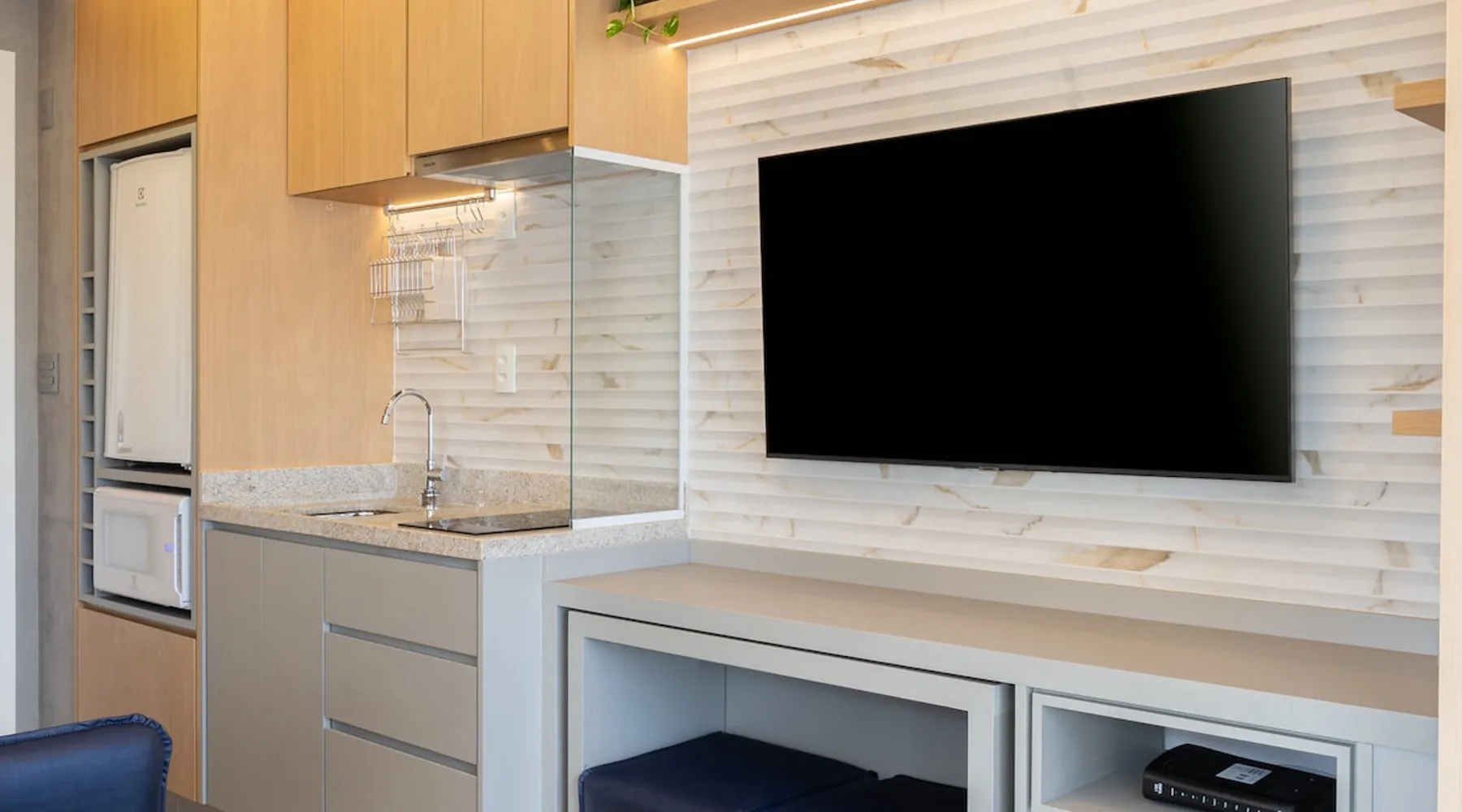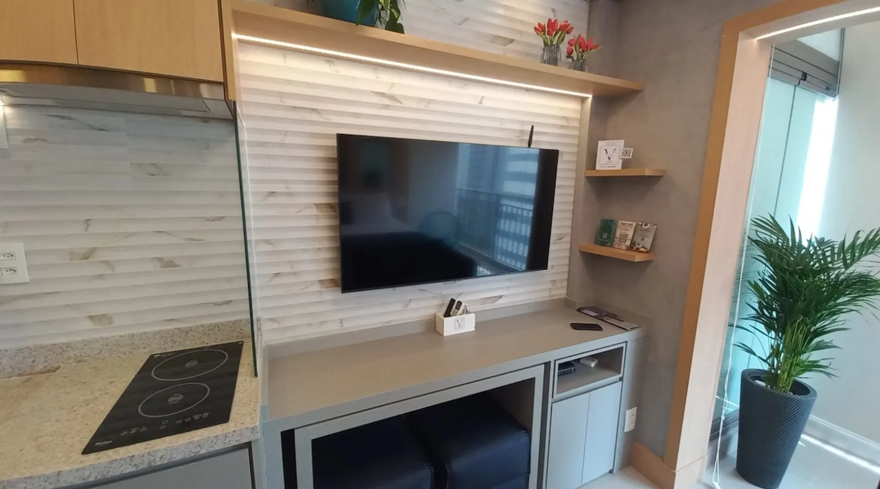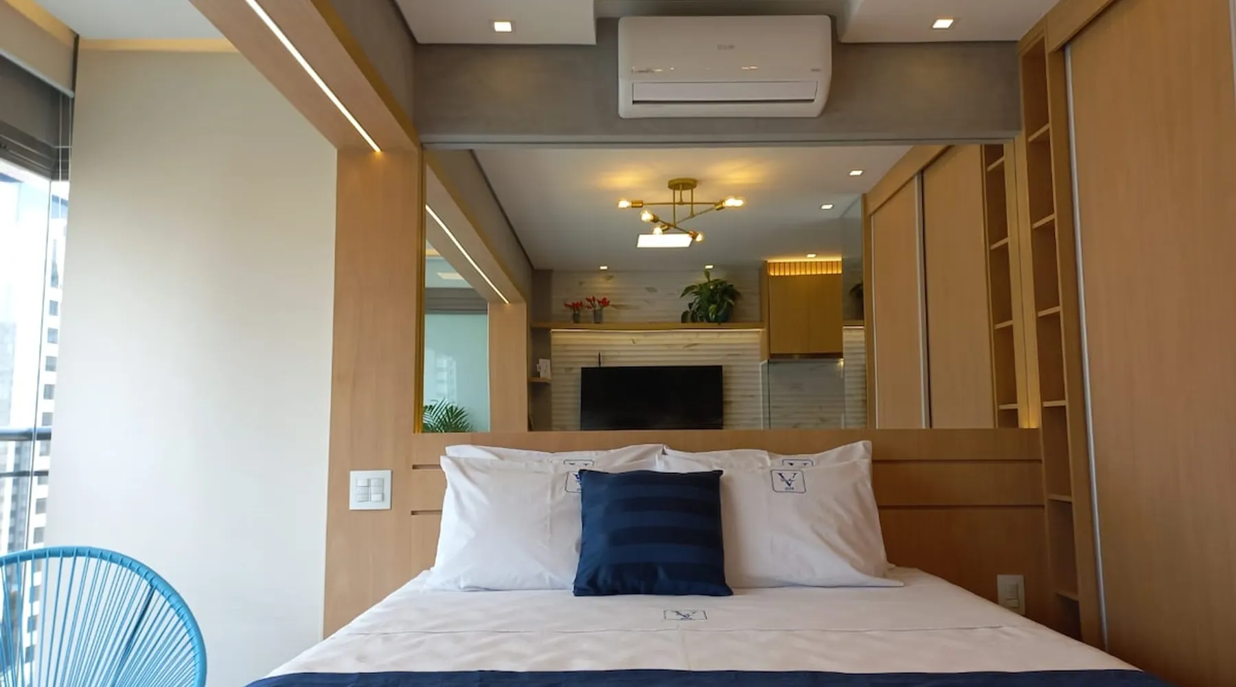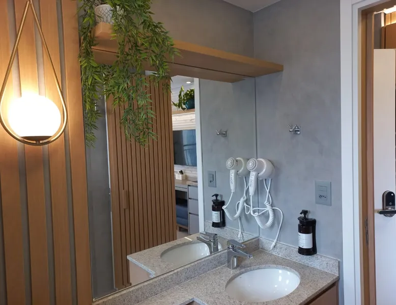 Studio in the heart of Moema, equipped with a queen-size bed + single auxiliary bed, wine cellar, minibar, stove, coffee maker, air-conditioning.50" TV, Wi-Fi, in a cozy atmosphere next to the Moema subway, close to Ibirapuera parks, bicycles and the best restaurants in the region. The decoration and lighting make the studio exclusive, adding personality and sophistication. Agreement: 24-hour valet parking (R$ 30.00/day); Location: Av Jamaris, 100 - Time Square hotel (building next door)
