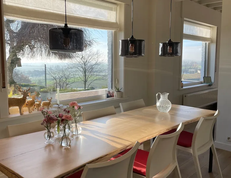 A few more dates available in the fall 🍂 🍄🥾🚲🍀 With" La Maison Colline" you can rent an experience hiking in the breathtaking Pays des Collines, enjoy the many cycling routes, the hospitality industry in nearby Ronse, but some of the many possibilities are NO parties allowed Cozy togetherness in an oasis of PEACE by the pool is also a full-fledged option The interior is decorated with taste and patience to emphasize the holiday atmosphere 😍 The space There is a cozy living room with fireplace, a beautifully furnished kitchen, upstairs a bathroom, 2 toilets and 3 large bedrooms each with an outside view. Guest access Guests get the whole house, the 2 garages are closed and PRIVATE. Other things to note Our home is in a quiet neighborhood with neighbors, beautiful nature and lots of birds, so no parties are given and NO loud music made ! No, no matter after 10 pm.
