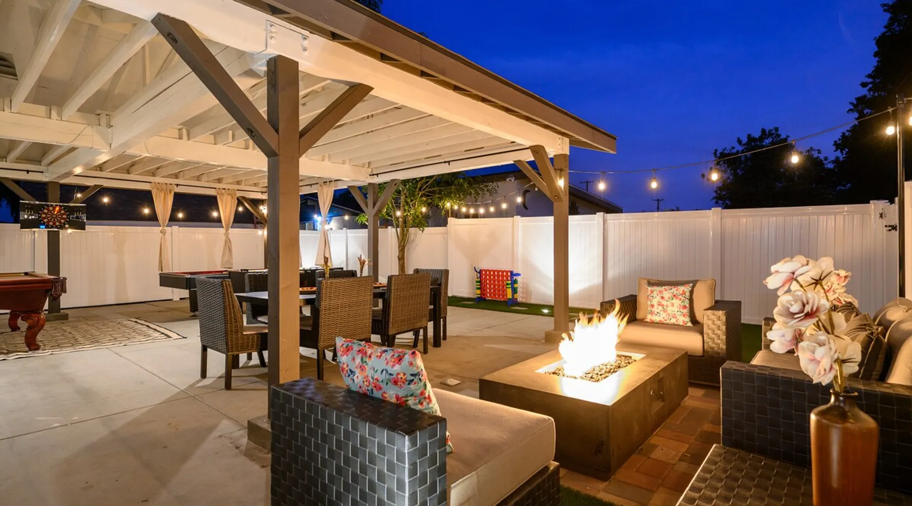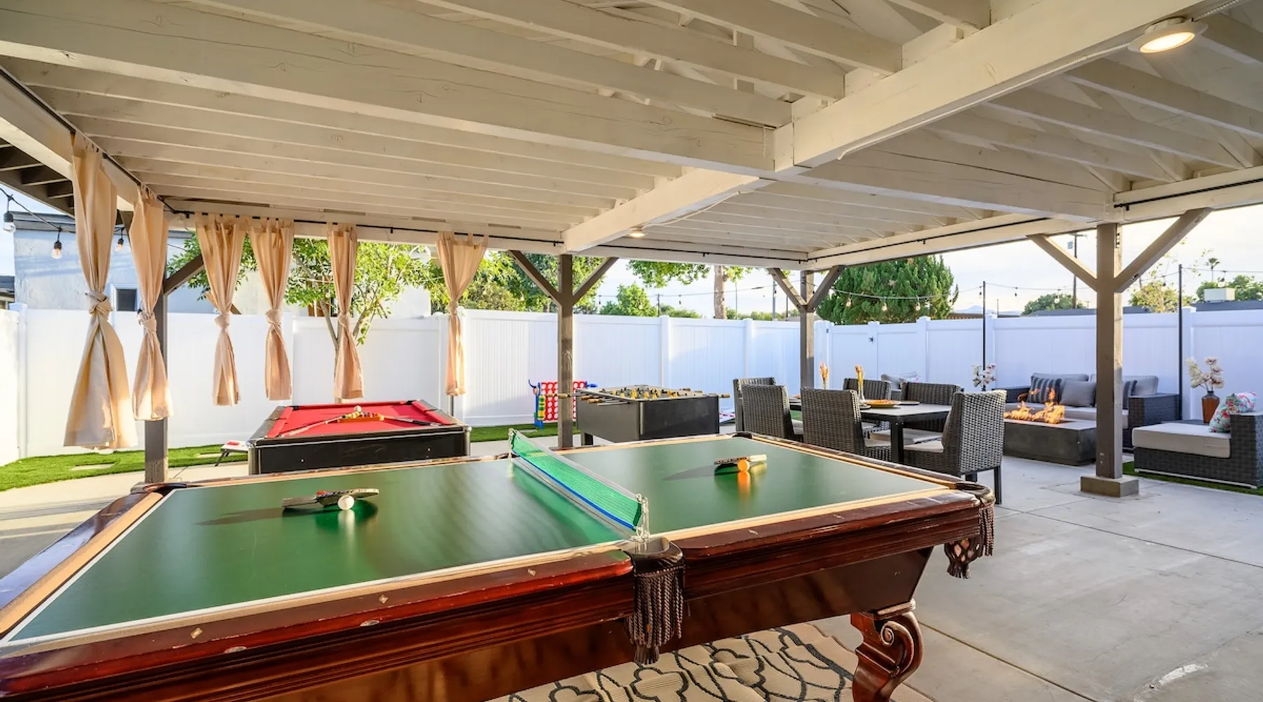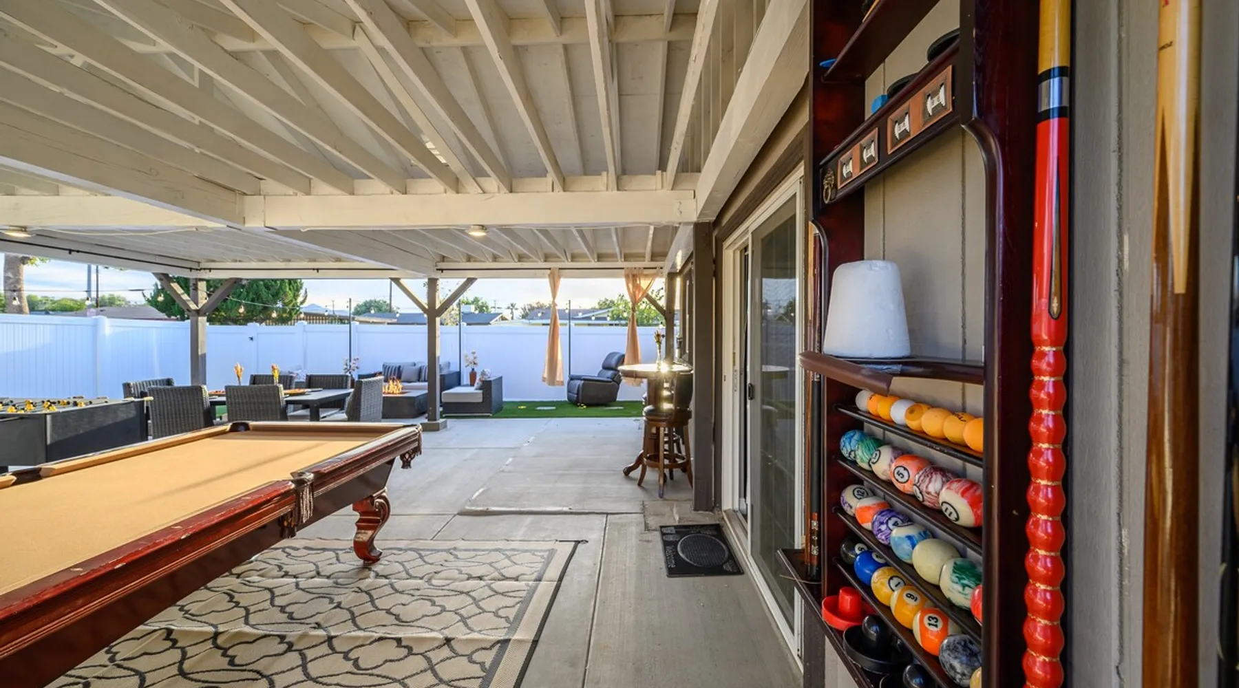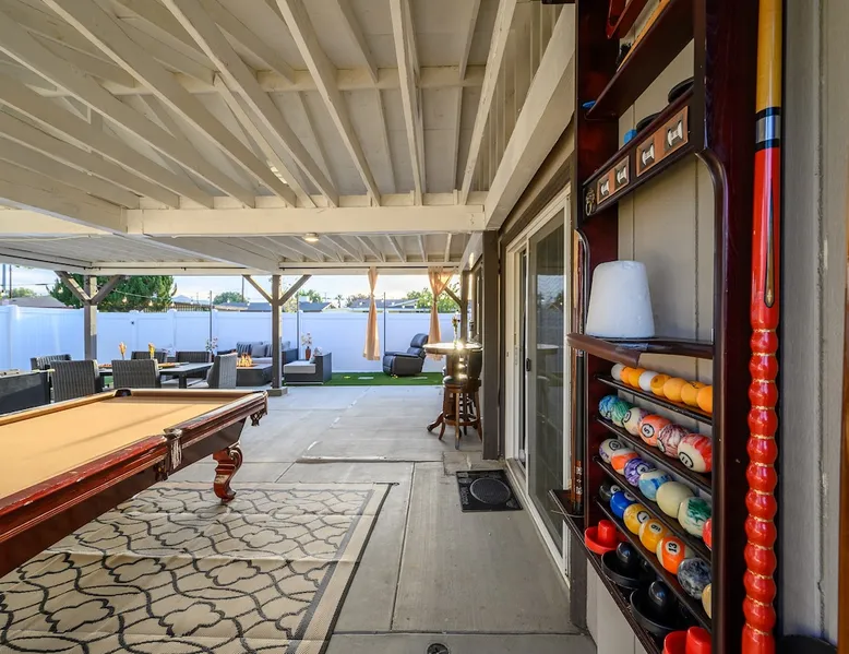 Welcome! We’re excited to host you and make your stay as enjoyable as possible. Our space is packed with entertainment options, including a pool table, ping pong, foosball, air hockey, cornhole, connect 4, and a cozy fire pit. All perfect for lasting memories. Conveniently located: 📍 1.4 miles from California Baptist University 📍 5.7 miles from Downtown Riverside We’re always happy to accommodate your needs. Just let us know how we can help! Book now and enjoy your home away from home! The space THIS HOME CAN ACCOMMODATE 10 GUESTS ---PLEASE READ ALL SECTION BELOW--- ------ NO SMOKING ------ Smoking or vaping of any kind is strictly prohibited inside the home. A $1,000 fee will be charged if cigarette butts or smoke odor are found inside. Please smoke only outside the property. ------ NO PARTIES ------ No parties or events are allowed, as we strive to maintain a peaceful environment for all guests and neighbors. -THE SPACE 1,200 Sq. FT. The Bedrooms: - The master bedroom features a comfortable king-size bed for two guests, an en-suite bathroom, and direct access to the backyard - The second bedroom has two queen-size beds, a nightstand, and a closet. It can comfortably accomadate up to four guests. - The third bedroom includes one queen-size bed, one full-size bed, a closet for your belongings, and a nightstand. It may accommodate up to four guests. The Bathrooms: **We maintain the bathrooms to the highest standards of cleanliness and hygiene. Each bathroom is fully stocked with essential amenities, including towels, shampoo, conditioner, body soap, and toilet paper.** - The master bedroom has a private bathroom equipped with double sinks, a bathtub, a shower, and a toilet. We ensure all amenities are in place before your arrival to provide a seamless and comfortable experience. - The second bathroom includes a sink, toilet, and shower. Of course, it will be thoroughly cleaned and sanitized before your arrival. Kitchen: - The kitchen is equipped with all essential appliances for your convenience. This includes a refrigerator, stove, oven, microwave, and tableware for all guests. Parking: - There is a designated driveway that fits 3 to 4 cars, and additional street parking is available on the street. - Please be mindful of street signs to avoid any parking tickets. Backyard - We offer a spacious backyard designed for your enjoyment and relaxation. It includes a versatile pool table that converts into a ping-pong table, along with air hockey, foosball, cornhole, and Connect 4 for hours of fun. You can also gather around the cozy fire pit or enjoy meals at the outdoor dining table. - We also have a grill available for you to enjoy. Please leave it clean when you’re done, so we can avoid a $25 cleaning fee from the cleaning crew. TRASH Collection: Trash pickup happens every Monday, and landscaping is usually done that day too. If you arrive a little earlier, you might see some bins or a bit of leftover trash but don’t worry, it’ll be taken care of soon! Guest access Guests have full private access to the entire home, including all three bedrooms and two bathrooms. You’ll also enjoy exclusive use of the spacious backyard with all our entertainment options, fire pit, outdoor dining area, and grill. Parking is available in the designated driveway, and additional street parking is nearby. Other things to note To ensure your safety, our River House is equipped with four exterior security cameras. Please note that there are no cameras inside the home. These cameras are not actively monitored and are in place solely for your protection. Pets are not allowed at this time. We’ve put a lot of love into making this home cozy and fun just for you. We kindly ask that you treat the house with care so everyone can enjoy it and avoid any trouble. If you need anything or have questions, we’re here to help and want to make sure your stay is amazing. Thanks so much for choosing our home. We can’t wait to host you! BY BOOKING THIS HOME, YOU ARE AGREEING TO THE HOUSE RULES AND YOU AGREE TO HOLD YOURSELF LIABLE FOR ANY PERSONAL INJURIES THAT MAY OCCUR DURING YOUR STAY.
