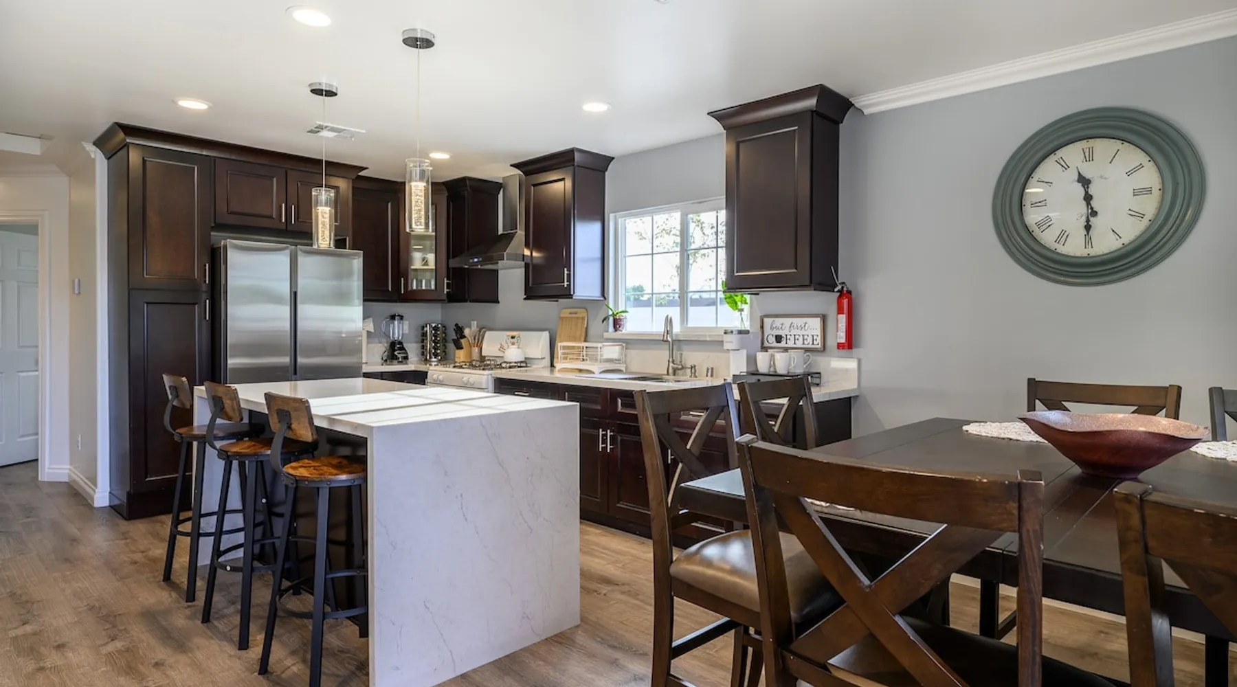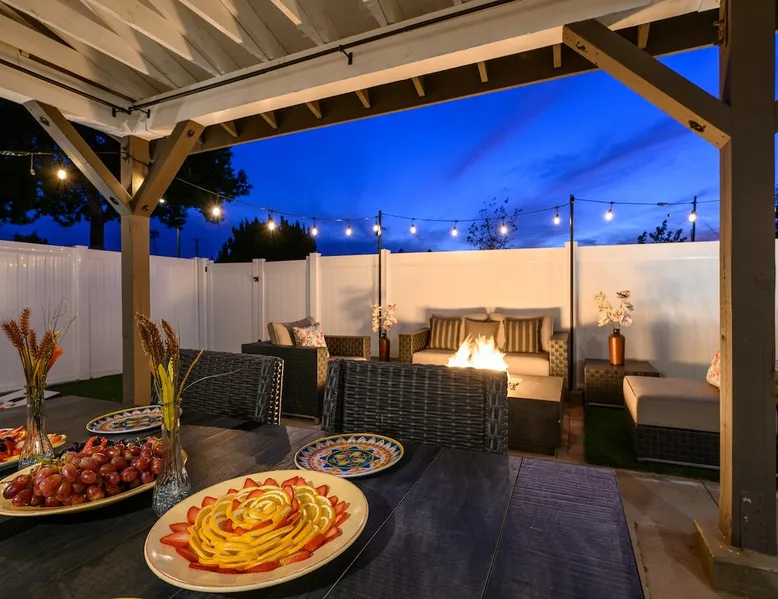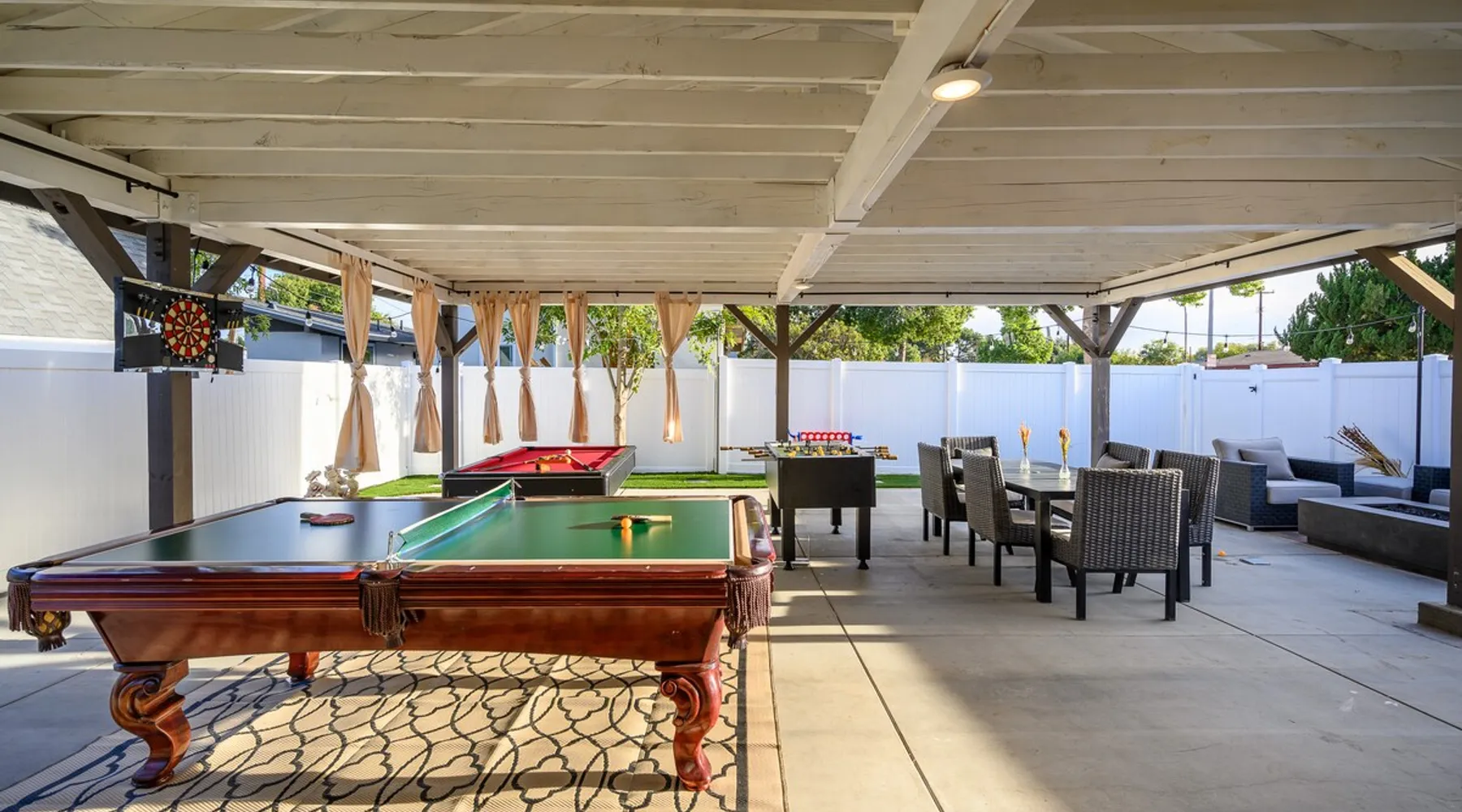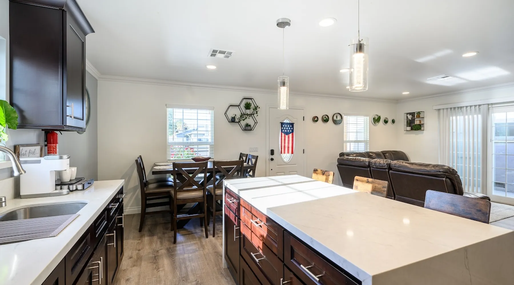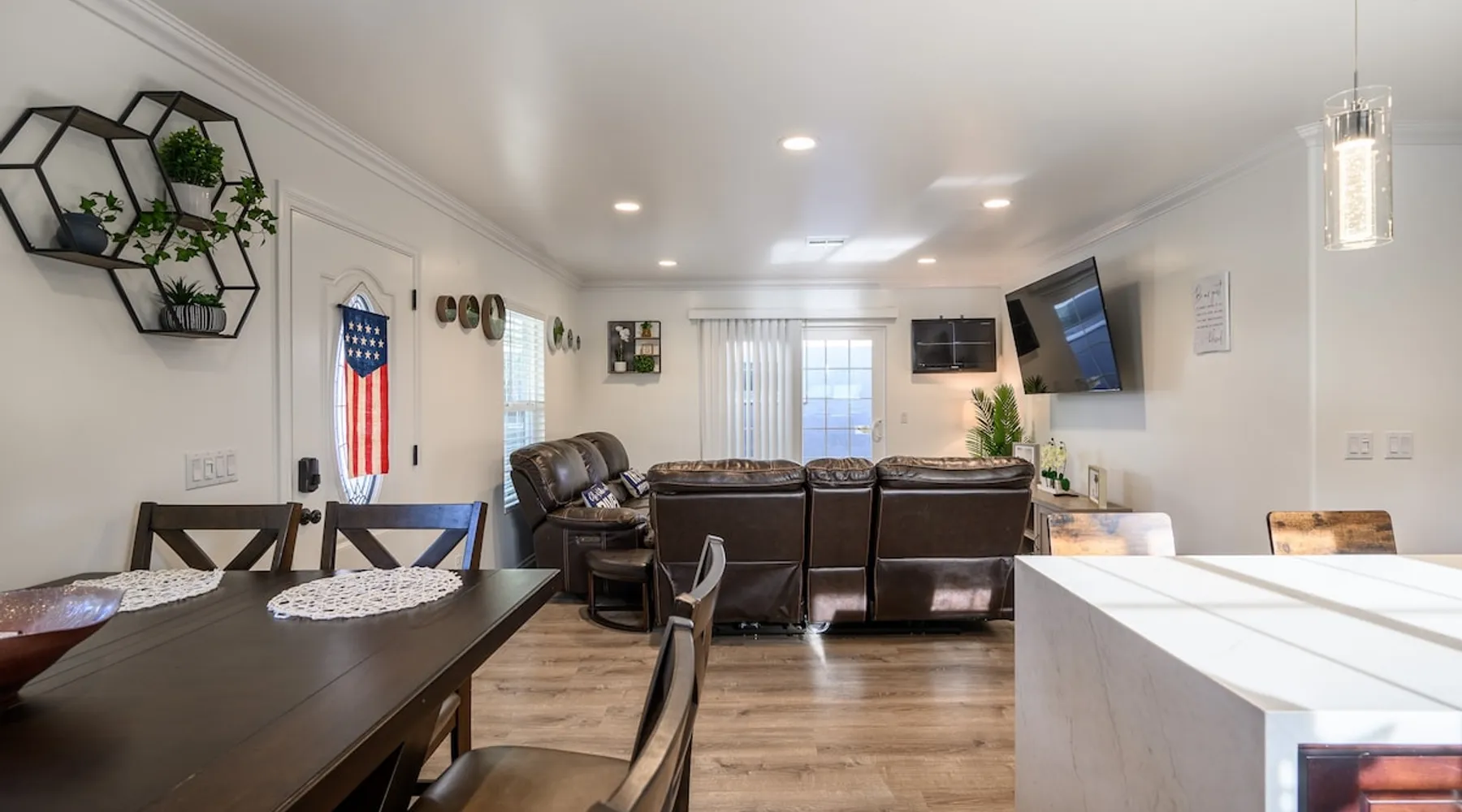 Welcome! We’re excited to host you and make your stay as enjoyable as possible. Our space is packed with entertainment options, including a pool table, ping pong, foosball, air hockey, cornhole, connect 4, and a cozy fire pit. All perfect for lasting memories. Conveniently located: 📍 1.4 miles from California Baptist University 📍 5.7 miles from Downtown Riverside We’re always happy to accommodate your needs. Just let us know how we can help! Book now and enjoy your home away from home! The space THIS HOME CAN ACCOMMODATE 10 GUESTS ---PLEASE READ ALL SECTION BELOW--- ------ NO SMOKING ------ Smoking or vaping of any kind is strictly prohibited inside the home. A $1,000 fee will be charged if cigarette butts or smoke odor are found inside. Please smoke only outside the property. ------ NO PARTIES ------ No parties or events are allowed, as we strive to maintain a peaceful environment for all guests and neighbors. -THE SPACE 1,200 Sq. FT. The Bedrooms: - The master bedroom features a comfortable king-size bed for two guests, an en-suite bathroom, and direct access to the backyard - The second bedroom has two queen-size beds, a nightstand, and a closet. It can comfortably accomadate up to four guests. - The third bedroom includes one queen-size bed, one full-size bed, a closet for your belongings, and a nightstand. It may accommodate up to four guests. The Bathrooms: **We maintain the bathrooms to the highest standards of cleanliness and hygiene. Each bathroom is fully stocked with essential amenities, including towels, shampoo, conditioner, body soap, and toilet paper.** - The master bedroom has a private bathroom equipped with double sinks, a bathtub, a shower, and a toilet. We ensure all amenities are in place before your arrival to provide a seamless and comfortable experience. - The second bathroom includes a sink, toilet, and shower. Of course, it will be thoroughly cleaned and sanitized before your arrival. Kitchen: - The kitchen is equipped with all essential appliances for your convenience. This includes a refrigerator, stove, oven, microwave, and tableware for all guests. Parking: - There is a designated driveway that fits 3 to 4 cars, and additional street parking is available on the street. - Please be mindful of street signs to avoid any parking tickets. Backyard - We offer a spacious backyard designed for your enjoyment and relaxation. It includes a versatile pool table that converts into a ping-pong table, along with air hockey, foosball, cornhole, and Connect 4 for hours of fun. You can also gather around the cozy fire pit or enjoy meals at the outdoor dining table. - We also have a grill available for you to enjoy. Please leave it clean when you’re done, so we can avoid a $25 cleaning fee from the cleaning crew. TRASH Collection: Trash pickup happens every Monday, and landscaping is usually done that day too. If you arrive a little earlier, you might see some bins or a bit of leftover trash but don’t worry, it’ll be taken care of soon! Guest access Guests have full private access to the entire home, including all three bedrooms and two bathrooms. You’ll also enjoy exclusive use of the spacious backyard with all our entertainment options, fire pit, outdoor dining area, and grill. Parking is available in the designated driveway, and additional street parking is nearby. Other things to note To ensure your safety, our River House is equipped with four exterior security cameras. Please note that there are no cameras inside the home. These cameras are not actively monitored and are in place solely for your protection. Pets are not allowed at this time. We’ve put a lot of love into making this home cozy and fun just for you. We kindly ask that you treat the house with care so everyone can enjoy it and avoid any trouble. If you need anything or have questions, we’re here to help and want to make sure your stay is amazing. Thanks so much for choosing our home. We can’t wait to host you! BY BOOKING THIS HOME, YOU ARE AGREEING TO THE HOUSE RULES AND YOU AGREE TO HOLD YOURSELF LIABLE FOR ANY PERSONAL INJURIES THAT MAY OCCUR DURING YOUR STAY.
