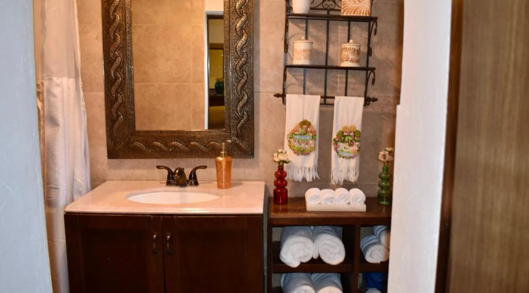 Comfortable Accommodations: Casa Pueblo 4 Bedroom in Todos Santos offers four bedrooms and three bathrooms. The holiday home features family rooms and a spacious garden, ensuring a pleasant stay for all guests. Modern Amenities: The property includes air-conditioning, a fully equipped kitchen, washing machine, and free toiletries. Additional amenities include a coffee machine, dining table, outdoor furniture, and a dining area. Convenient Location: Located 57 mi from Manuel Márquez de León International Airport, Casa Pueblo 4 Bedroom is 1.9 mi from La Cachorra and La Poza Beaches. Nearby attractions include Todos Santos Plaza and the Todos Santos Museum. Guest Satisfaction: Highly rated by guests, the holiday home provides a paid airport shuttle service and reception staff who speak English and Spanish. In the fully equipped kitchen, guests will find a refrigerator, kitchenware, an oven and a microwave. The holiday home offers air conditioning, a washing machine, as well as an outdoor dining area and outdoor furniture. The unit offers 5 beds.