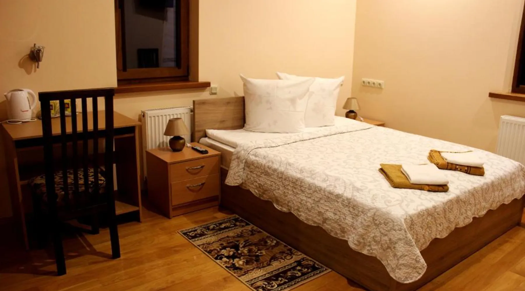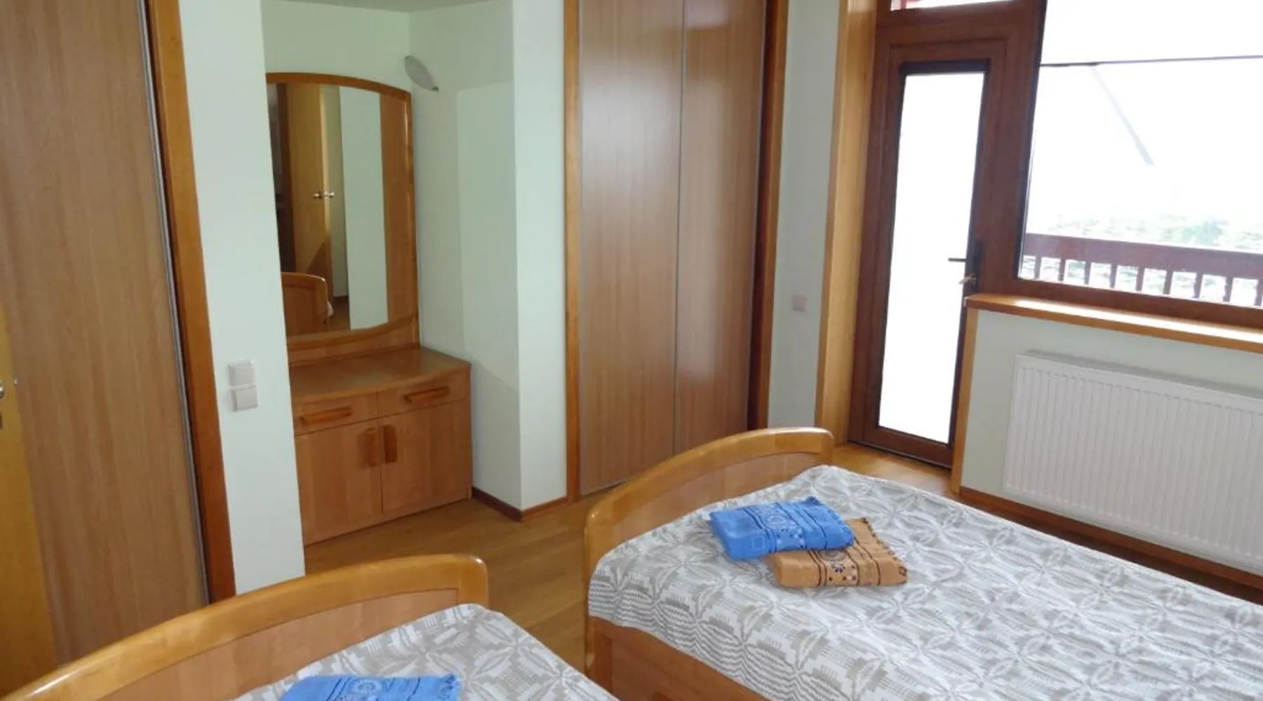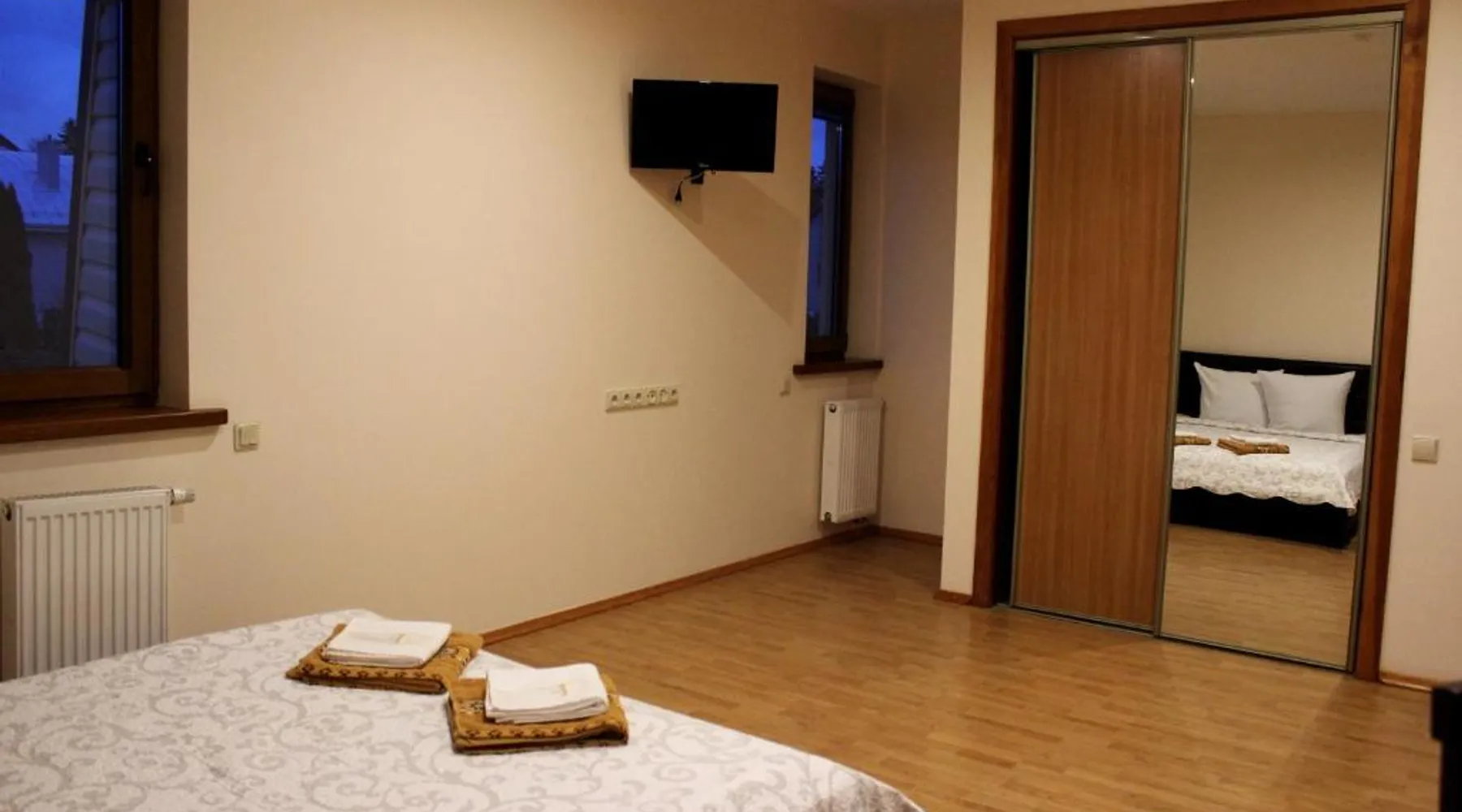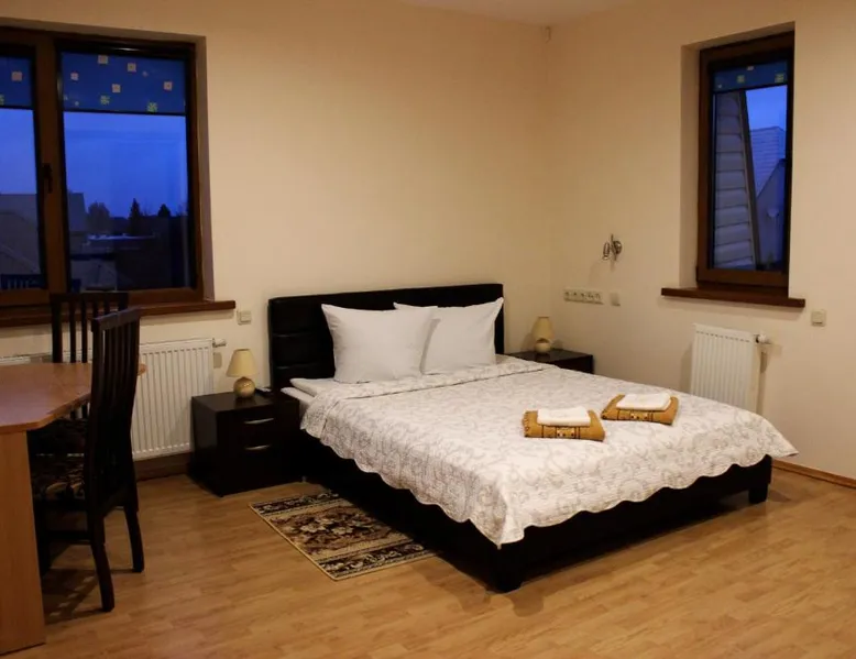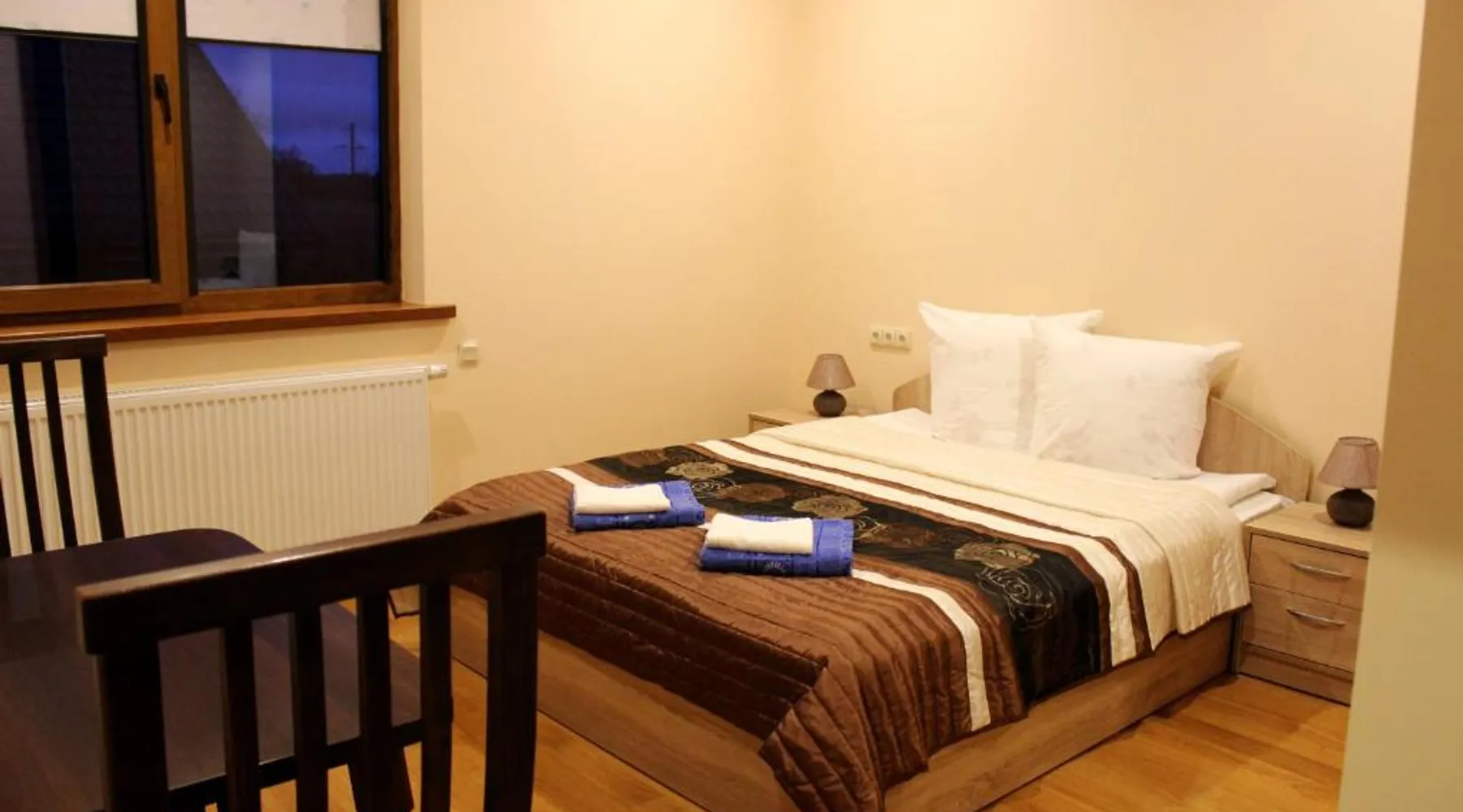 Comfortable Accommodations: Vidų Guest House in Utena offers family rooms with private bathrooms, balconies, and terraces. Each room includes a work desk, TV, and soundproofing for a pleasant stay. Essential Facilities: Guests enjoy a garden, terrace, and free WiFi. The property features a shared kitchen, business area, outdoor seating, and free private parking. Additional amenities include a dining area, kitchenware, and a microwave. Convenient Location: Located 66 mi from Vilnius International Airport, the guest house is near attractions such as the Lithuanian Ethnocosmology Museum (19 mi) and Horse Museum (29 mi). An ice-skating rink is also in the vicinity. Highly Rated by Guests: Vidų Guest House is highly rated by guests for its excellent service and comfortable accommodations. Providing free toiletries, this twin/double room includes a private bathroom with a shower and a hairdryer. The twin/double room provides soundproof walls, a wardrobe, an electric kettle, parquet floors, as well as a flat-screen TV.
