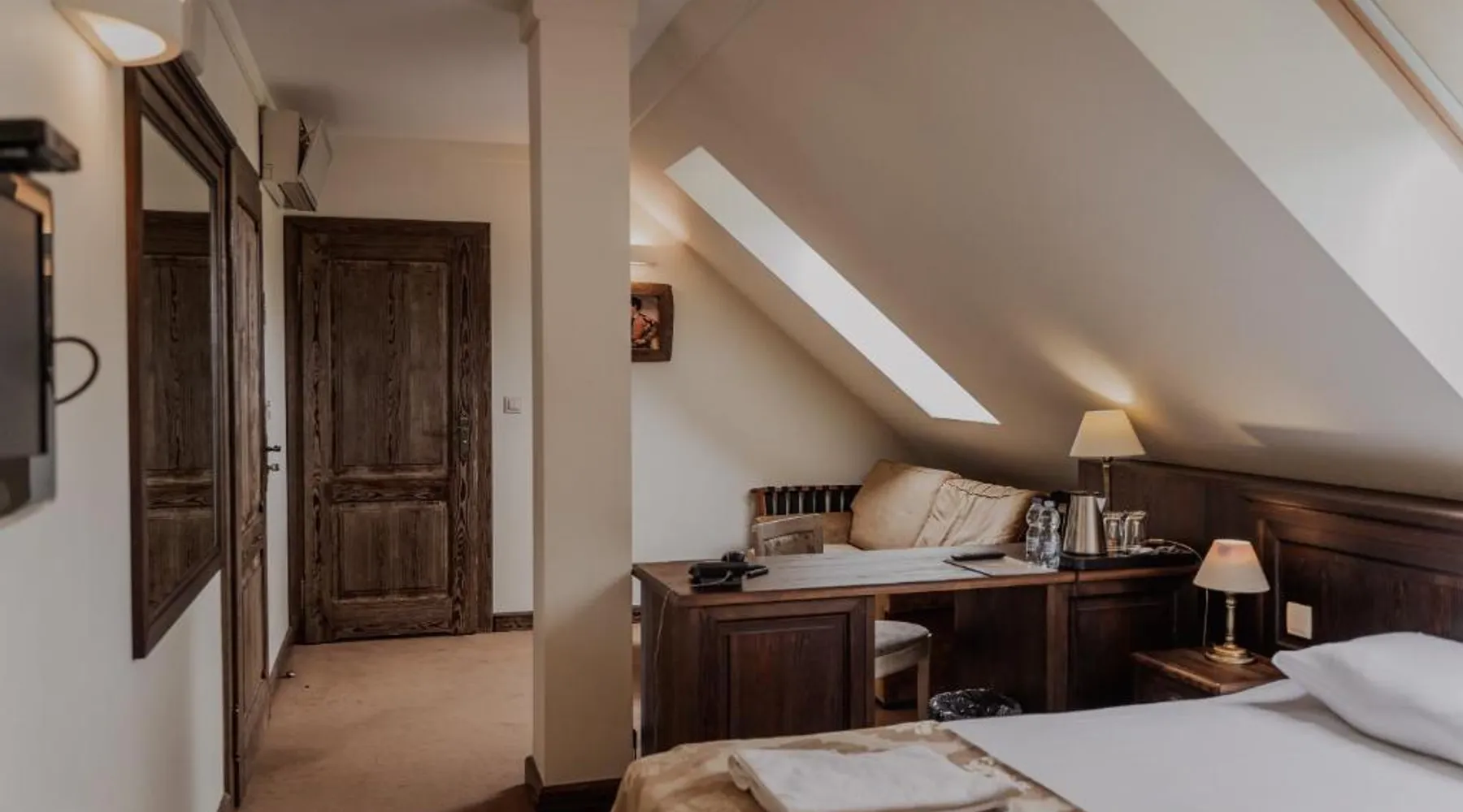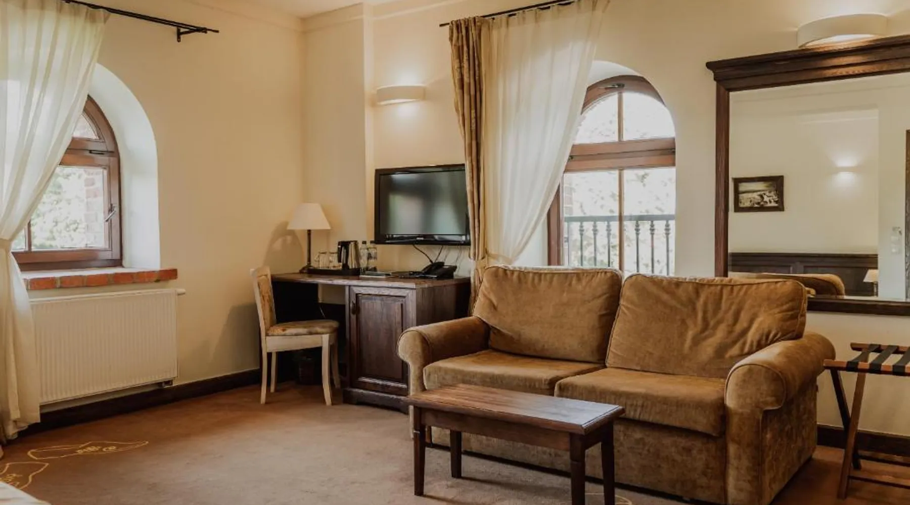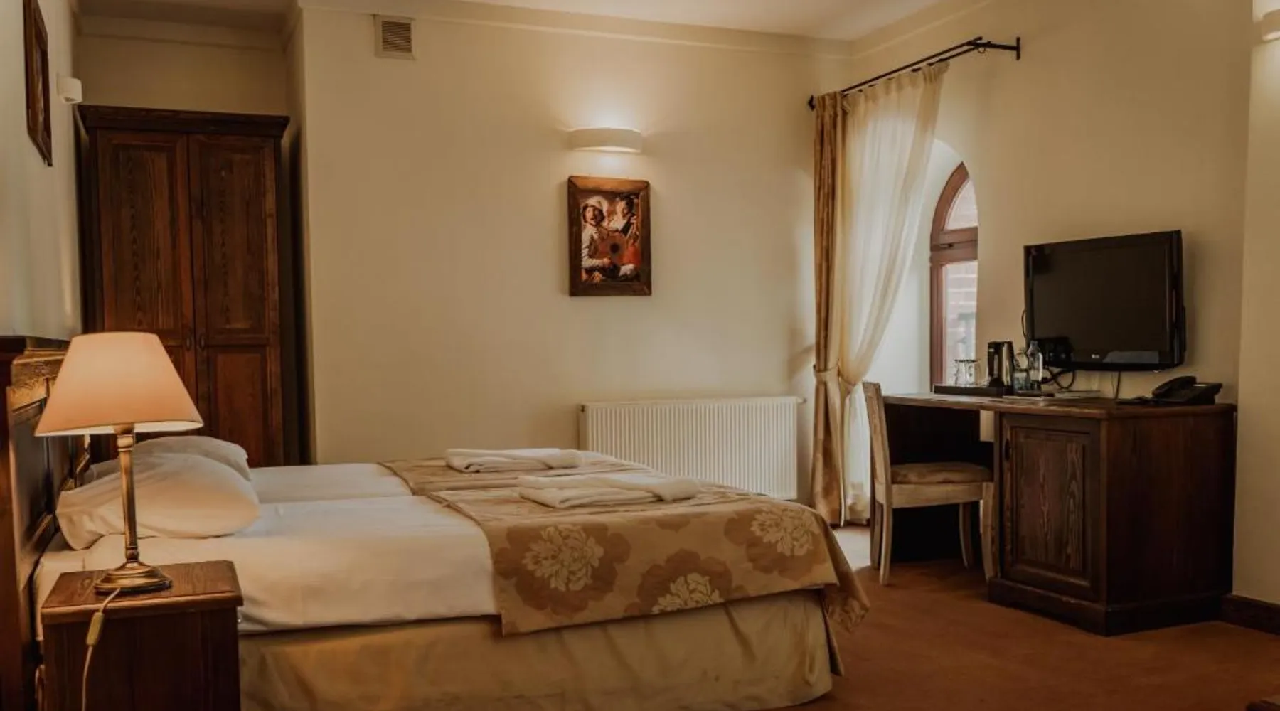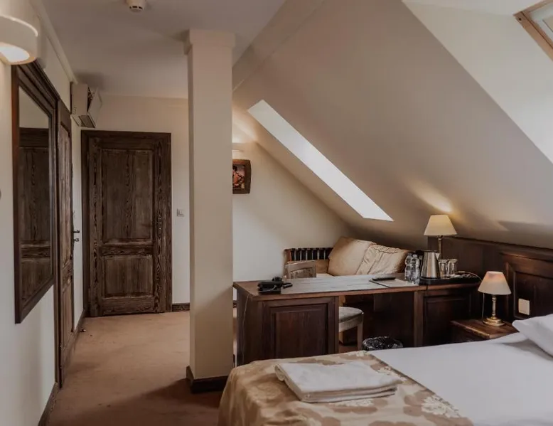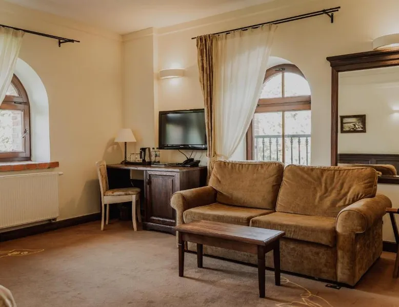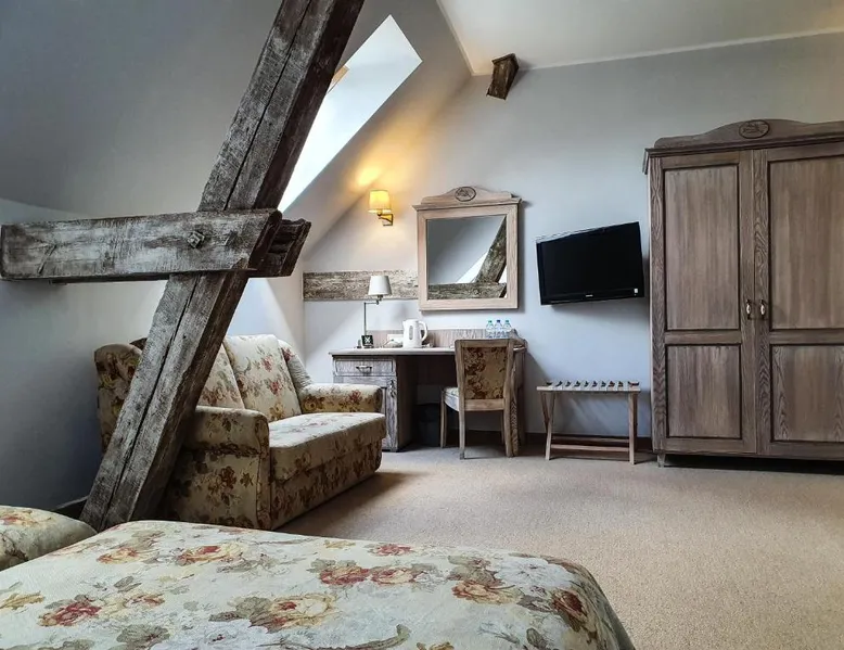 Located in the middle of a large park, Olandia resort is a renovated manor house complex. It offers unique and comfort accommodations and spa treatments. All rooms in Olandia have an private bathroom with a shower. They are modernly designed and have all necessary amenities. Olandia’s restaurant specializes in local and traditional polish cuisine. Guests can choose from a wide selection of wine. Buffet breakfast is served every morning. There are also BBQ facilities available. Olandia resort features a garden with a recreation area. Spa offers a selection of body and facial treatments. Resort has a large garden and a terrace where guests can relax and enjoy an afternoon drink. The double room features air conditioning, a tea and coffee maker, as well as a private bathroom boasting a shower and a hairdryer. The unit has 2 beds.