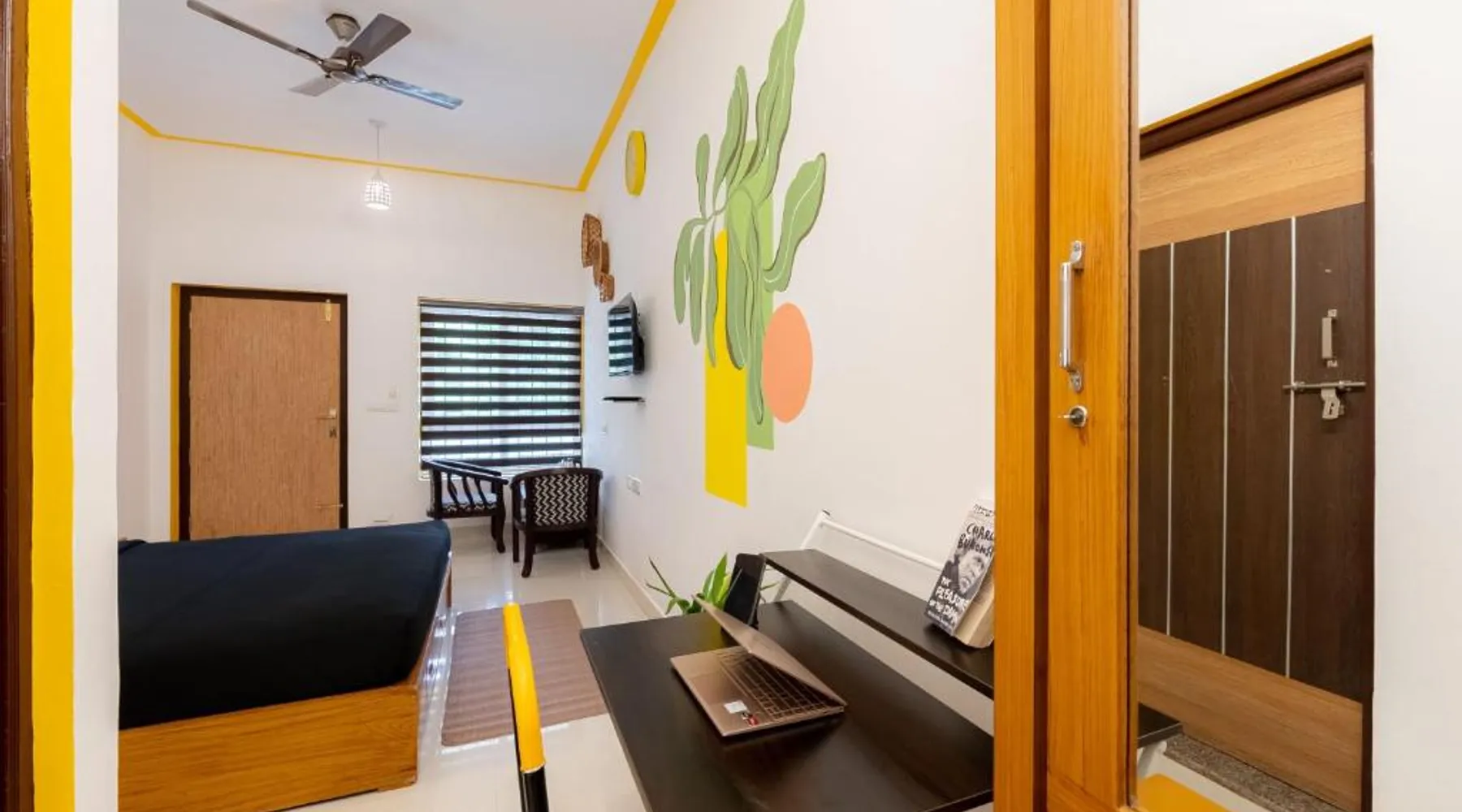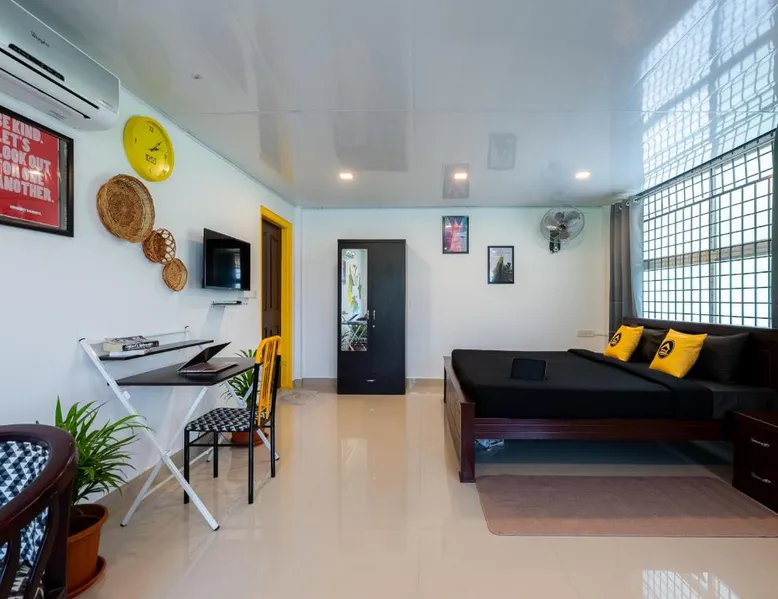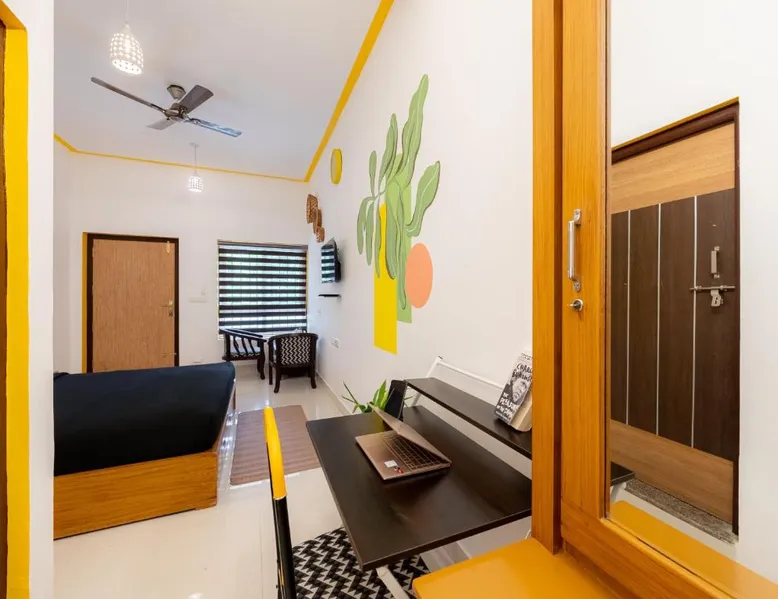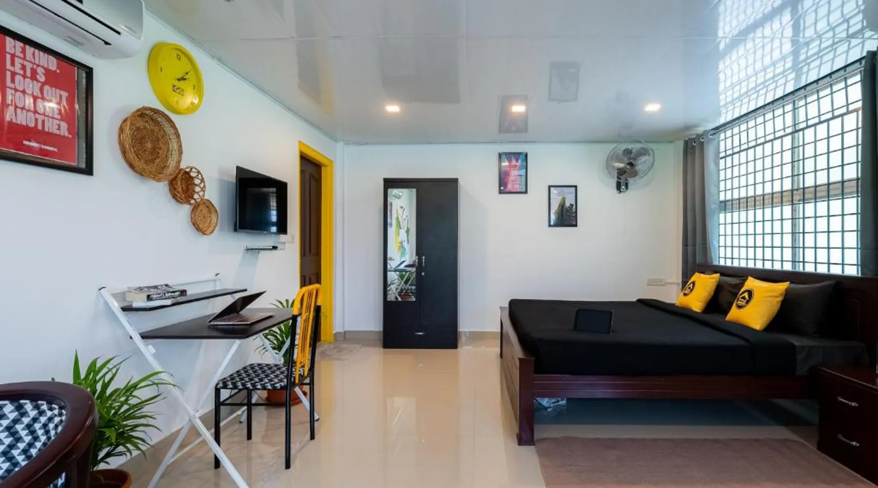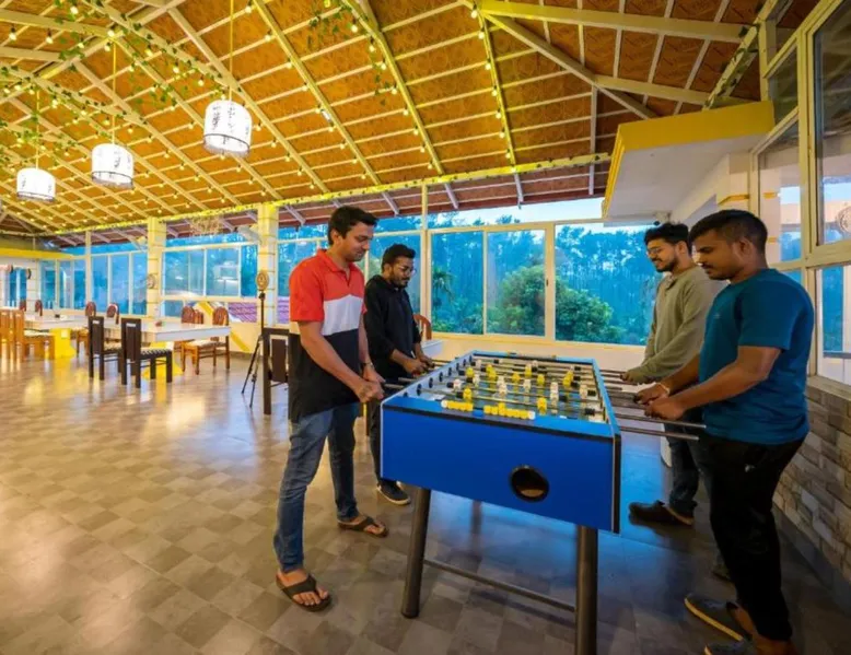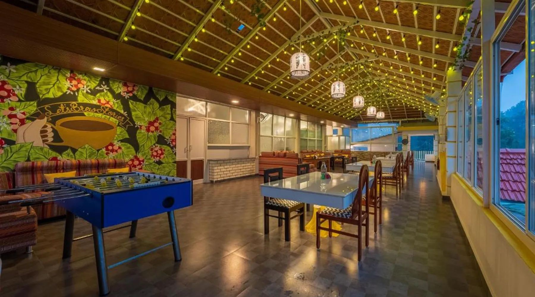 Comfortable Accommodations: The Hosteler Coorg in Coorg offers adults-only, pet-friendly hostel accommodations with private bathrooms, bidets, and showers. Each ground-floor unit includes a seating area, TV, electric kettle, and wardrobe. Modern Dining: A modern restaurant serves vegetarian lunch and dinner in a welcoming ambiance. Guests can enjoy meals in a relaxed setting, enhancing their overall stay experience. Convenient Facilities: The hostel features a paid shuttle service, lounge, concierge, full-day security, bicycle parking, and a tour desk. Free on-site private parking is available for guests. Nearby Attractions: Located 6.8 mi from Madikeri Fort and Rajah Seat, and 8.7 mi from Abbi Falls, the property provides easy access to local points of interest. Kannur International Airport is 62 mi away. Rooms are 57 square yards.