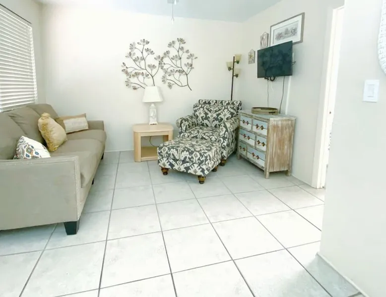 ■ What You Will Love ■ Gulf side 1 bedroom/1 bath located on North Redington Beach with a Pool! Redington Beach is a laid-back beach town with soft white sand beaches. You will be centrally located between St Pete & Clearwater Beach. St Pete is home to many wonderful museums, restaurants, a new $92 million Pier, famous murals, & Sunken Gardens. Clearwater Beach is home to Winter the dolphin at the Clearwater Marine Aquarium, boat rentals, fishing charters, pirate tours, helicopter tours & a wide variety of restaurants ■ What You Will Love ■ -Located On The Second Floor Overlooking The On-site Pool -80 Steps From Your Door To Your Feet In The Sand! -Free FAST WiFi -Smart TV With Cable Package -Community Washer & Dryer On-Site -Beach Chairs, & Beach Towels Provided -1 Free Parking Space -Newly Renovated Bathroom! ■ Galley Kitchen -Fully equipped with pots, pans, cooking utensils, Keurig coffee maker, blender, toaster, dishes, silverware, cups, mugs, & wine glasses. ■ Living Room -Smart TV with cable -Pullout queen-sized sofa -Chair ■ Bedroom -King-sized bed -TV with cable -Closet & dresser ■Bathroom -Brand New! Updated full bathroom with walk-in shower, hairdryer, towels, soap, shampoo, conditioner, & body wash. ■Amenities■ -Heated pool -Picnic tables and grill -Shuffleboard court -Corn hole -Equipment for the shuffleboard court & corn hole is located in the laundry room ■ Nearby Activities ■ -Dunkin Donuts, Burrito Social, & a salon are located across the street -5-min walk to Surf Style beach shop -Restaurants & bars within walking distance -1 mile to Redington Beach Town Park -1.2 miles to the Seaside Seabird Sanctuary -2 miles to Smugglers Cove Mini-Golf -3.5 miles to Johns Pass Village & Boardwalk -3.5 miles to Publix our local grocery store -6 miles to the Florida Botanical Gardens -12 miles to Clearwater Marine Aquarium (home to Winter the dolphin!) PLEASE NOTE: Parking is limited. There is only one assigned parking space. There is no elevator at this property. This is a private owned condo and not managed by the downstairs office. There is a one time initial supply of towels, toiletries and linens for your comfort just like any other Airbnb. Cancellation: Guest receives 50.00% if cancellation occurs at least 7 days before arrival; No refunds within 7 days of arrival.