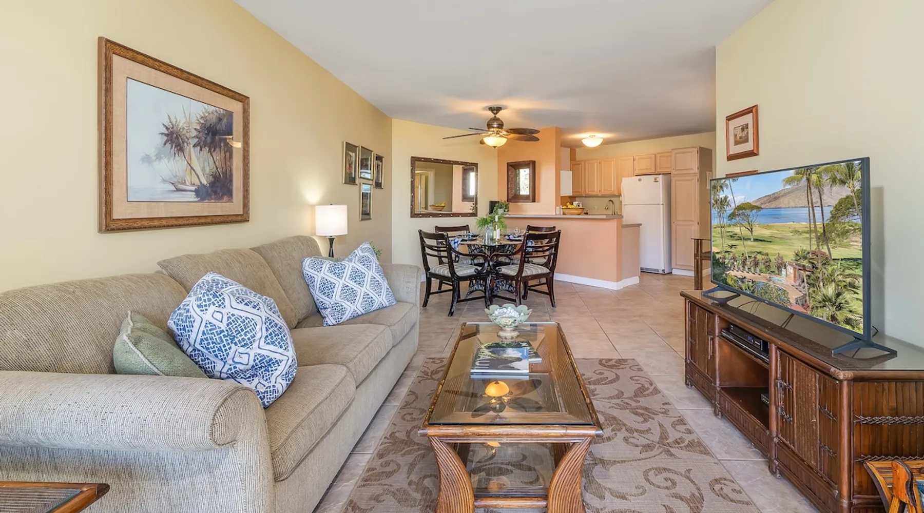 Kauhale Makai 424 OceanFront South Maui Condo with Beautiful Ocean Views Just a Few Steps to the Beach Experience Maui from this incredible North Kihei location! Our delightful 4th floor condo is the perfect home base for your time spent adventuring around the island. Come home to Kauhale Makai 424 after a day on the beach, or a drive to Hana to relax and take advantage of the fully equipped kitchen for a home cooked meal. Enjoy wonderful evenings listening to the ocean from the private lanai, watching sunsets with a cocktail or glass of wine, and get up the next morning ready for another amazing Maui day! Condo Highlights: -1 Bedroom, 1 Bathroom condo, Sleeps 4 guests -Central AC throughout -Furnished lanai with ocean views and access from both living room and bedroom -King size bed in bedroom -Sleeper-sofa in living room -Smart TVs in the living room and bedroom -Plentiful closet space -Fully equipped kitchen -Dining area with seating for 4 -Bathroom with walk-in shower -On-site parking included Kauhale Makai is Hawaiian for “Village by the Sea'', and that is exactly what it is. This beachfront resort is conveniently located in Kihei and offers all the amenities you could dream of during your Hawaiian vacation. Resort Fee: There’s a one-time resort fee of $30 charged at time of booking. Resort Highlights: •Direct Ocean Access •Heated Pools •Hot Tub •Sauna •Putting Green •Volleyball Courts •Public Tennis Courts Next Door •BBQ Grills •On-site coin operated laundry rooms •Many nearby options for restaurants, shops, transportation, and entertainment! Minimum age of primary renter: 25 All of our guests have complimentary access to our Maui specialist and support team during their stay. We provide the following in every unit: -High Speed Internet -Linens & Towels -Iron & Board -Hair Dryer -Beach Towels -Beach Chairs -Hard Sided Cooler -Starter Kit: Starter supply of Shampoo, Conditioner, Body Wash, Lotion, Hand Soap, Dish Soap, Laundry Detergent, Dishwasher Tabs, Toilet Paper, Paper Towels, Trash Bags Arrival PRE-CHECKS: To ensure that our homes meet our standards, just prior to each check-in, our Auditors do a final inspection and a comprehensive video recording to verify the property condition will meet our guest 5 star expectations. If by chance the cleaners missed a small detail, please contact our 24x7 support line so we have an opportunity to resolve. Our continued commitment to SAFETY includes: -Monthly and annual safety audits and reviews to ensure the upkeep of all our safety standards -Our Service Managers are "Certified Short-Term Rental Safety Inspectors" through Dwell Safe -We are the only company in Hawaii and one of a few in the USA that has certified its inspectors **Safety and cleanliness procedures implemented may be adjusted in consideration of local practices, government requirements and guidance, and the situation where the condo is located. BEACHES & CRITTERS: The beach size in Hawaii varies month to month due to heavy surf, strong currents and tides. Due to Maui’s rural atmosphere you may experience the occasional rooster, as well as harmless geckos. Geckos are friendly, eat insects, and are considered good luck in Hawaii. Please don’t kill them. IMPORTANT: Although the HOA schedules regular professional pest control services, pests such as ants, roaches and rodents simply cannot be completely controlled in the tropics. Hawaii is located in a tropical climate, and insects, rodents and lizards flourish in this environment. If our guest spot more than the normal expected pests, we always make our best efforts to contact and work with the HOA to minimize your interactions with these pests. Any contact with such pests within or outside the unit does not constitute a breach of this Agreement or give Guest any right to any refund or rental adjustment. **We make no guarantee that properties adjacent to the Unit will be free from disturbances, including but not limited to noise or inconvenience from construction, traffic or other guests or neighbors. Any such disturbance shall not constitute a breach of this Agreement or give Guest any right to any refund or rental adjustment.