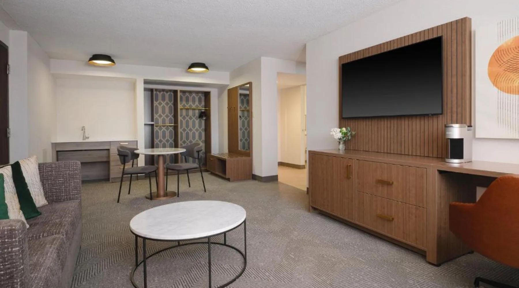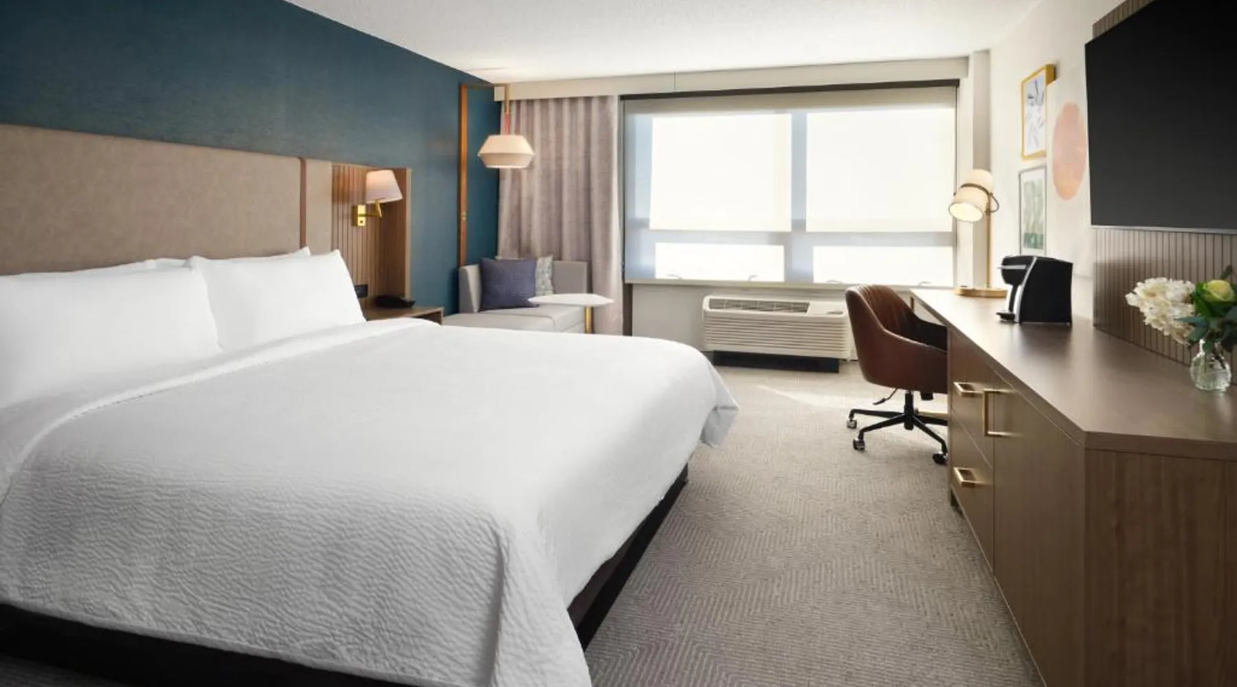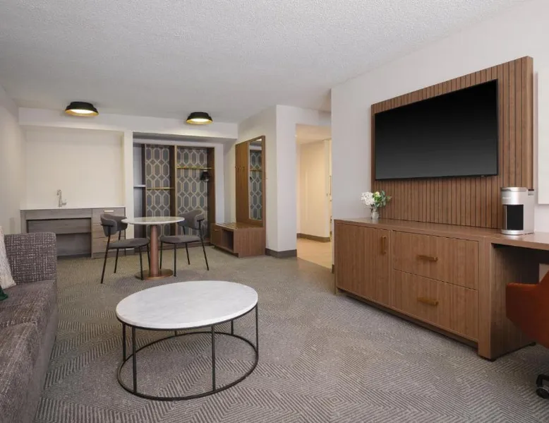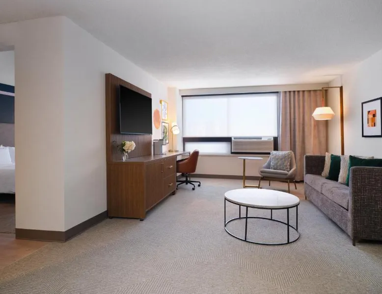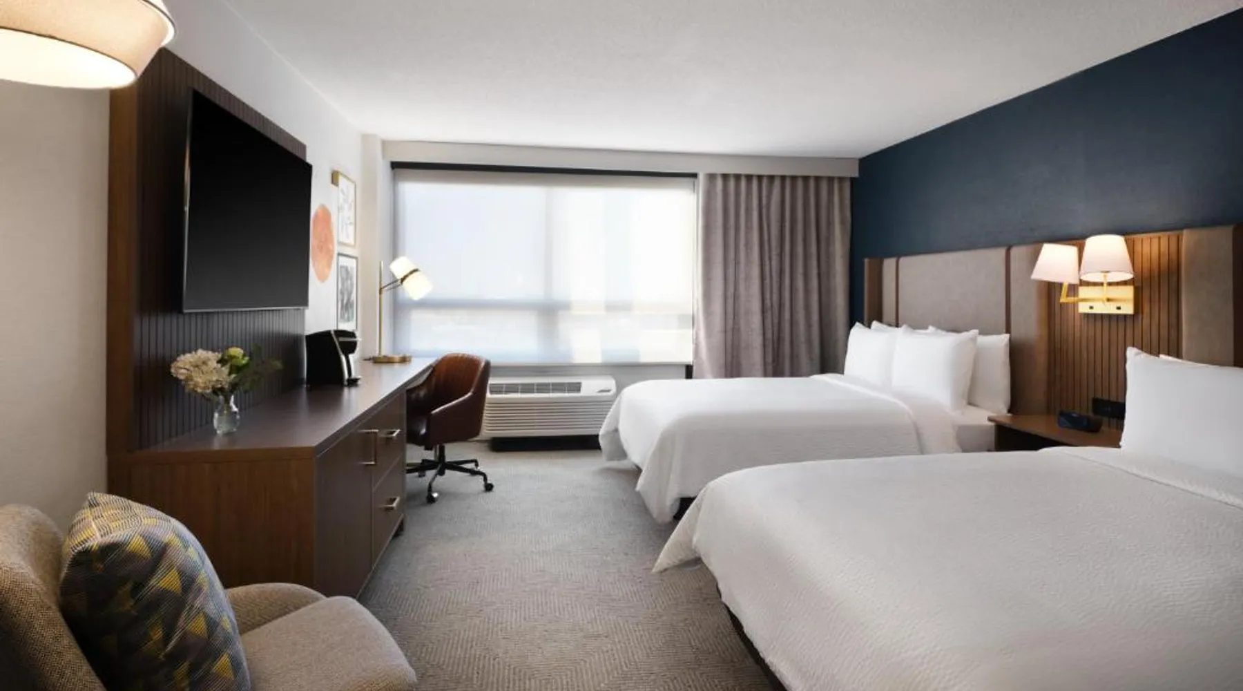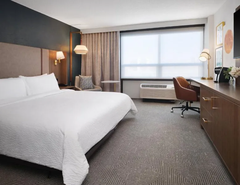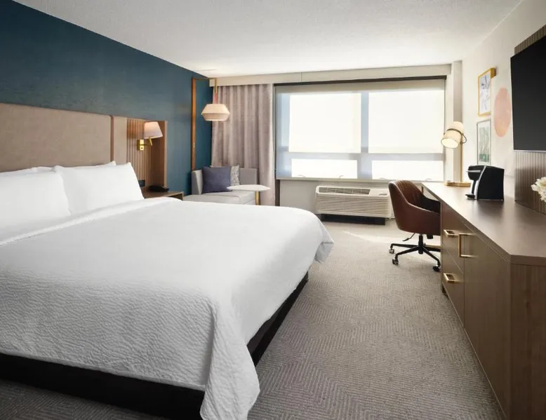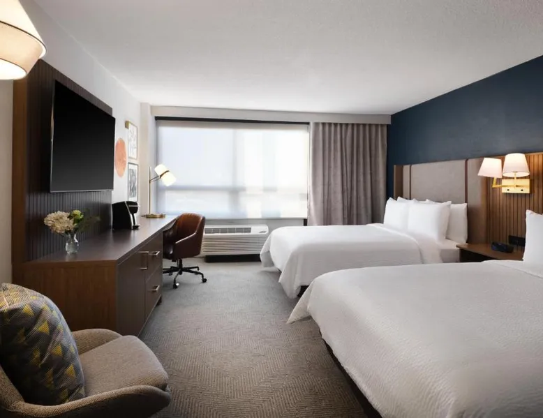 Comfortable Accommodations: Holiday Inn Chicago O'Hare - Rosemont by IHG in Rosemont offers air-conditioned rooms with private bathrooms, free WiFi, and modern amenities. Each room includes a work desk, TV, and soundproofing for a pleasant stay. Dining and Leisure: The hotel features a family-friendly restaurant serving American cuisine in a modern ambiance. Guests can enjoy brunch, lunch, and dinner, complemented by a bar offering a variety of beverages. Additional facilities include an indoor swimming pool, fitness center, and outdoor seating area. Convenient Location: Located a few steps from Chicago O'Hare International Airport, the hotel provides a free airport shuttle service. Nearby attractions include Loyola University Chicago (12 mi), Wrigley Field (14 mi), and Lincoln Park Zoo (17 mi). Guests appreciate the convenient location and connectivity to the airport. Offering free toiletries, this double room includes a private bathroom with a bath, a shower and a hairdryer. This double room is air-conditioned and features a flat-screen TV with streaming services, soundproof walls, a tea and coffee maker and a wardrobe. The unit offers 2 beds.