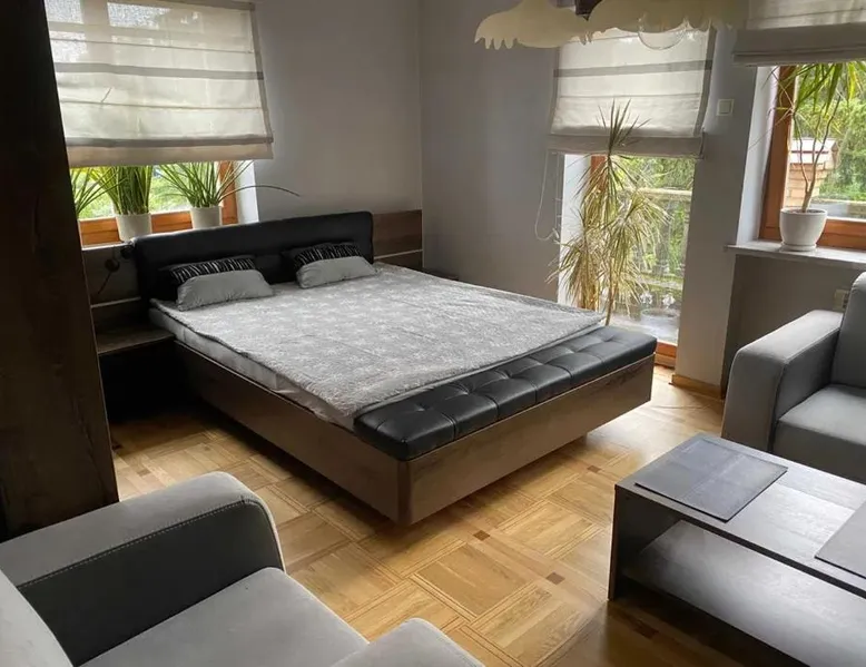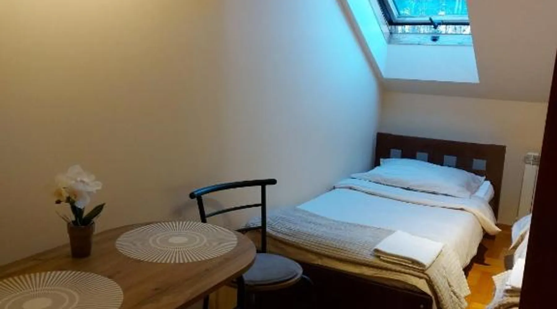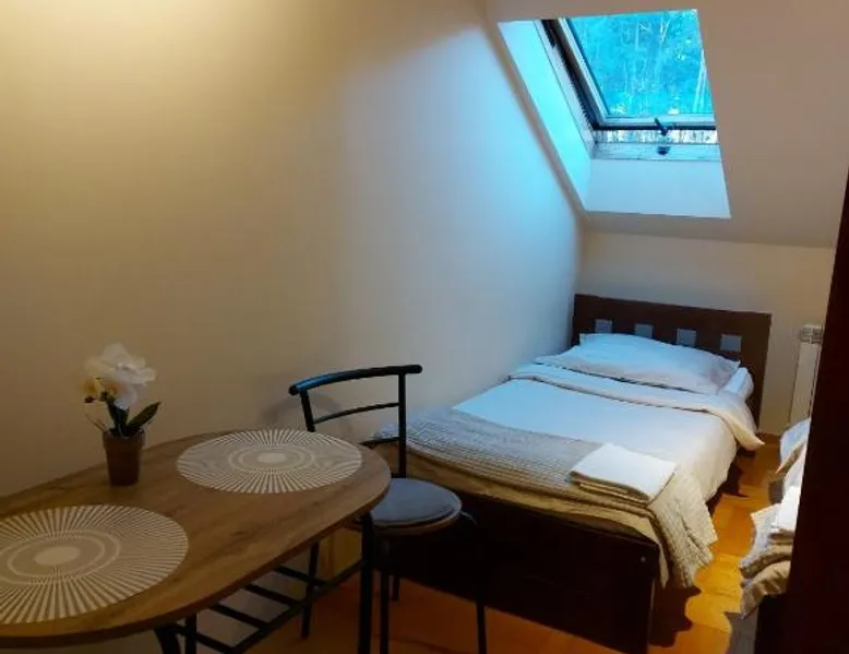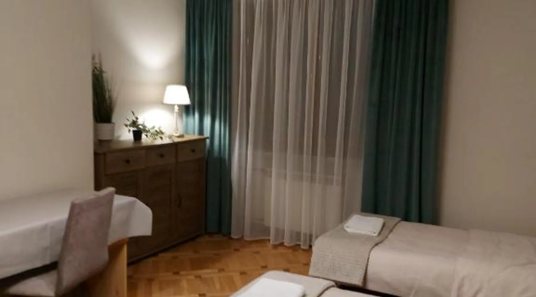 Comfortable Accommodations: Hostel LUNA in Mińsk Mazowiecki offers family rooms with garden views. Each room includes a kitchenette, bath, and work desk. Guests enjoy amenities such as a dining area, outdoor furniture, and free on-site private parking. Convenient Facilities: The hostel features a garden, shared kitchen, and 24-hour front desk. Additional facilities include a shared bathroom, microwave, and electric kettle. Free WiFi is available throughout the property. Prime Location: Located 30 mi from Warsaw Frederic Chopin Airport, Hostel LUNA is near attractions like Wilanow Palace (26 mi) and Lazienki Palace (30 mi). Guests appreciate the room comfort and the friendly staff. Meals can be prepared in the well-fitted kitchenette, which is equipped with a stovetop, a refrigerator, kitchenware and a microwave. This double room features a desk, outdoor furniture, garden views and a shared bathroom. The unit offers 2 beds.