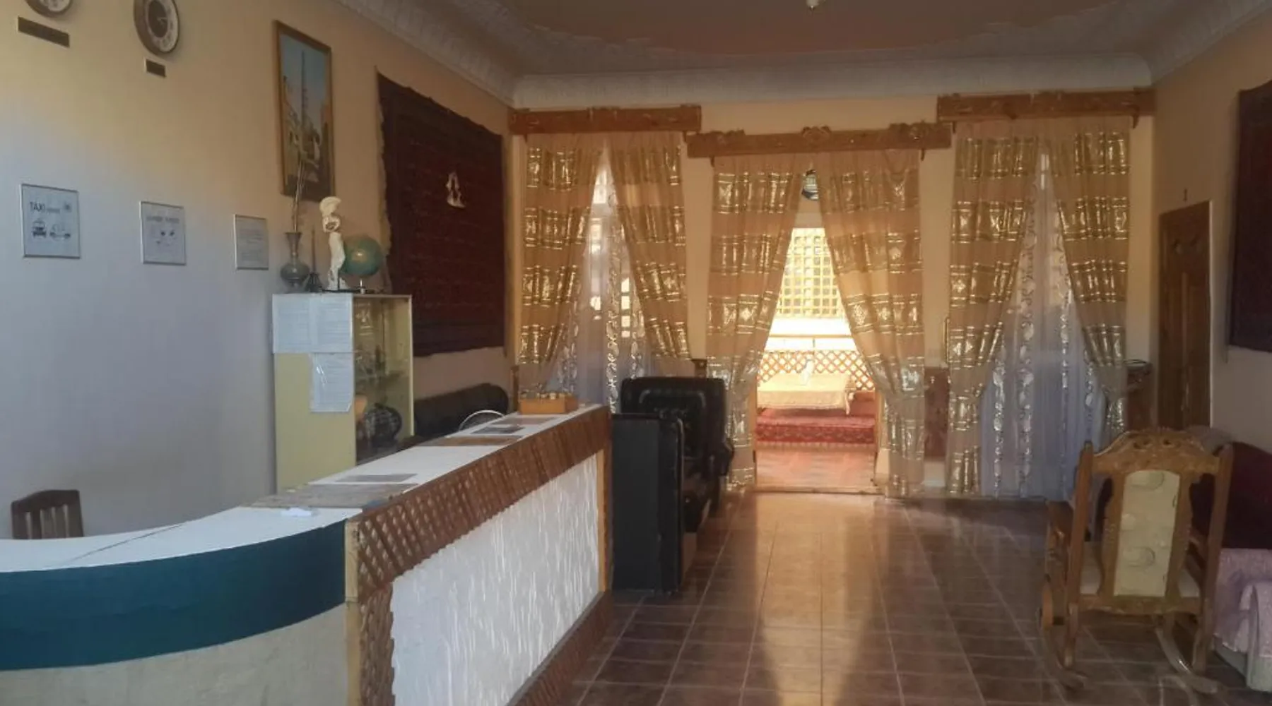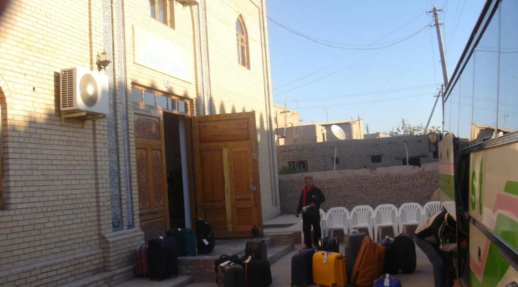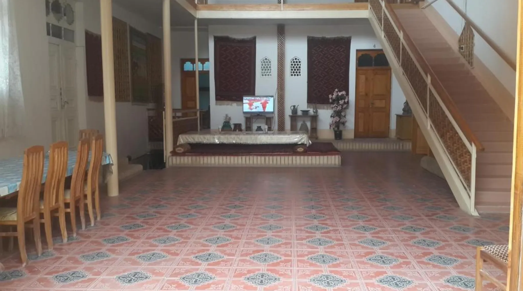 Comfortable Accommodations: Islambek Hotel & Travel in Khiva offers family rooms with air-conditioning, private bathrooms, and garden or city views. Each room includes a kitchenette, work desk, and free WiFi. Exceptional Facilities: Guests can relax on the sun terrace or enjoy the outdoor dining area. The hotel provides free WiFi, a lounge, and a games room. Additional amenities include a shared kitchen, indoor and outdoor play areas, and a business area. Convenient Services: Private check-in and check-out, a 24-hour front desk, and concierge service ensure a comfortable stay. Free on-site parking, a tour desk, and luggage storage are available. Local Attractions: Located 22 mi from Urgench International Airport, the hotel is near attractions such as the Khiva Fortress and the Islam Khoja Minaret. Walking and hiking tours are available. Guests will find a stovetop, a refrigerator, kitchenware and a microwave in the well-fitted kitchen. The twin room also offers a barbecue. This air-conditioned twin room includes a flat-screen TV with satellite channels, a private bathroom as well as a terrace with garden views. The unit offers 2 beds.