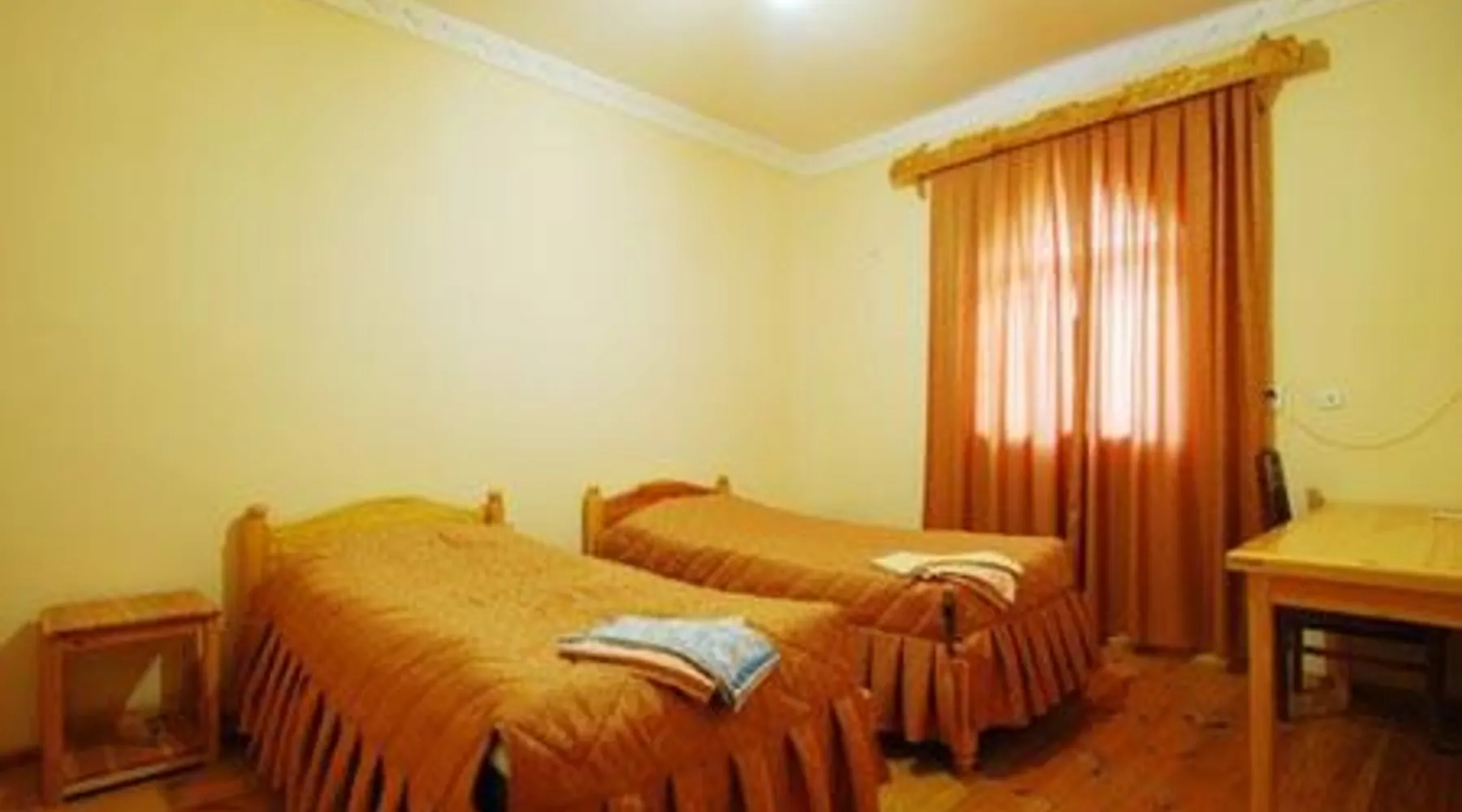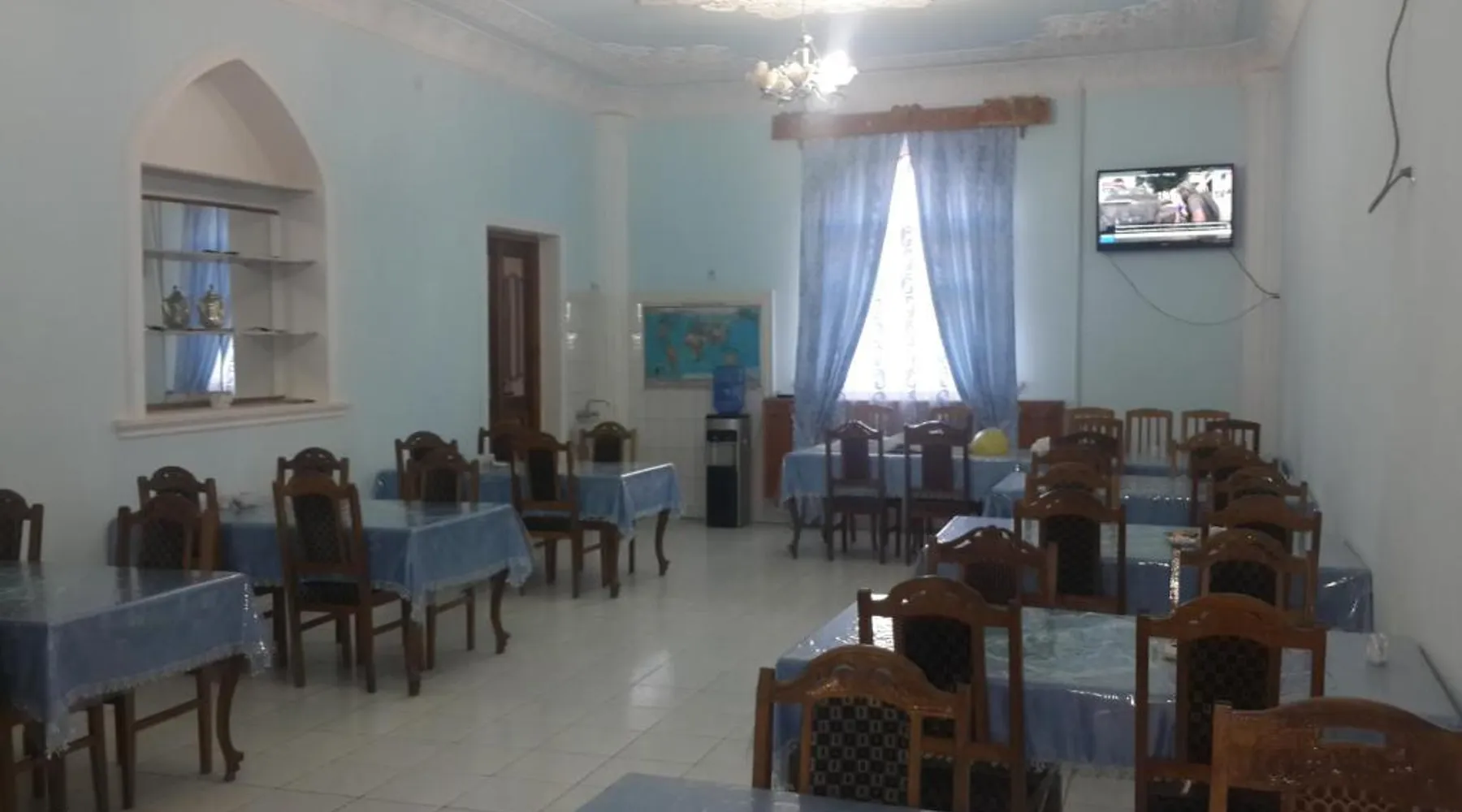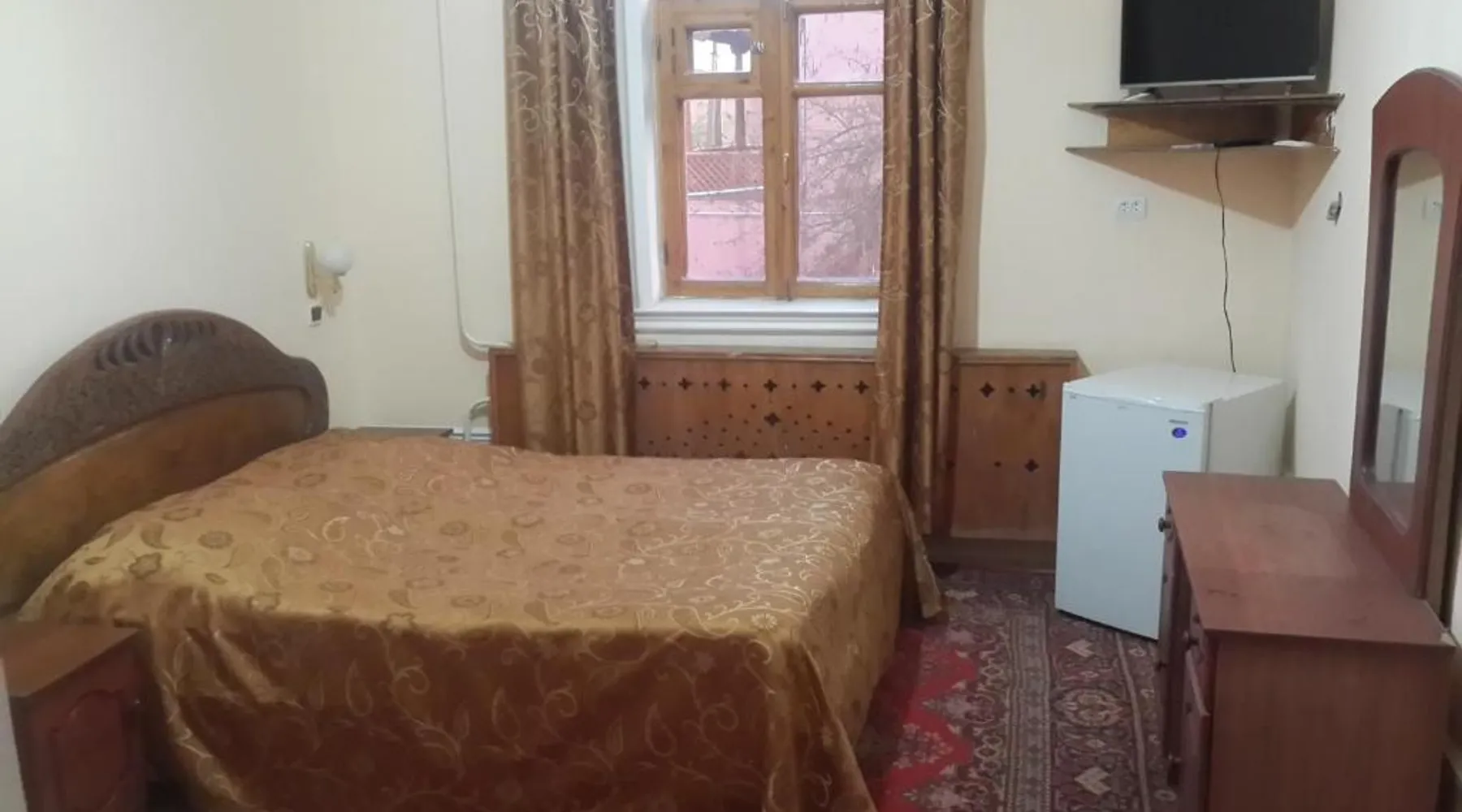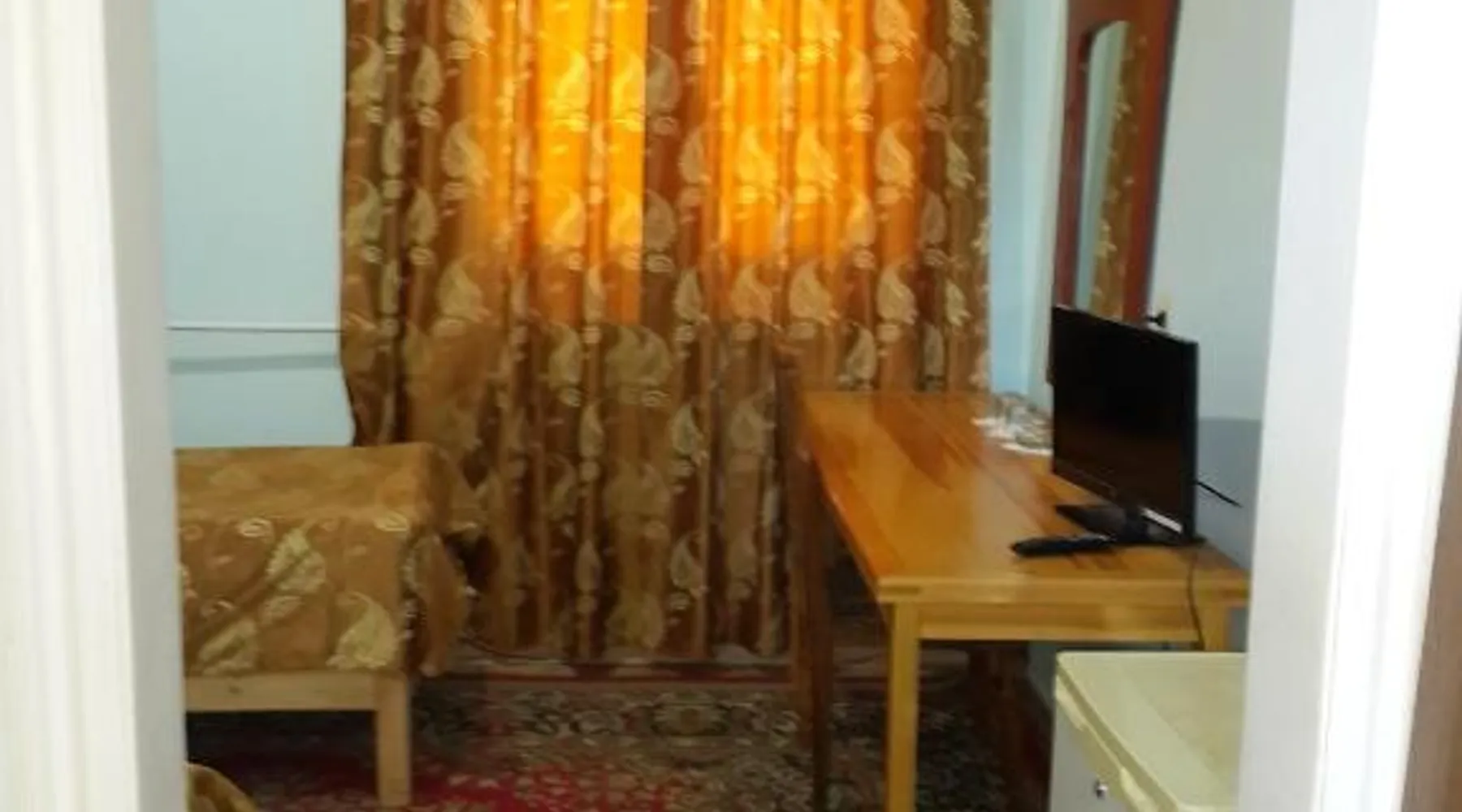 Comfortable Accommodations: Islambek Hotel & Travel in Khiva offers family rooms with air-conditioning, private bathrooms, and garden or city views. Each room includes a kitchenette, work desk, and free WiFi. Exceptional Facilities: Guests can relax on the sun terrace or enjoy the outdoor dining area. The hotel provides free WiFi, a lounge, and a games room. Additional amenities include a shared kitchen, indoor and outdoor play areas, and a business area. Convenient Services: Private check-in and check-out, a 24-hour front desk, and concierge service ensure a comfortable stay. Free on-site parking, a tour desk, and luggage storage are available. Local Attractions: Located 22 mi from Urgench International Airport, the hotel is near attractions such as the Khiva Fortress and the Islam Khoja Minaret. Walking and hiking tours are available. Guests will find a stovetop, a refrigerator, kitchenware and a microwave in the well-fitted kitchen. The twin room also offers a barbecue. This air-conditioned twin room includes a flat-screen TV with satellite channels, a private bathroom as well as a terrace with garden views. The unit offers 2 beds.