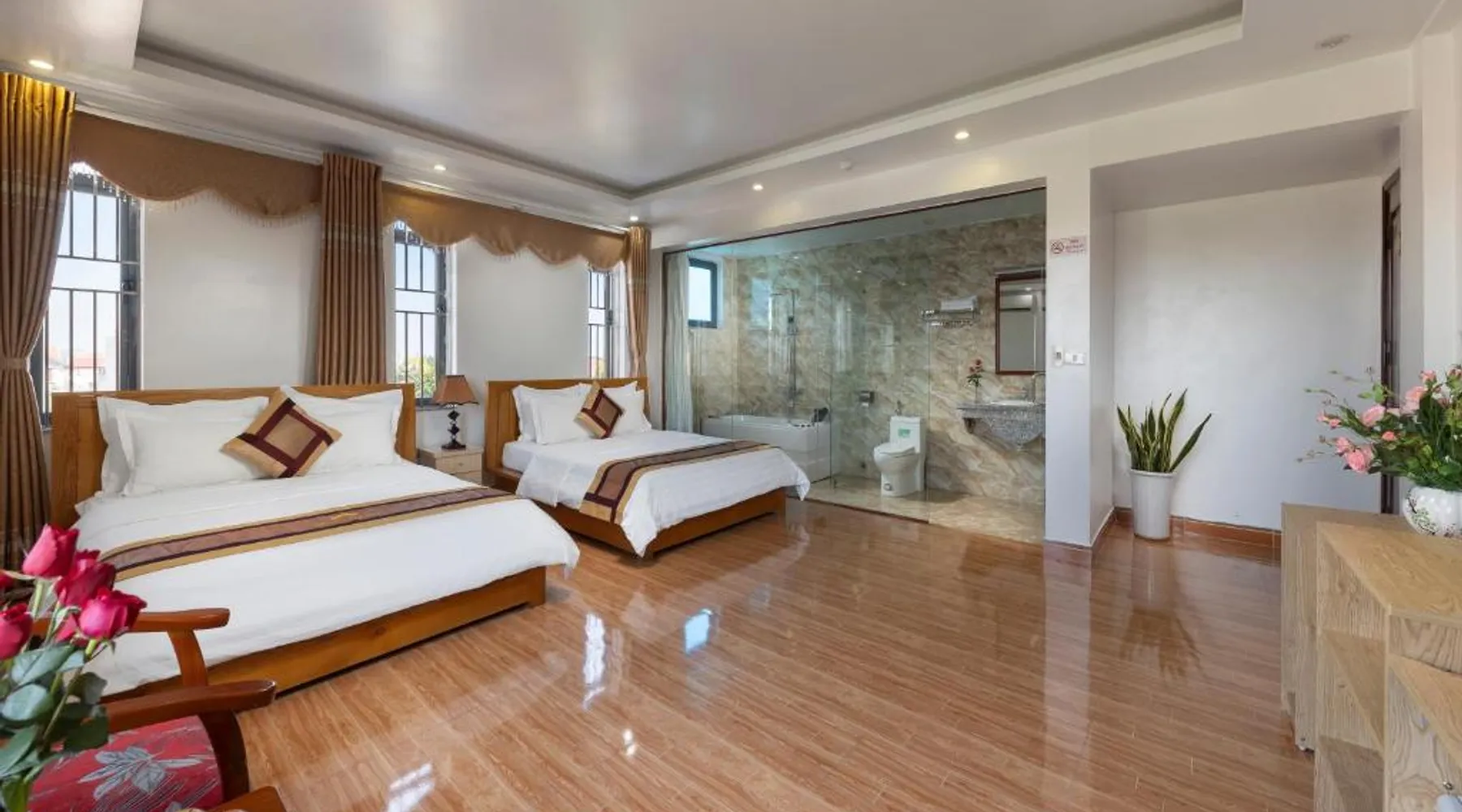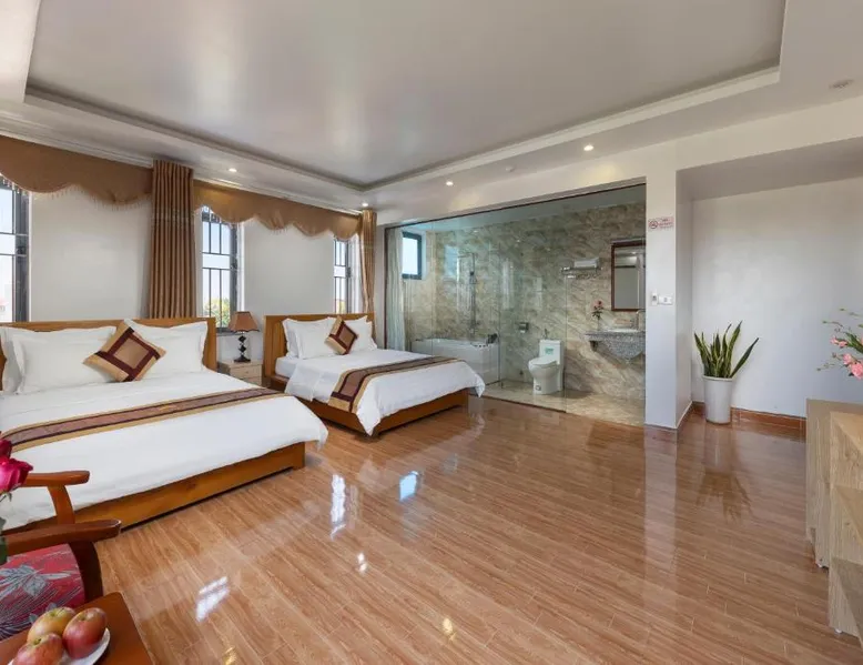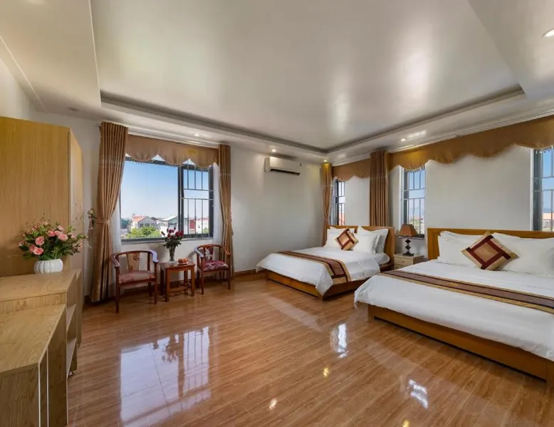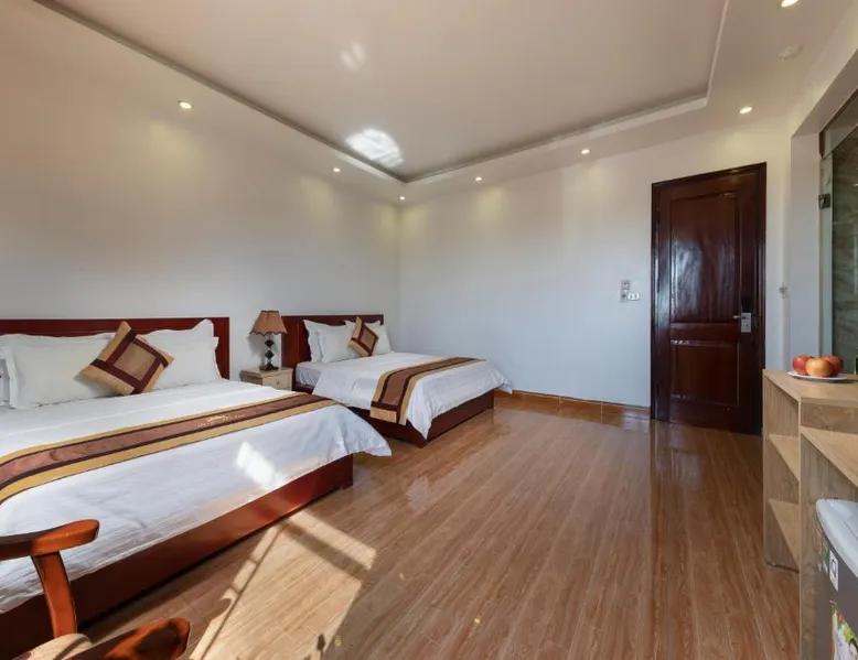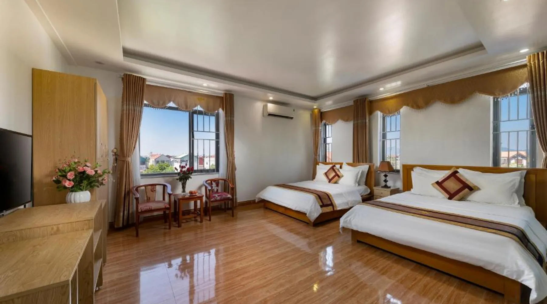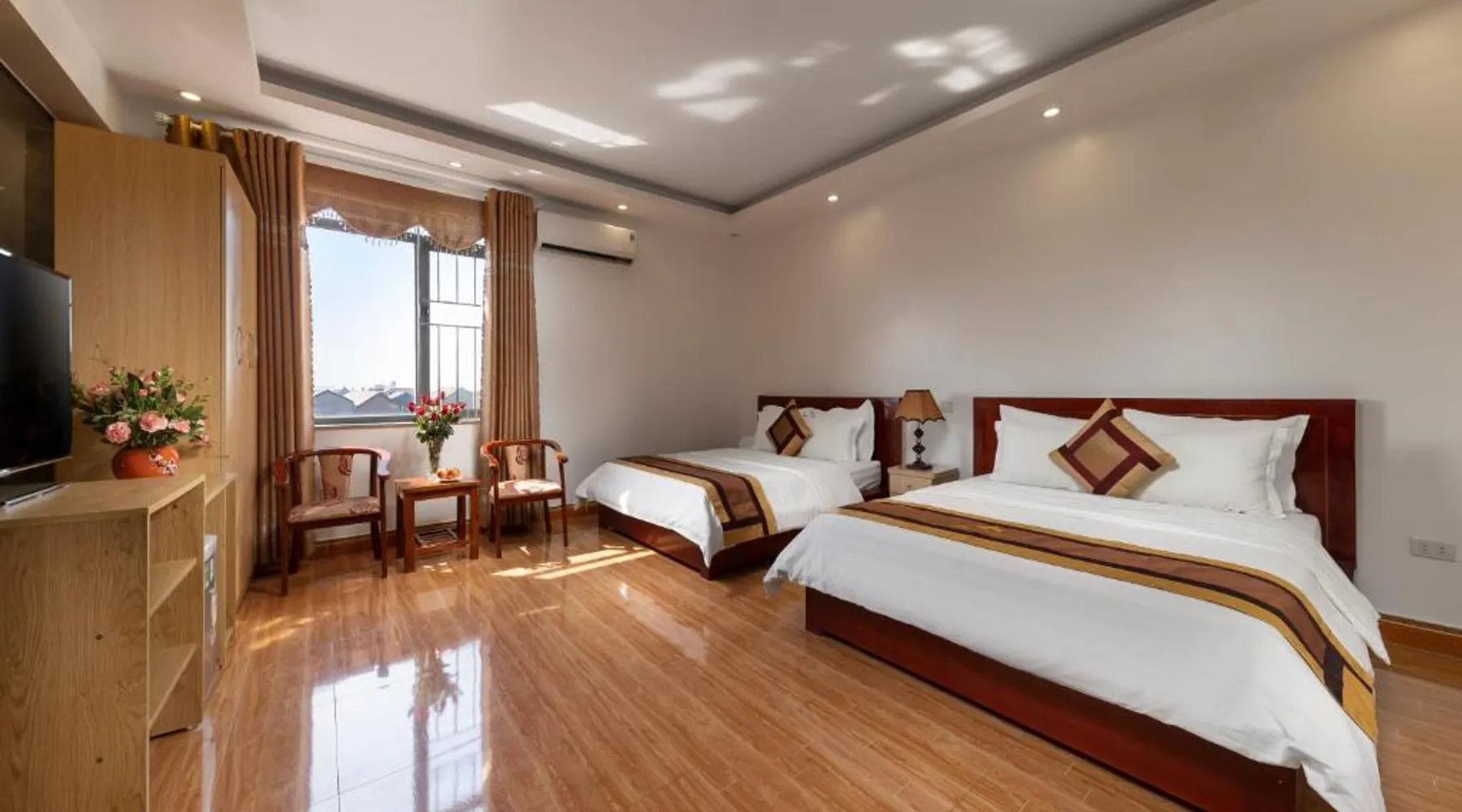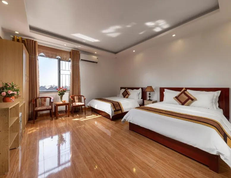 Comfortable Accommodations: Airport Transit Hotel in Hà Nội offers spacious rooms with air-conditioning, private bathrooms, and garden views. Each room includes a dining table, work desk, and soundproofing for a relaxing stay. Exceptional Facilities: Guests enjoy a sun terrace, lush garden, and free WiFi throughout the property. Additional amenities include a restaurant, bar, hot tub, and outdoor seating area. Free on-site private parking is available. Convenient Location: Located 5 mi from Noi Bai International Airport, the hotel is near attractions such as Vietnam Museum of Ethnology (12 mi) and West Lake (12 mi). Highly rated for its connectivity and shuttle service, the hotel ensures a pleasant experience. The air-conditioned family room offers a flat-screen TV with cable channels, soundproof walls, a mini-bar, a wardrobe as well as garden views. The unit offers 2 beds.