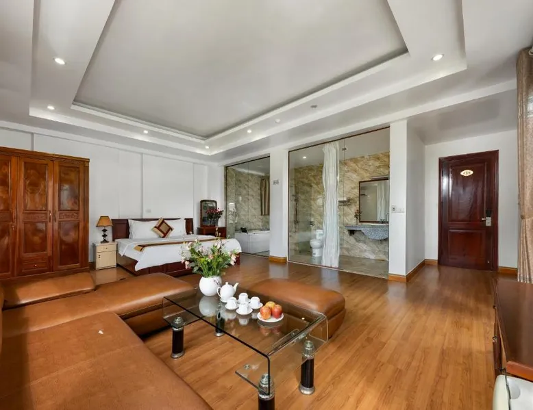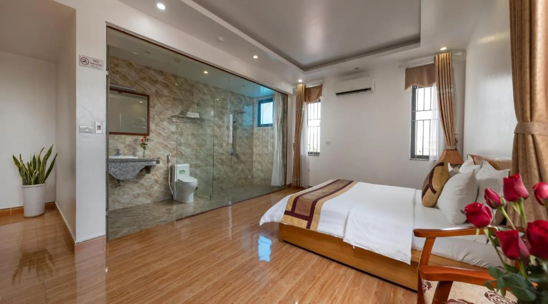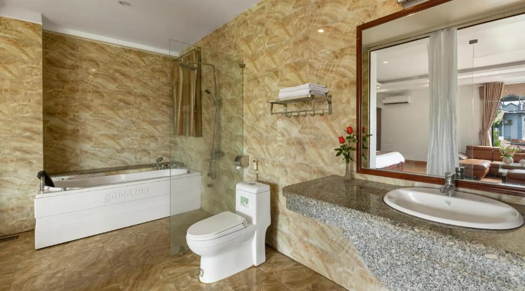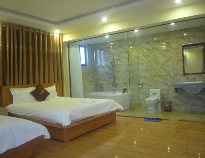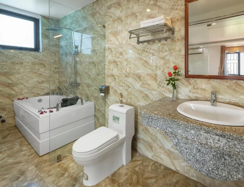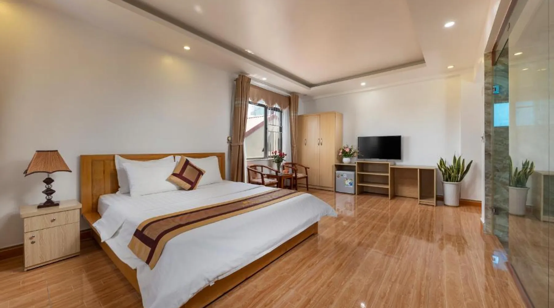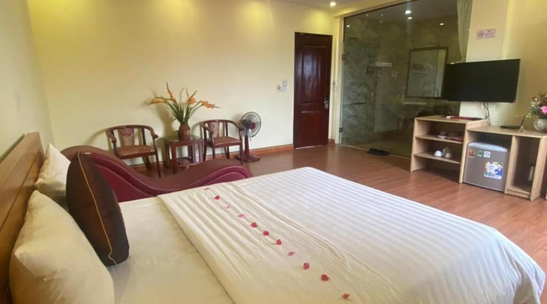 Comfortable Accommodations: Airport Transit Hotel in Hà Nội offers spacious rooms with air-conditioning, private bathrooms, and garden views. Each room includes a dining table, work desk, and soundproofing for a relaxing stay. Exceptional Facilities: Guests enjoy a sun terrace, lush garden, and free WiFi throughout the property. Additional amenities include a restaurant, bar, hot tub, and outdoor seating area. Free on-site private parking is available. Convenient Location: Located 5 mi from Noi Bai International Airport, the hotel is near attractions such as Vietnam Museum of Ethnology (12 mi) and West Lake (12 mi). Highly rated for its connectivity and shuttle service, the hotel ensures a pleasant experience. The air-conditioned family room offers a flat-screen TV with cable channels, soundproof walls, a mini-bar, a wardrobe as well as garden views. The unit offers 2 beds.