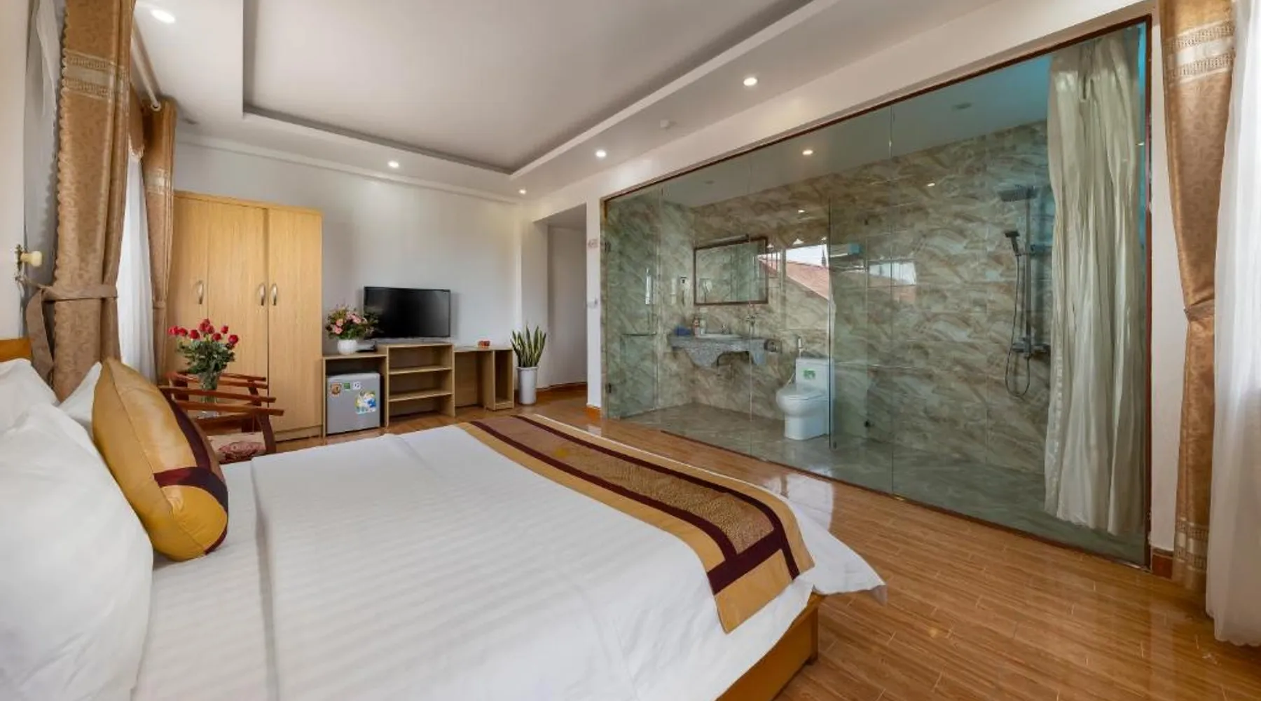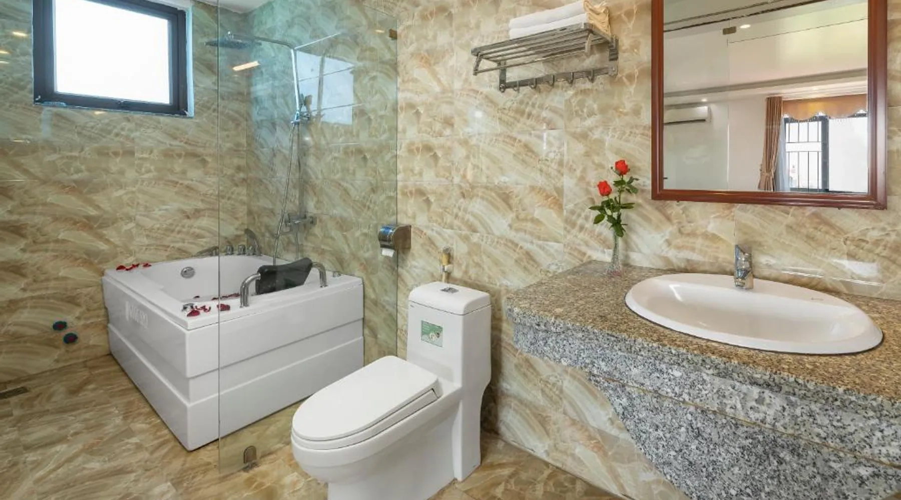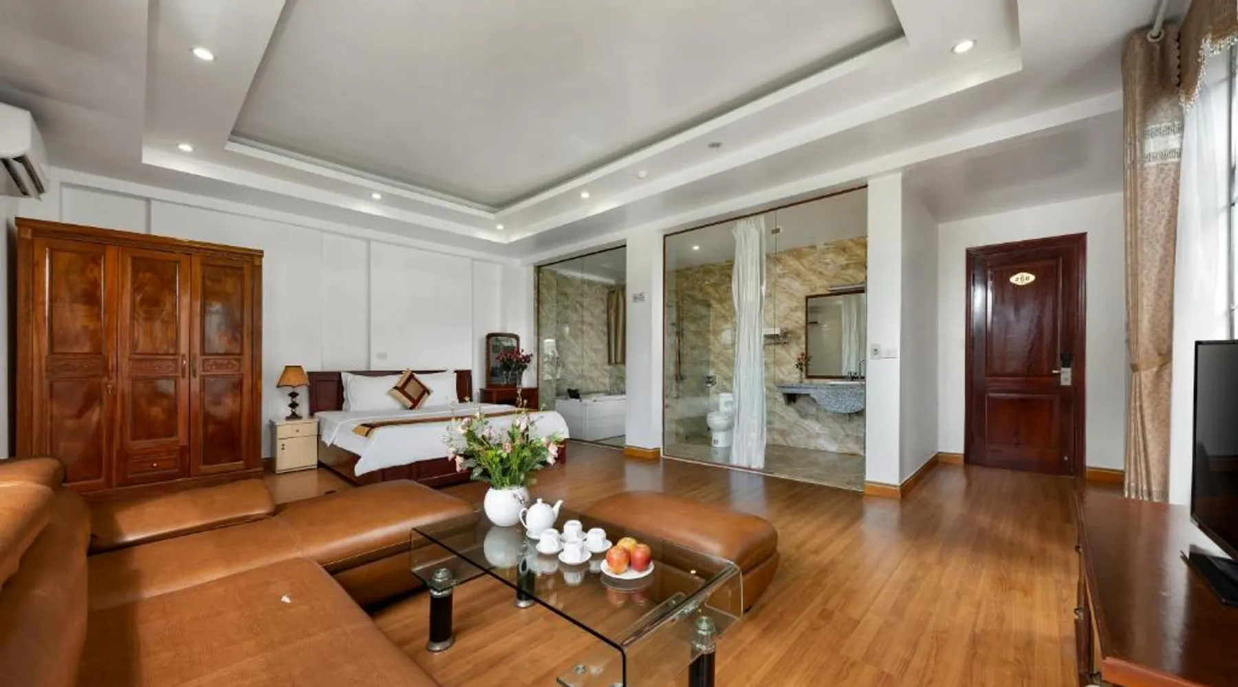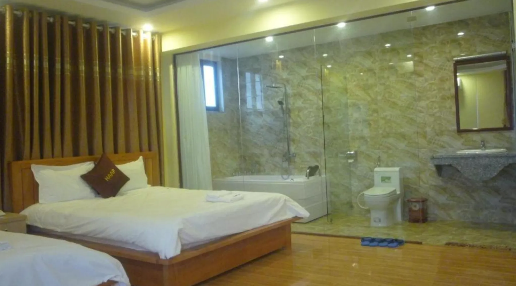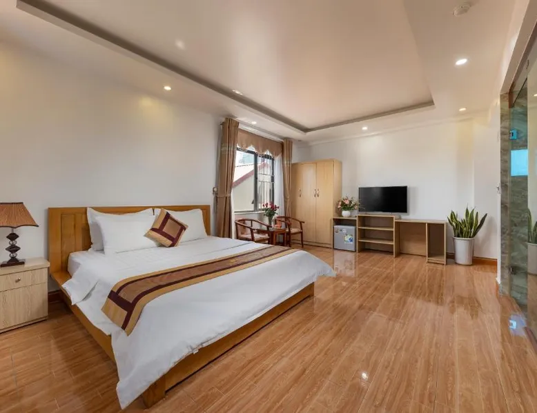 Comfortable Accommodations: Airport Transit Hotel in Hà Nội offers spacious rooms with air-conditioning, private bathrooms, and garden views. Each room includes a dining table, work desk, and soundproofing for a relaxing stay. Exceptional Facilities: Guests enjoy a sun terrace, lush garden, and free WiFi throughout the property. Additional amenities include a restaurant, bar, hot tub, and outdoor seating area. Free on-site private parking is available. Convenient Location: Located 5 mi from Noi Bai International Airport, the hotel is near attractions such as Vietnam Museum of Ethnology (12 mi) and West Lake (12 mi). Highly rated for its connectivity and shuttle service, the hotel ensures a pleasant experience. The air-conditioned family room offers a flat-screen TV with cable channels, soundproof walls, a mini-bar, a wardrobe as well as garden views. The unit offers 2 beds.