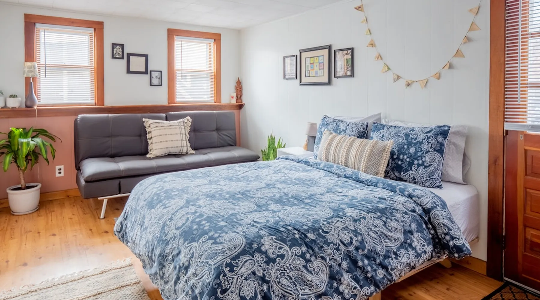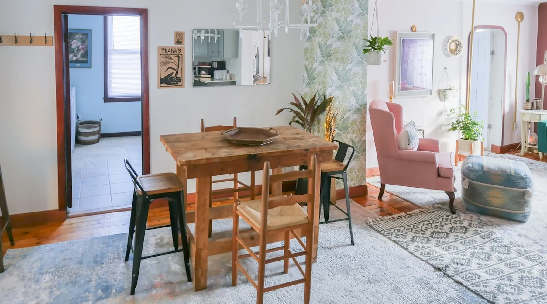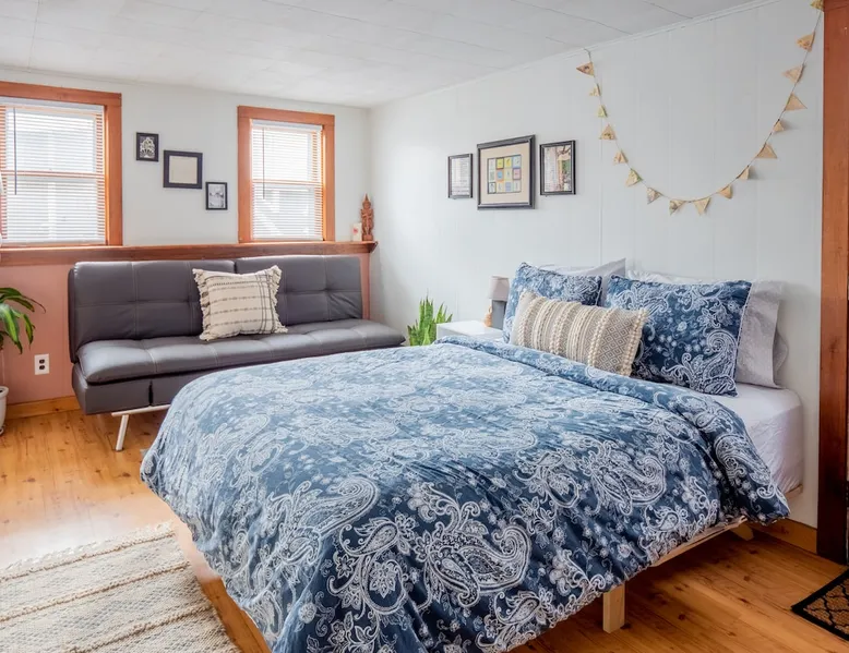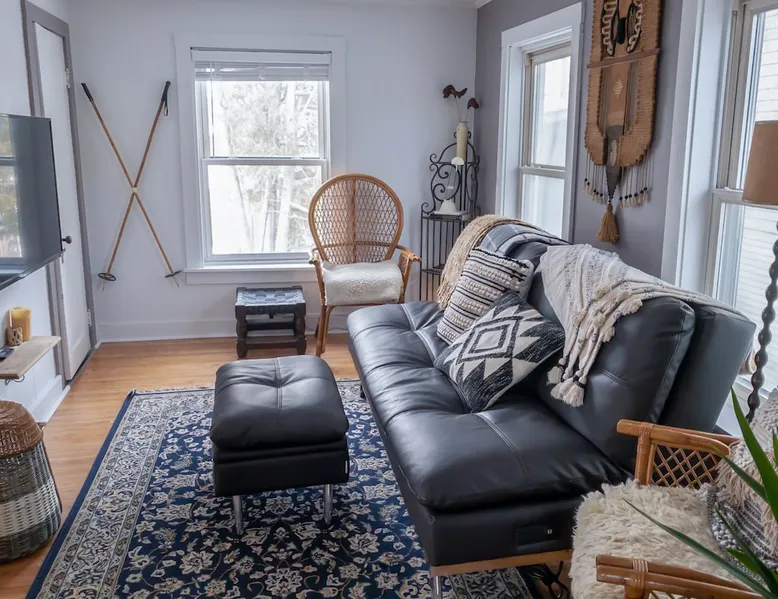The Traveling Bohemian sits in the heart of Winooski, a short stroll from the Circle and its dining, shopping, and coffee options. The property comprises bright, stylish, plant-filled apartments with outdoor spaces that invite relaxation and conversation. Inside, comfortable living areas and warm, well-equipped kitchens create a grounded, homey feel that suits groups exploring the area. It captures a down-to-earth, neighborhood-focused vibe—convenient, unpretentious, and linked to the energy of Winooski and nearby Burlington.