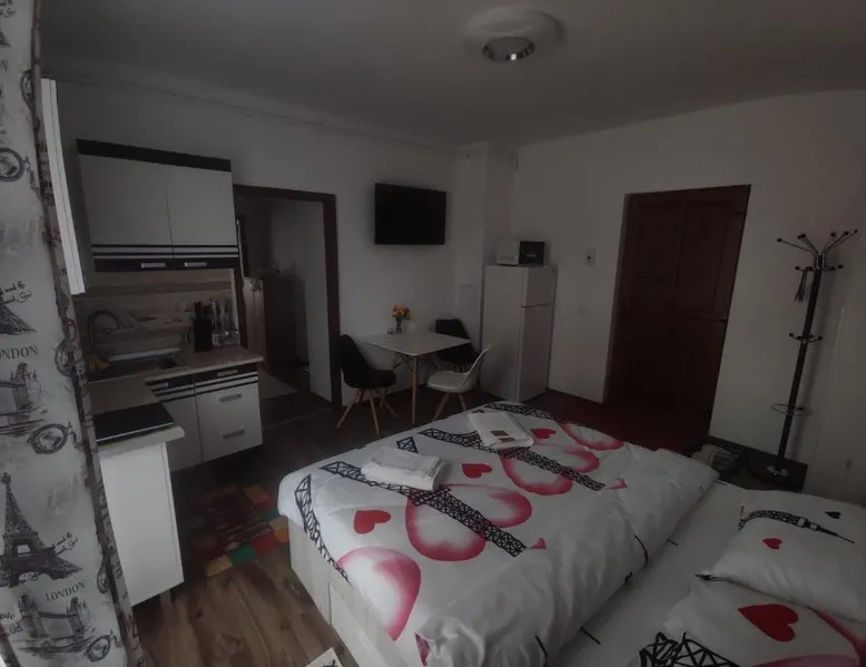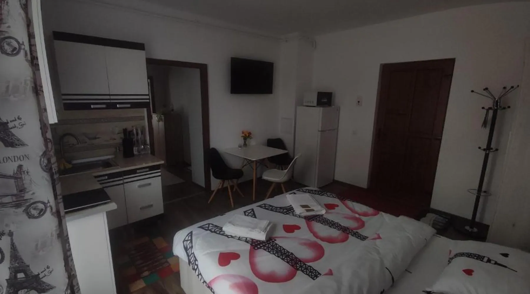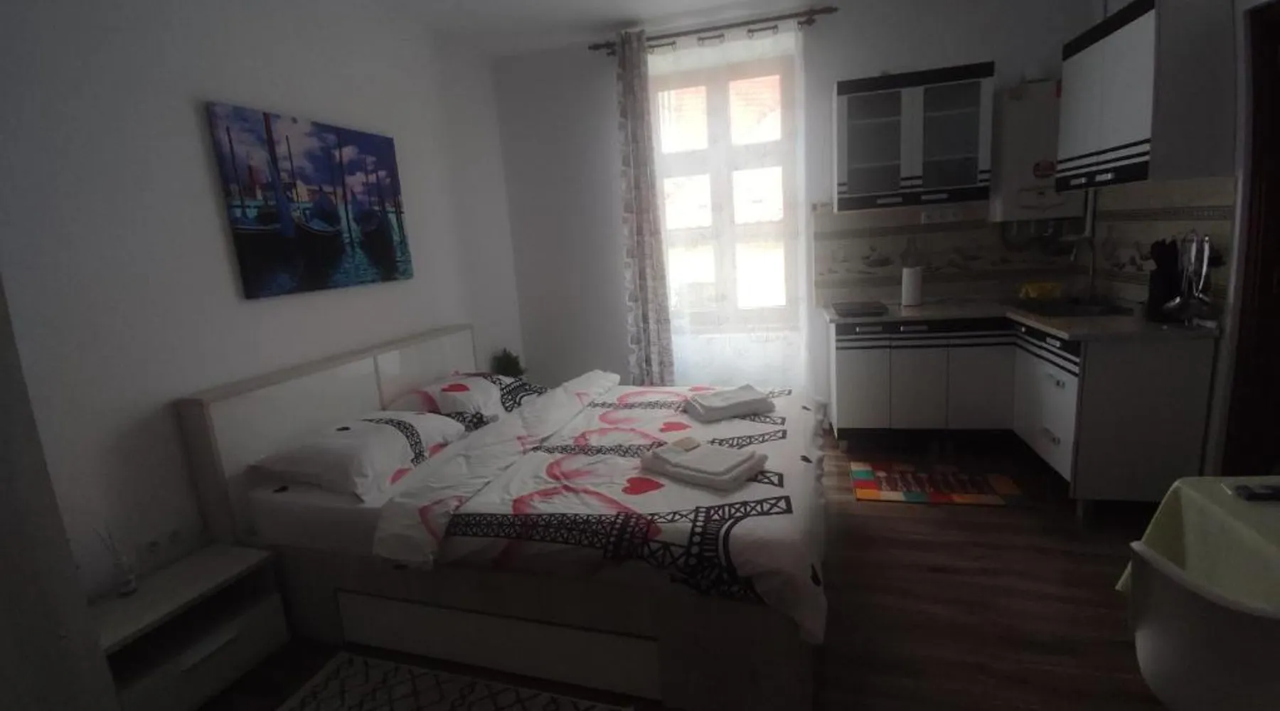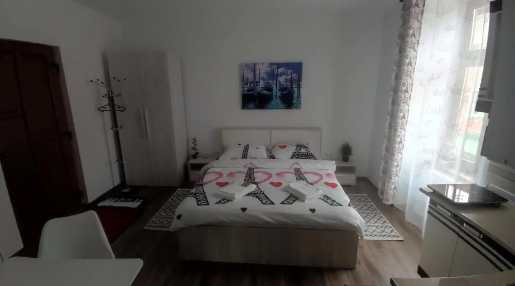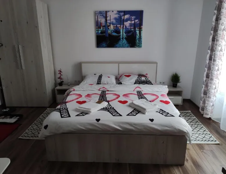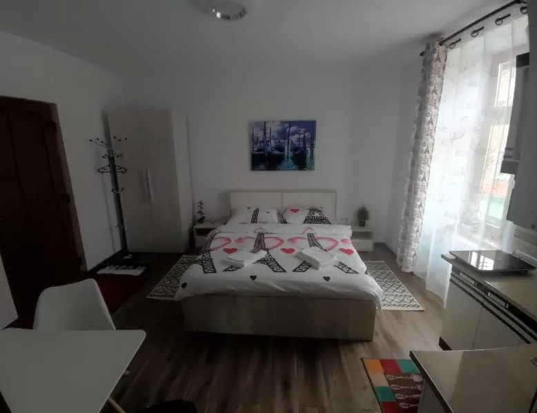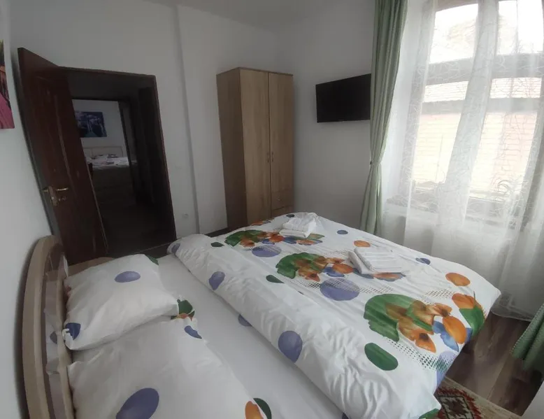 Comfortable Accommodations: Fanea Residence in Sibiu offers a two-bedroom apartment with a kitchenette, kitchen, and dining area. The apartment includes a city view, parquet floors, and a private entrance. Modern Amenities: Guests enjoy free WiFi, a refrigerator, microwave, stovetop, and free toiletries. Additional features include a dining table, TV, and interconnected rooms. Prime Location: Located 2.5 mi from Sibiu International Airport, the apartment is near attractions such as The Council Tower (4-minute walk), Albert Huet Square (1312 feet), and Piata Mare Sibiu (1640 feet). Highly rated for its convenient and central location. Boasting a private entrance, this apartment includes a kitchen, 2 bedrooms and 1 bathroom with a shower and a hairdryer. In the kitchen, guests will find a stovetop, a refrigerator, kitchenware and a microwave. The apartment offers a flat-screen TV with cable channels, a dining area, a wardrobe, parquet floors as well as city views. The unit has 2 beds.