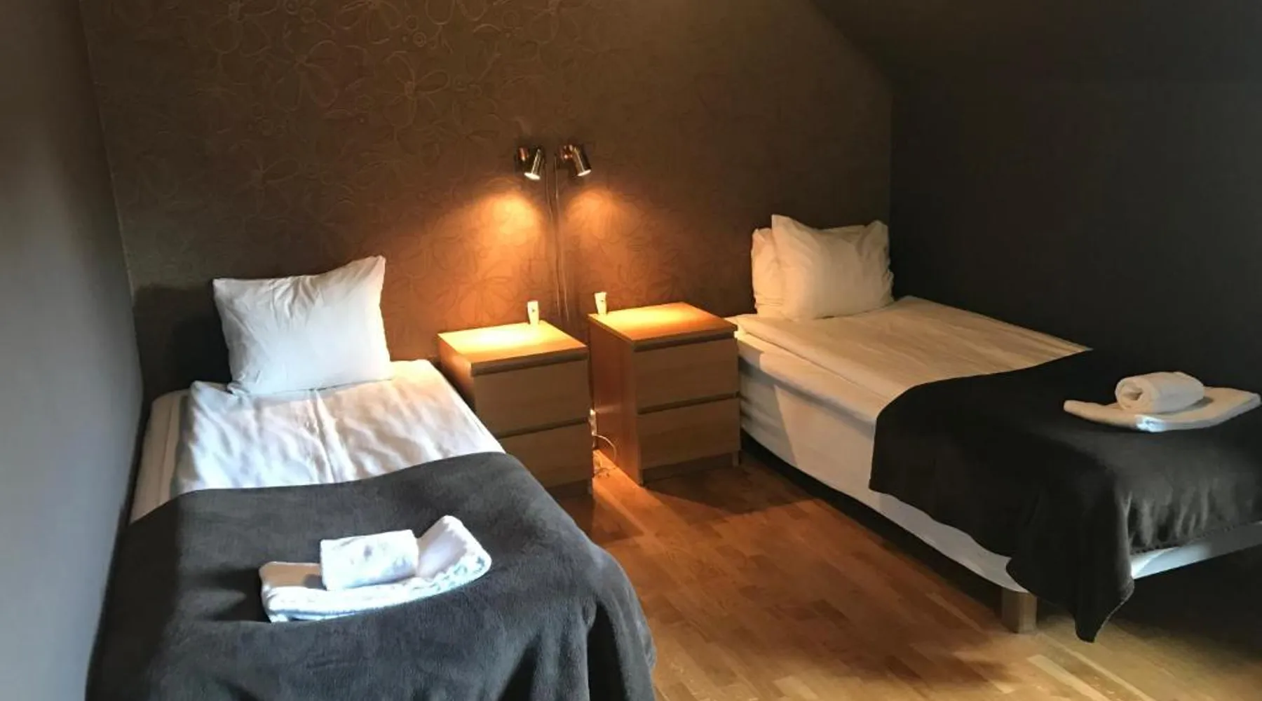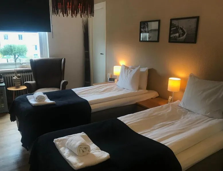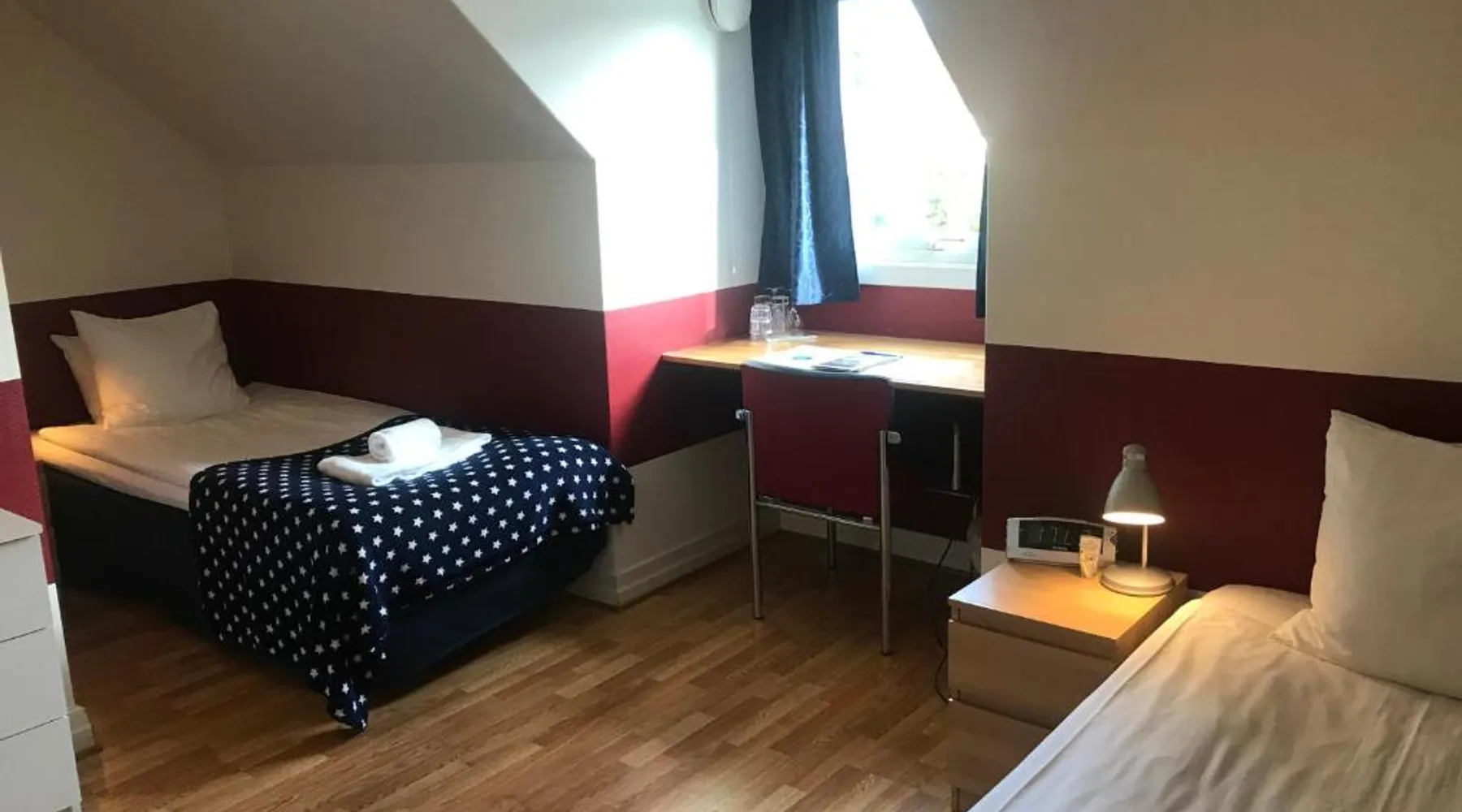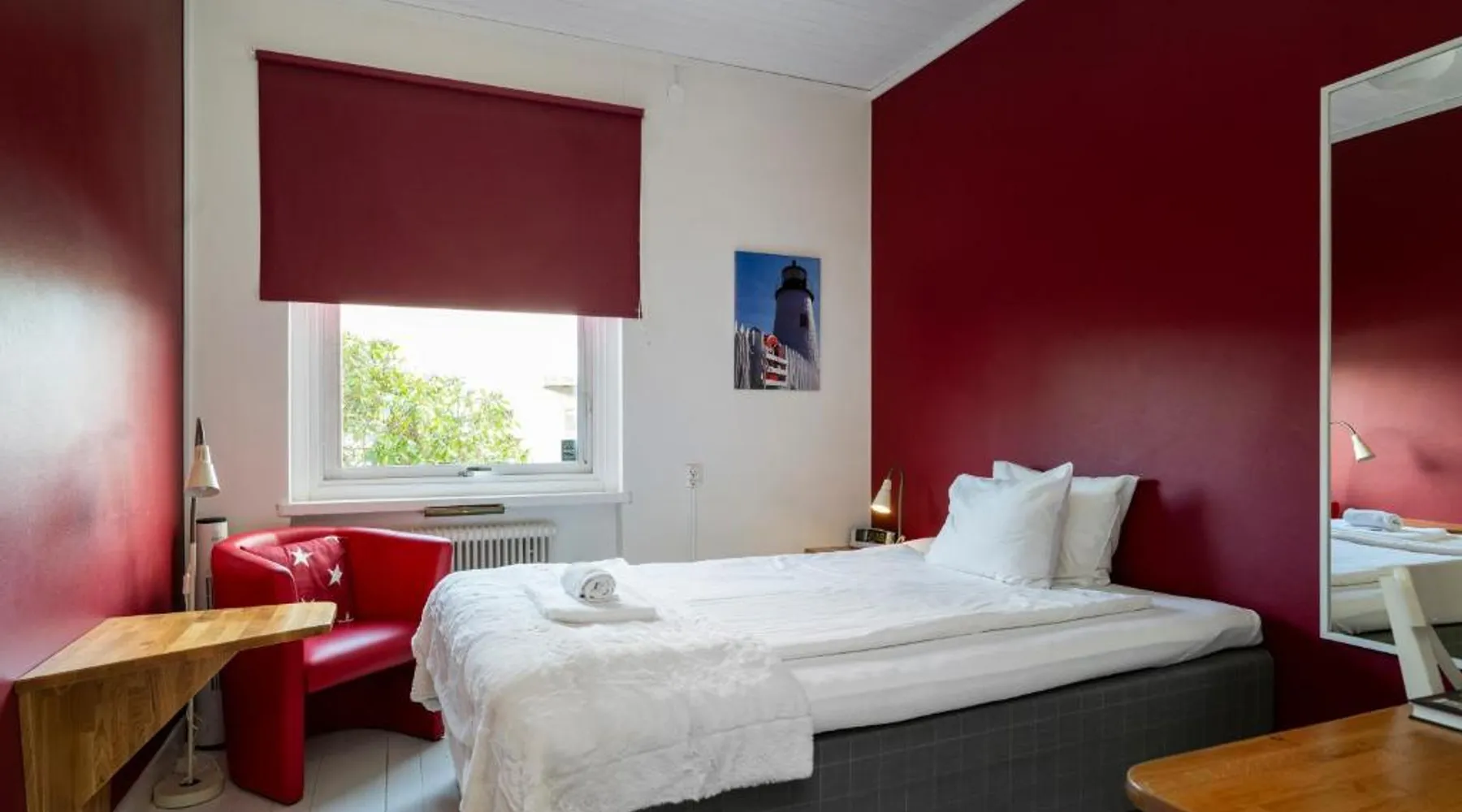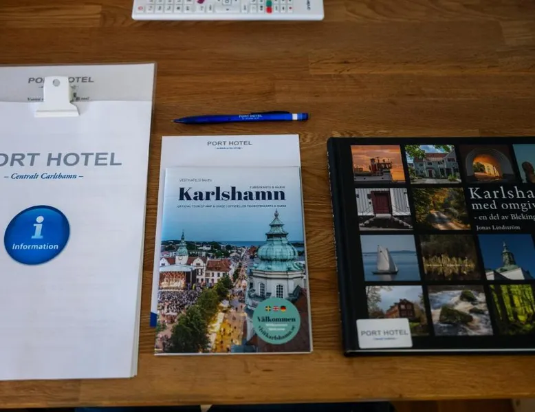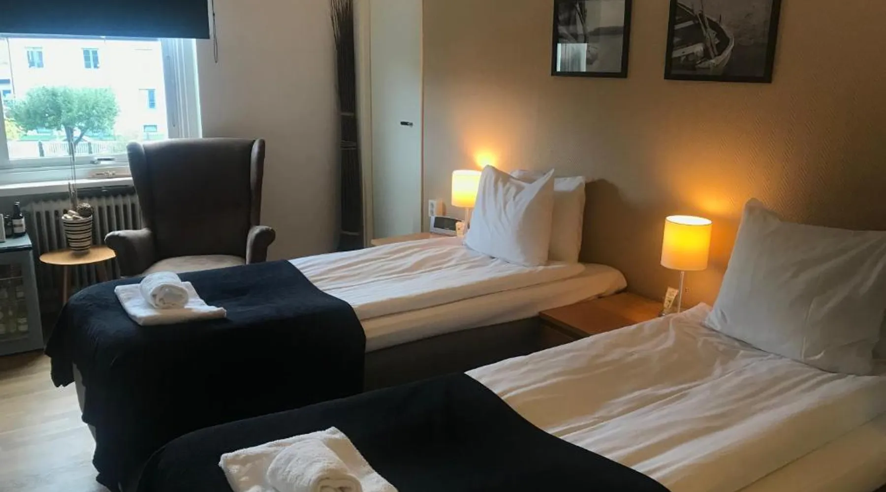 This hotel is located on the main street of Karlshamn, 2133 feet from Stortorget main market square. It offers free WiFi and a large private parking area. Guests can enjoy tea, coffee, fruit and cookies 24-hours at Port Hotel. The bright, marine-themed guest rooms at the hotel feature wooden floors, a mini-bar, desk, flat-screen TV and a comfortable armchair or sofa. Port Hotel serves a large buffet breakfast with more than 120 products. Free bicycles are available at the hotel to explore the surroundings, such as the harbor located 0.6 mi away. A seating area with a flat-screen TV, a desk and a private bathroom are provided in this spacious family room. The unit offers 5 beds.
