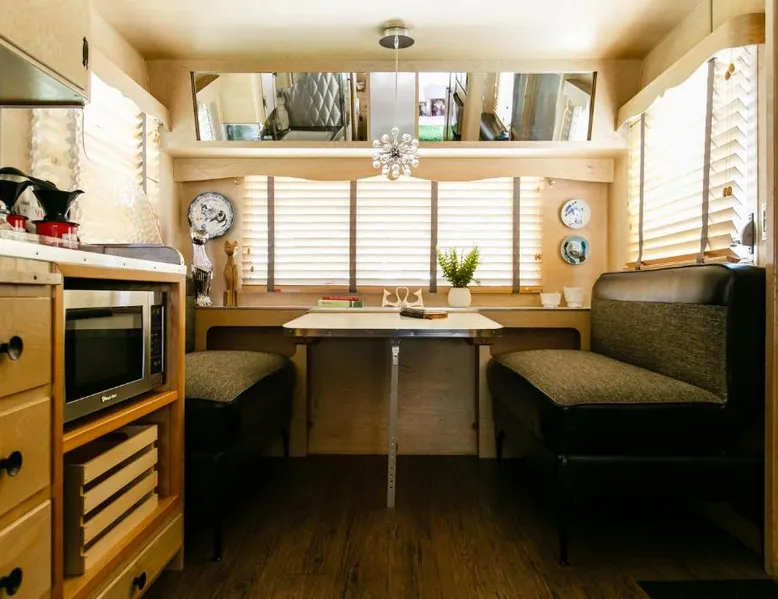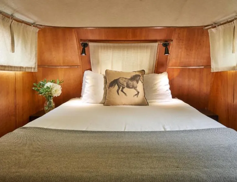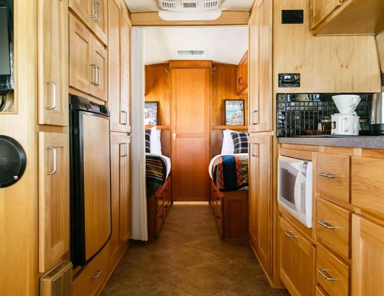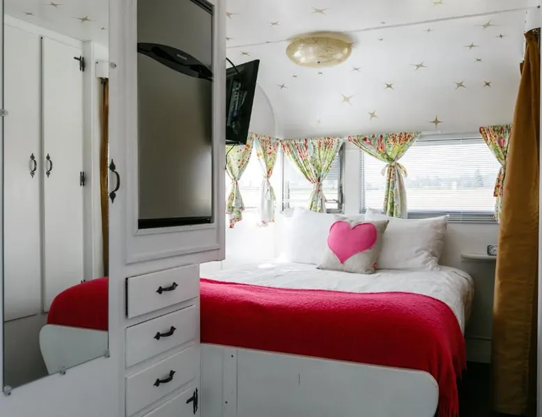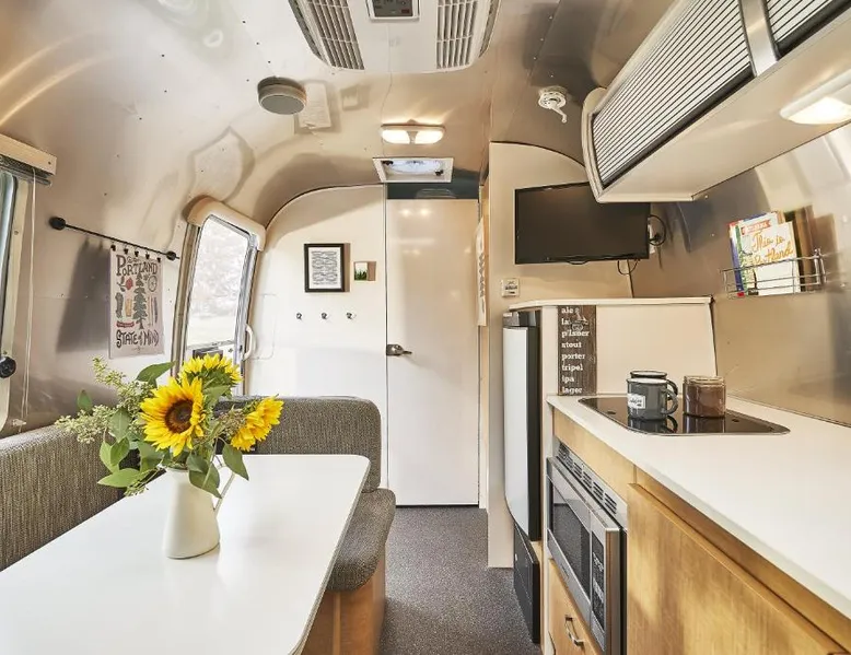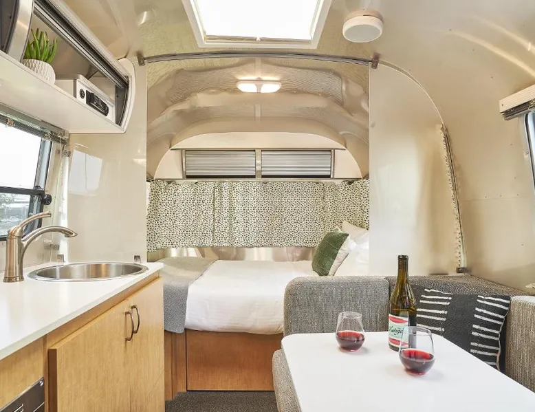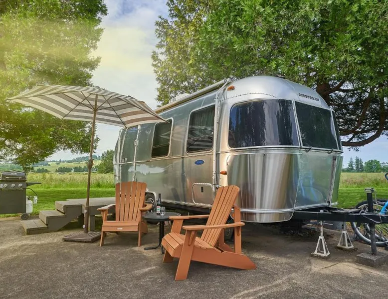 What’s better than a vintage wine? Stay at these unique vintage trailers in the heart of the Willamette Valley and you’ll find out. The Vintages Trailer Resort contains 34 different trailers, grouped together to form their own little neighborhood within the 14-acre Willamette Wine Country RV Park. Each trailer offers a different lodging experience tailored to compliment the area’s wine tasting, dining and exploration. A short list of amenities includes gourmet pour-over coffee from Caravan Coffee, luxurious terry cloth robes, comfortable mattresses, fine hotel-quality linens, a propane grill, and of course, a wine opener. The RV park offers a breathtaking view of the neighboring vineyards, a pool and an outdoor lawn with games for all to enjoy. Also nearby is the Evergreen Aviation and Space Museum and Wings and Waves Waterpark. This air-conditioned mobile home is consisted of of a flat-screen TV with streaming services and a private bathroom. The unit has 1 bed.