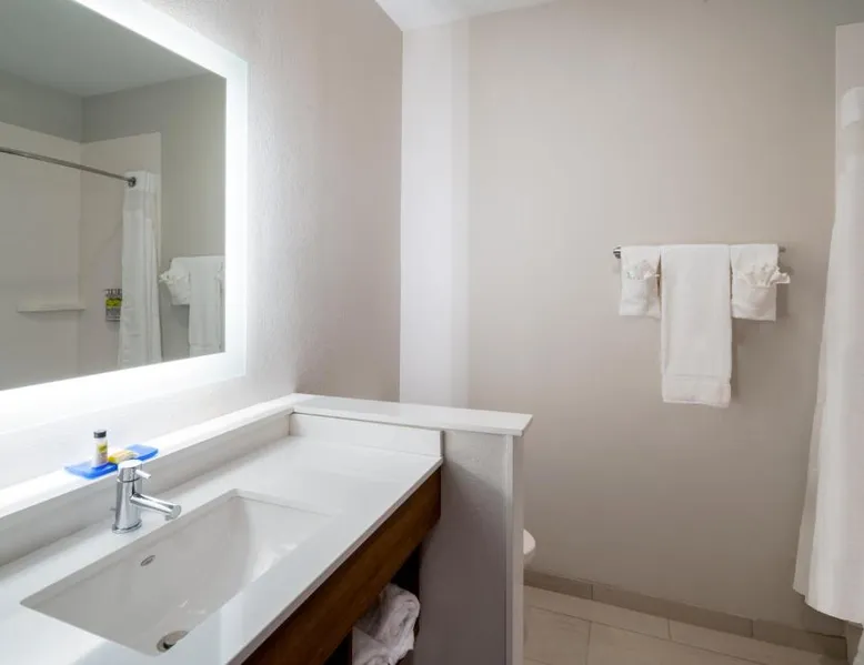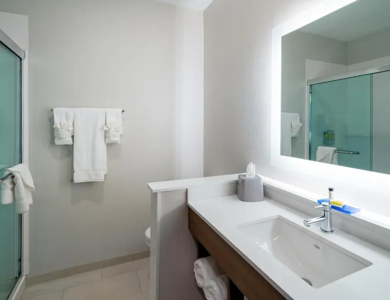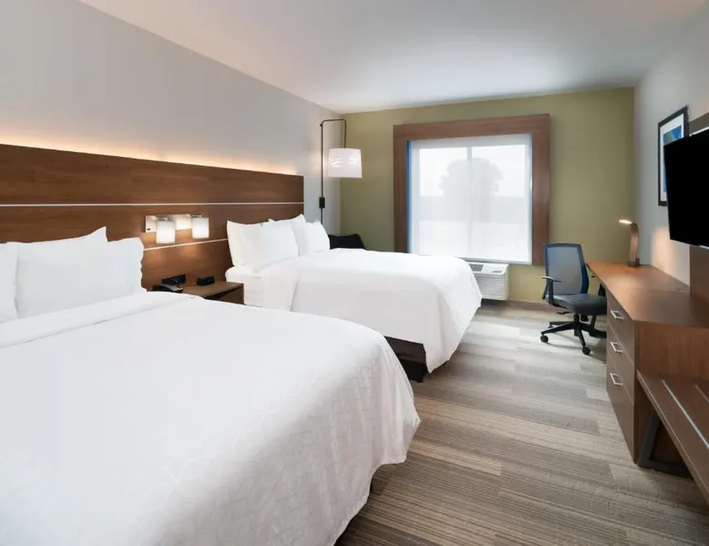 Comfortable Accommodations: Holiday Inn Express & Suites - St Peters by IHG in St Peters offers rooms with air-conditioning, private bathrooms, tea and coffee makers, and free WiFi. Each room includes a work desk, TV, and wardrobe. Leisure Facilities: Guests can enjoy a saltwater swimming pool, indoor pool, and fitness center. Additional amenities include a lounge, fitness room, and 24-hour front desk. Convenient Location: Located 19 mi from St. Louis Lambert International Airport, the hotel is near attractions such as Hollywood Casino St. Louis (14 mi) and Forest Park (27 mi). Free on-site private parking is available. Guest Satisfaction: Highly rated for room cleanliness, attentive staff, and quality breakfast. The suite offers air conditioning and a wardrobe, as well as a private bathroom featuring a hairdryer. The unit offers 2 beds.