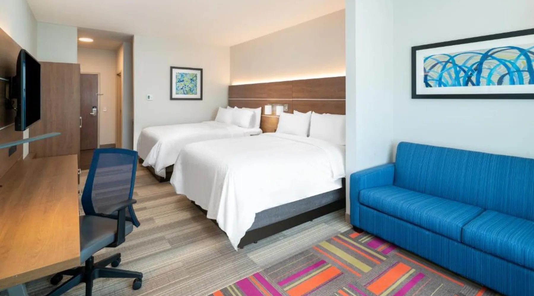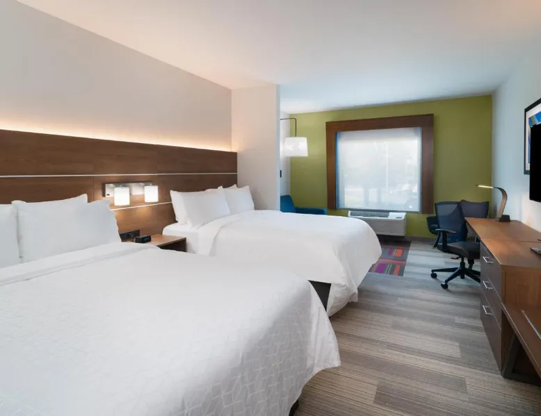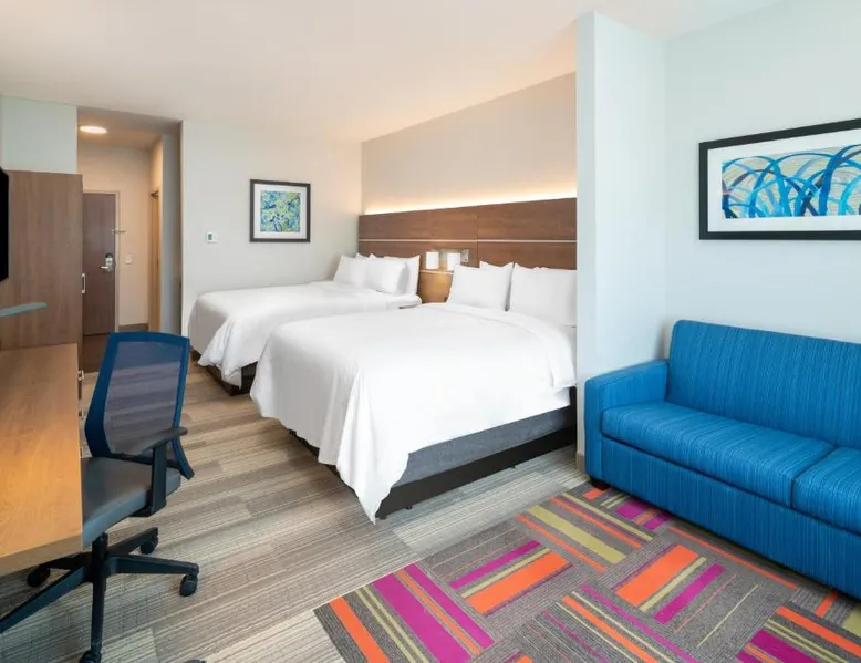 Comfortable Accommodations: Holiday Inn Express & Suites - St Peters by IHG in Saint Peters offers rooms with air-conditioning, private bathrooms, tea and coffee makers, and free WiFi. Each room includes a work desk, TV, and wardrobe. Leisure Facilities: Guests can enjoy a saltwater swimming pool, indoor pool, and fitness center. Additional amenities include a lounge, fitness room, and 24-hour front desk. Convenient Location: Located 19 mi from St. Louis Lambert International Airport, the hotel is near attractions such as Windsor Crossing Community Church (2.2 mi) and Daniel Boone Monument (2.9 mi). Free on-site private parking is available. Guest Satisfaction: Highly rated for room cleanliness, attentive staff, and quality breakfast. The unit has 2 beds.