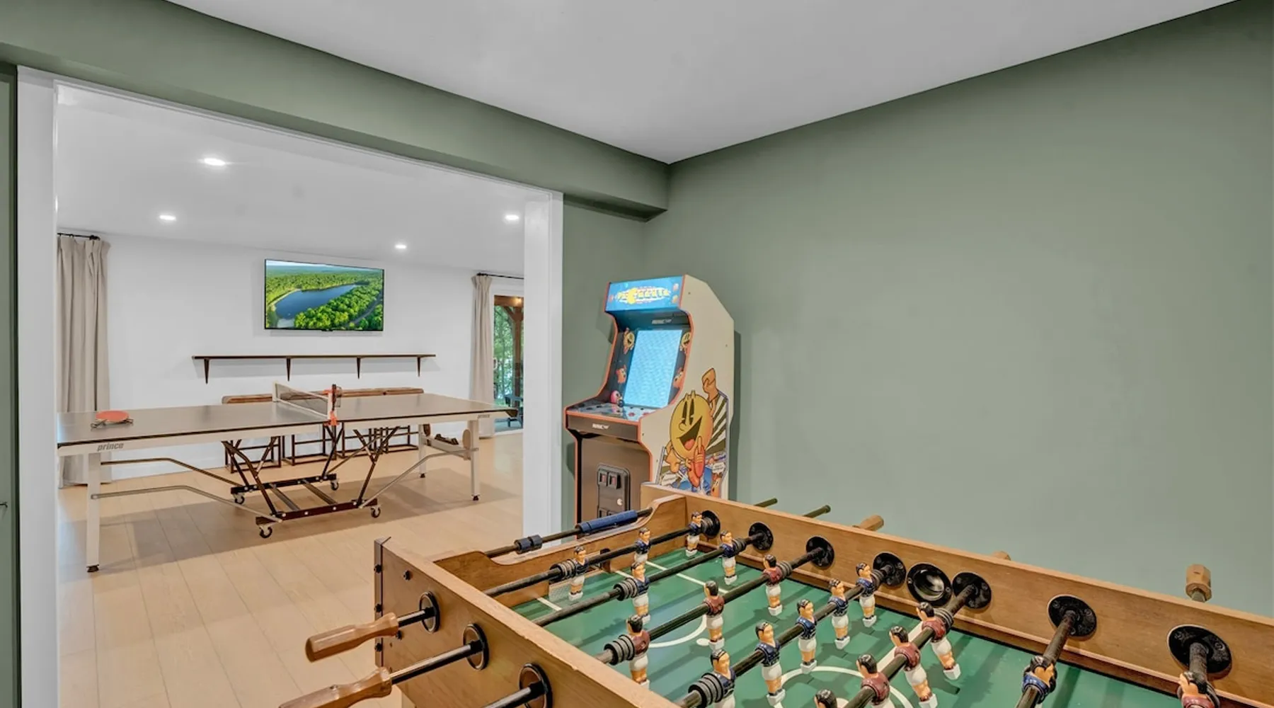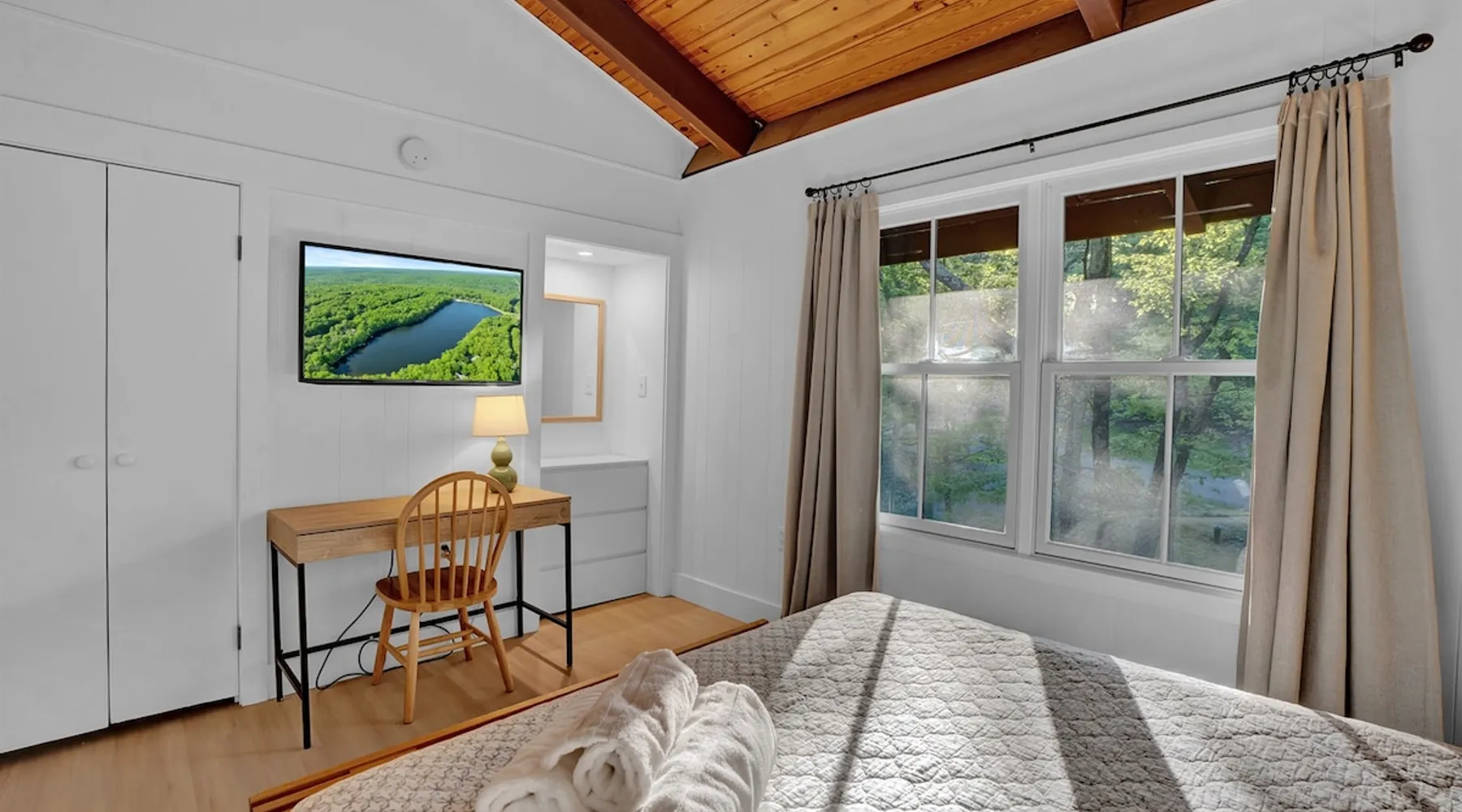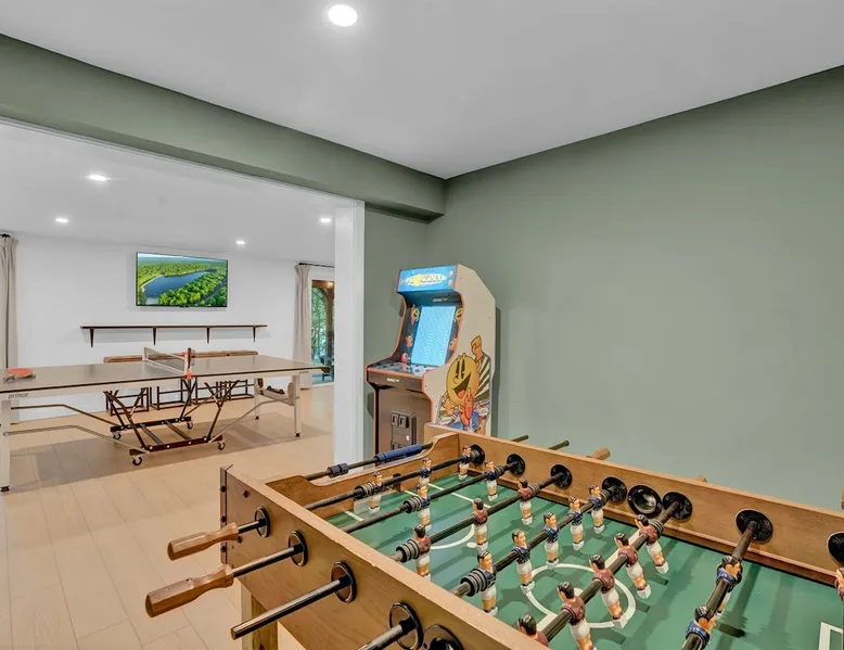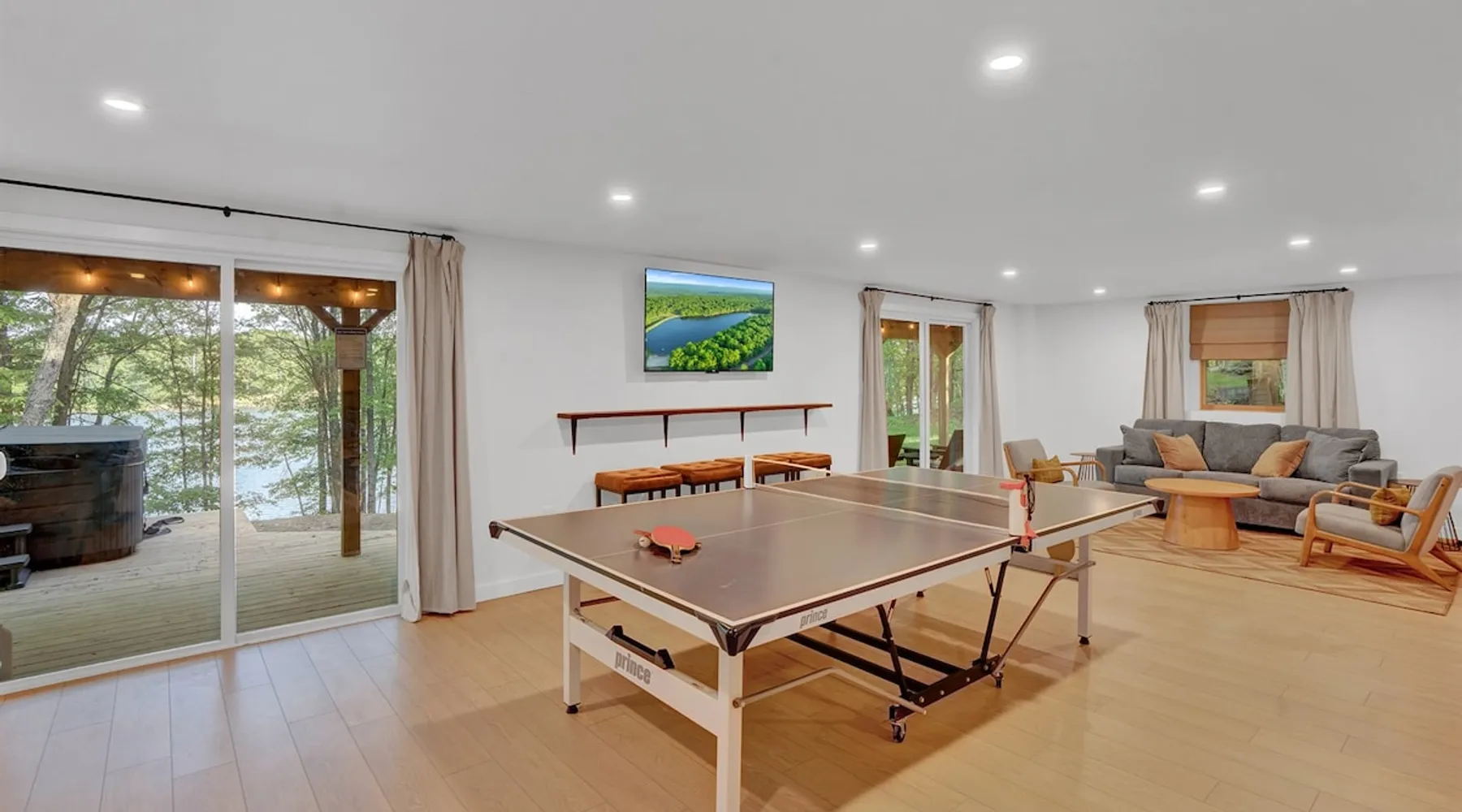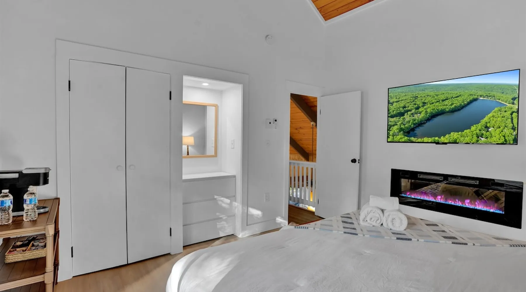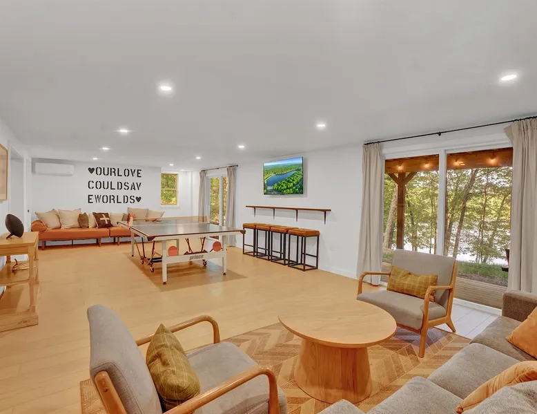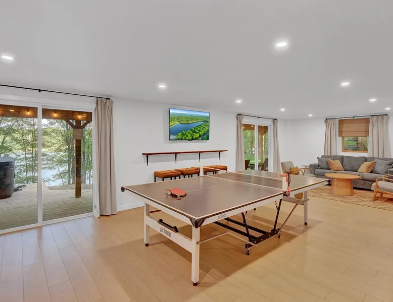 Welcome to Olibear, your lakeside fall retreat. This inviting home is perfect for couples, families, or anyone seeking to witness the subtle beauty of the Poconos as it begins its transformation. Enjoy the serene moments by the water, unwind in the private hot tub, or cozy up by the fire pit under the skies. 5 minutes to Bushkill Falls, you can explore the trails as the autumn color show slowly begins. Claim your spot for this unforgettable lakeside escape as we welcome fall! The space Come and enjoy “Olibear'' Lakefront style, take a much-needed break from the hustle & bustle of everyday life, and give the kids the nature they deserve. From the gorgeous open-concept living space to the lakefront yard, this home is a sanctuary for you and your family to enjoy Mother Nature in the Pennsylvania wilderness. Free access to all community amenities like the lake, the beach, the heated pool, kiddie pool, whirlpool, pickleball courts, tennis, basketball and a snack bar. Only a 1.5-mile drive to the community center from the pool. The lake is in your backyard. ★ KEY FEATURES ★ ✵ Sleeps 13: 4 BD / 3 BA, 1 king, 1 queen, 1 twin over a full bunk bed, 2 queen-size sleeper sofas + 2 twins ✵ Fully equipped with lux linens, bath towels, hand towels, washcloths, make-up towels, and beach towels for all guests ✵ 3 Bathrooms: 3 full with combo shower/tub ✵ Lakefront: Dive into lakeside living with direct access just steps from your door and a large dock! ✵ Private Hot Tub: Relax and soak up the sun or unwind in the hot tub under the stars, overlooking the lake ✵ 2 indoor fireplaces. 1 Electrical, one in each master and 1 wood burning fireplace in the main family room. ✵ BBQ: Cook up something tasty while enjoying the stunning view of the lake ✵ Fully New Equipped Kitchen: Freedom to prepare meals, and enjoy home-cooked favorites in the Poconos. Modern stainless steel appliances and new cabinets ✵ Outdoor deck/patio: Spacious, outdoor deck and dining, comfortable seating, firepit, and bistro lights for an ultimate mountain experience. ✵ High-Speed Internet: Stay connected for work or scrolling through social media – no lag here! ✵ 4 Smart TVs in Total with the streaming services included for movie night ✵ New 1,000 sq ft game room and entertainment area, rain or shine, enjoy our dedicated entertainment room with foosball, ping pong, and a new arcade for all ages ✵ Complimentary Canoe, Kayaks & Pedal Boat for Use ✵ Community Pool with Spa Jacuzzi (Outdoor Heated Pool open June 7, 2025, daily 12-8 pm. Indoor Heated Pool Open on the Weekends) ✵ Prime Bird Watching & Wildlife Viewing Location ✵ Community Tennis Courts and NEW Pickleboard courts ✵ Beach Volleyball court by the lake ✵ Playground for the Kids ✵ Serene lakefront hammock for an afternoon nap ✵ Large Community Pavilion & Lake Beach Access Here are some reasons why our past guests love Olibear in the Poconos: "The house was perfect for our fall getaway! Spacious, cozy, and right by the lake. We'll be back!" – Alexander "Had an amazing winter weekend! The cabin vibe and location were just what we needed. Great hosts!" – Peter "Loved the fully stocked kitchen for our holiday feast! Cozy wood interior and peaceful winter setting." – Jennifer "Beautiful home for a winter escape. Hosts were super helpful, and the lakeside view was stunning!" – Avi ★ PRIME LOCATION IN THE HEART OF BUSHKILL, PA ★ Discover the ultimate golfer's paradise in the Poconos, where world-class courses, stunning natural beauty, and a tranquil retreat await your perfect swing! ✵ Pocono Hills Golf Course - Enjoy a relaxing round at this scenic course, known for its rolling hills and beautiful views. ✵ Great Bear Golf Club - Designed by Jack Nicklaus, this premier course offers a challenging and unforgettable golfing experience. ✵ Pocono Manor Golf Course - A historic course with over a century of tradition, offering 18 holes of classic golf amid stunning mountain scenery. ✵ Country Club of the Poconos - This course provides a unique golfing experience with its diverse terrain and breathtaking landscape. ✵ Buck Hill Golf Club - A historic course offering 27 holes of championship golf set in a picturesque mountain landscape. ✵ Mount Airy Golf Club - A beautifully designed course inspired by Sports Illustrated’s “Best 18 Holes in America,” offering a challenging yet enjoyable experience. ✵ Jack Frost National Golf Club - Known for its stunning views and meticulously maintained fairways, providing a top-notch golfing experience These courses offer a range of golfing experiences, each with its charm and spectacular views. No matter what season you wish to visit this epic lakefront home, you will LOVE your stay here. This peaceful property is located in the heart of Bushkill, only 2 hours out of NYC, in a private & quiet neighborhood. ✢ Local Markets, Grocery Stores & Shops Nearby ✢ Local Restaurants with Great Food & Friendly People Nearby ✢ Water Sports & Fishing from the Property (Canoe, Kayaks & Pedal Boat) ✢ Snow Play, Skiing, Snowboarding & Sledding Areas During Winter ✢ 10 Minutes to Delaware River for White Water Rafting & Tubing ✢ 45 Minutes to Camelback for Great Skiing, Tubing ✢ 45 Minutes to Aquatopia Indoor Water Park ✢ Numerous Hiking Trails ✢ 20 Minutes to Shawnee for Skiing, Tubing and Snowboarding ✢ MUCH MORE! ★ 4 BEDROOMS / 3 BATHROOMS TO ACCOMMODATE FRIENDS & FAMILY ★ This quiet & quaint Bushkill nature hideaway features 4 bedrooms with 6 plush beds and 3 bathrooms to accommodate up to 13 guests! The floor plan includes: ✴ Master bedroom 1 - King Bed / Electric Fireplace with lights / New Closets / 55 in SmarTV /Dedicated Workspace with Desk / Darkening Curtains / Tall Ceilings / AC / Fan / Private Bathroom / Charging Station / Crib (Portable Pack & Play) ✴ Bedroom 2: Twin Over Full Bunk Bed (Sleeps 3) / AC / Fan / Charging Station ✴ Bedroom 3: Queen Bed / Large Cl