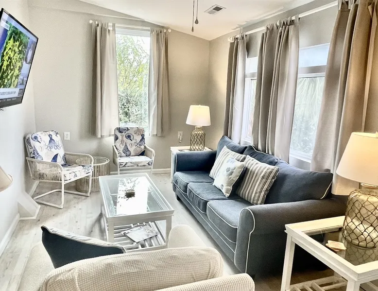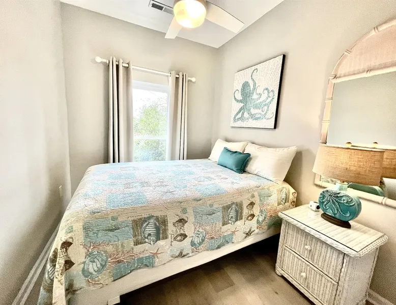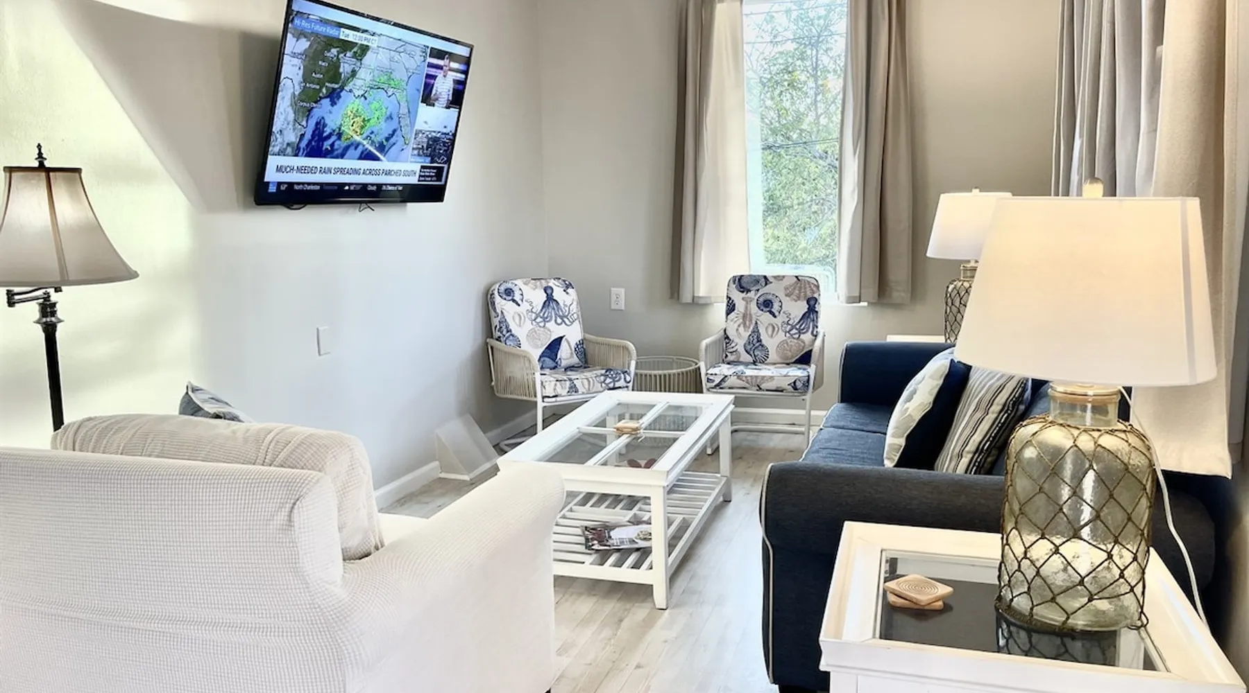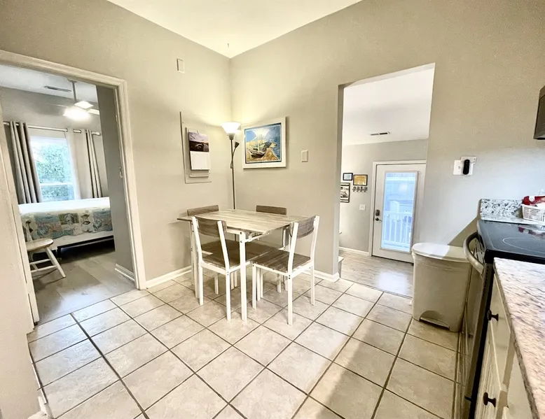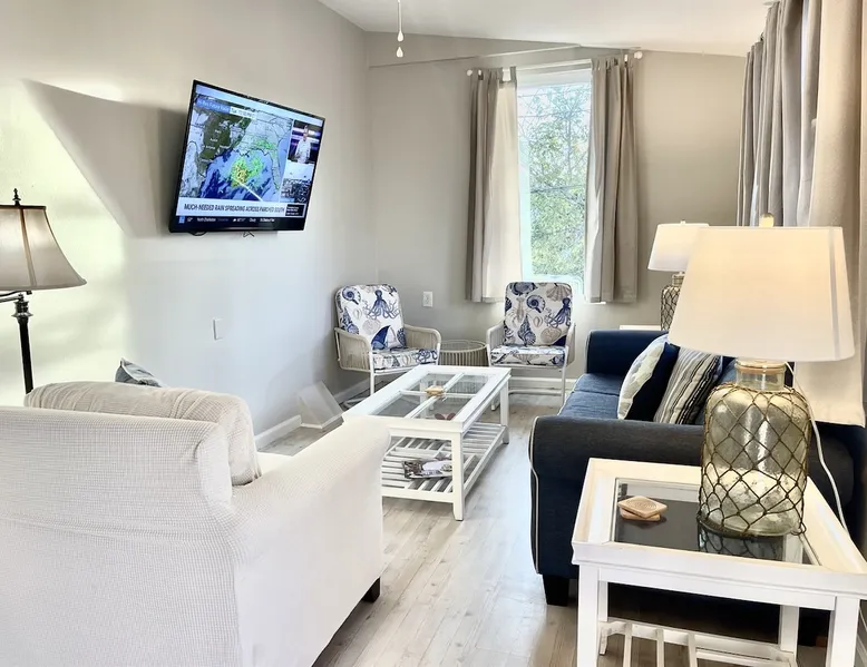 This 2nd floor 2Br1Ba condo at The Ocean Inn is the perfect spot for families to get-away. Beautiful sunsets can be seen from here! Sleeps 6 - there are 2 Q beds and a Q sofa bed. Decor throughout the condo is bright, "beachy" & casual. Full kitchen with eat-in area, no dishwasher. Pet friendly - fees adjusted according to weight. Min number of nights required. Need a shorter stay? Please inquire. If we can accommodate your request, we will be happy to. Permit:P-00508 Effective 03/15/2025 The space Located at The Ocean Inn on the Isle of Palms, this 2 bedroom / 1 bath upstairs condo is the perfect spot for a family who wants to have true get-away. One of the best qualities of this condo is that it is upstairs which offers fantastic light and views. It is situated at a perfect angle to see our beautiful "lowcountry" sunsets. Decor throughout the condo is bright, "beachy", fun and casual. This is a place where you can truly relax. The living area has a large TV with Comcast cable. Wi-Fi is also included. Out the window you will be able to see the pool, slightly obscured by the palms trees and poolside shrubbery. Let the teenagers have time to themselves by the pool while parents enjoy cooling off in the air conditioning. This is a split level unit with the kitchen, bedroom and bath all elevated a few steps up from the living area. It is this way because of the historical nature of the original building and the additions made to it in the 70s. It is thought that the original building was an old trolley stop with rooms for rent, located elsewhere on the island and moved here to create the Inn. We do know, from the original floor plans of the building, that the original floor plan looked almost nothing like it does now. Thus, small bedrooms and stairs in places one wouldn't expect but lots of character! Up the steps from the living space, the full kitchen has new granite counter tops and a table to enjoy family dinners. If you want to cook, there are plenty of pots pans and utensils to do so. There is a full-sized fridge, plenty of dish- and drink-ware. The bedrooms, though small, each have a comfortable queen bed, bedside table as well as bedside lighting. There's also a small closet. Bathroom has a tub and shower combination and there is a new granite counter and new sink there as well. Guest access Guests will receive email from Dreams N Druthers 7 days before arrival with specific instructions for entry. Parking passes are required and are also sent by email. Check in is 4pm, check out is 10am. Because there are always maintenance needs in our properties, check in times are not always flexible regardless of availability on the previous nights of arrival. If by chance the property is ready early, you will receive a text either the day before or the day of arrival. We do try to allow early access when we can. Other things to note ** COMMUNICATION: as an integrated partner on this booking site, please be aware that all future communications will come from Dreams N Druthers. Please be on the lookout. ** E-SIGNATURE CONTRACT: In addition to any contract you may have signed through an integrated partner (such as AIRBNB/VRBO). We require our own E-Signed contract to complete your booking. This allows us to include additional details we are unable to elsewhere. PLEASE NOTE THESE ANSWERS TO FREQUENTLY-ASKED QUESTIONS: **MINIMUM BOOKING AGE is 25. The person holding the reservation must be staying at the property. No 3rd party booking is allowed. **PRE-APPROVAL OF PETS REQUIRED Pets (DOGS ONLY) are allowed ONLY IN SELECT PROPERTIES. Breed/weight restrictions are applicable. PET FEES are $25/pet per night. DISCOUNT ON PET FEES AVAILABLE FOR SEASONAL RENTALS. PET POLICY Guests are responsible for adhering to pet policies provided in the contract as well as all Isle of Palms pet ordinances **MINIMUM NIGHTS Some of our properties have "minimum nights required" to make a reservation on weekends, holidays, and during the summer season. To check availability for a shorter stay, please send a message / inquiry. If it's possible, we'd be happy to accommodate you. ** CONFIRMATION & PAYMENT: Your reservation is confirmed when the initial payment is paid. Payment options are dependent on the cancellation policy and how far away you are booking your stay. For reservations made in advance of 30 days, the remaining balance is due 30 days before arrival. Balances are deducted automatically from the card on file. In the event of payment failure, a grace period of 24 hours is given to remedy the payment. ** ITEMS PROVIDED: Soaps, linens, towels and starter paper products will be in your condo upon arrival. Routine linen and towel exchanges are not provided during your stay. Guests are responsible for replacing their own paper and soap products if starter amounts are used during their stay. It is not necessary to replace these for future guests. **SMOKING All of our properties are NO SMOKING properties. Smoking is allowed outdoors only. Please discard appropriately. Deposit will be forfeited and additional cleaning charges incurred if evidence of smoking indoors is found upon departure. THIS INCLUDES smoking by an open door or window so that smoke enters the condo. Please smoke away from these areas. **NOISE ORDINANCE Guests are responsible for following the Isle of Palms 10PM noise ordinance