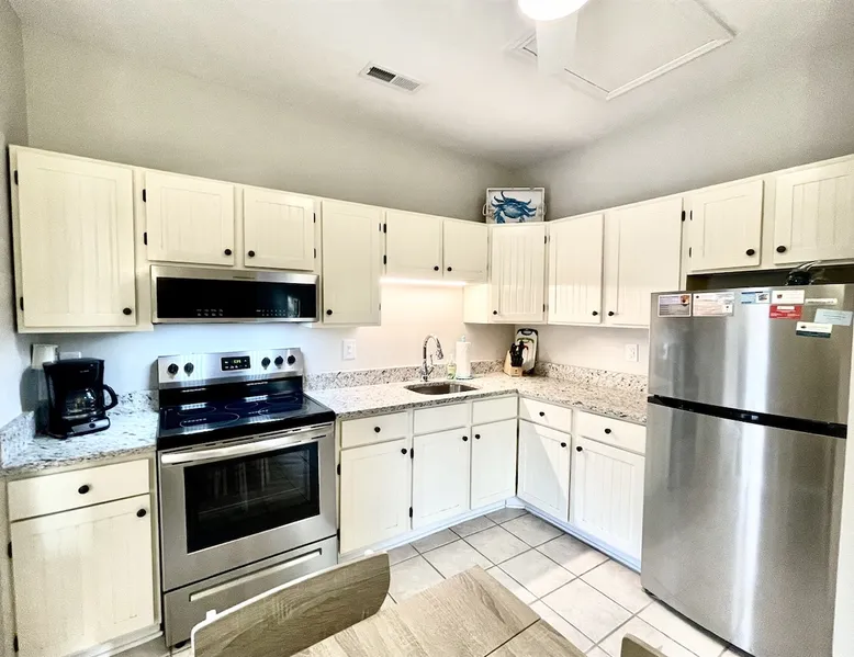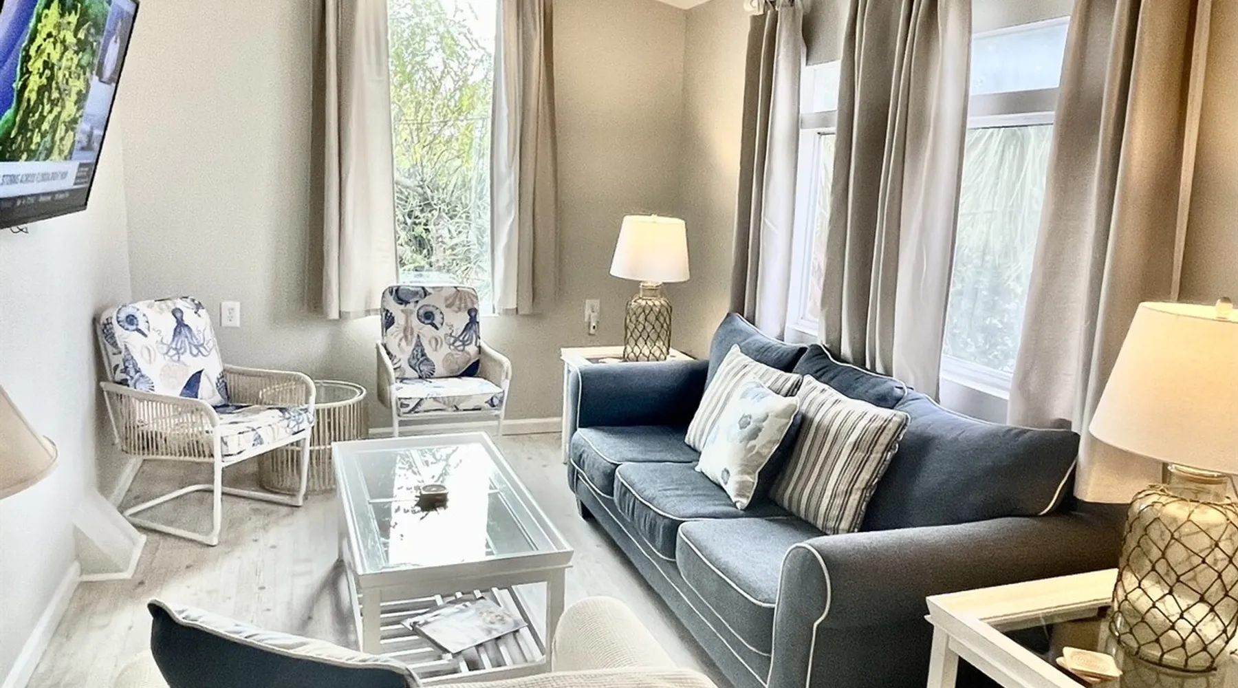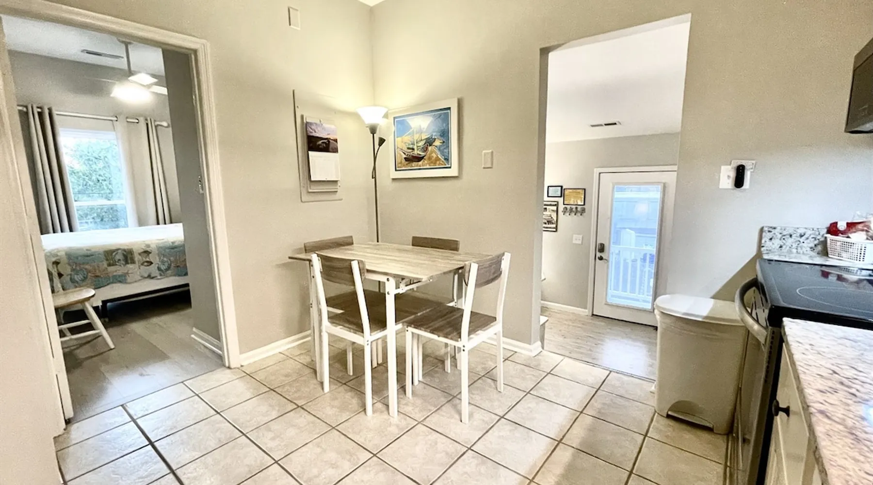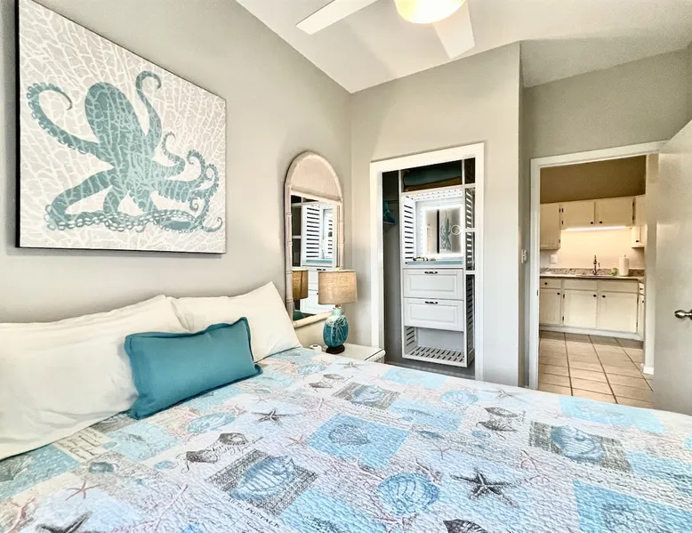 This 2nd floor 2Br1Ba condo at The Ocean Inn is the perfect spot for families to get-away. Beautiful sunsets can be seen from here! Sleeps 6 - there are 2 Q beds and a Q sofa bed. Decor throughout the condo is bright, "beachy" & casual. Full kitchen with eat-in area, no dishwasher. Pet friendly - fees adjusted according to weight. Min number of nights required. Need a shorter stay? Please inquire. If we can accommodate your request, we will be happy to. Permit:P-00508 Effective 03/15/2025 The space Located at The Ocean Inn on the Isle of Palms, this 2 bedroom / 1 bath upstairs condo is the perfect spot for a family who wants to have true get-away. One of the best qualities of this condo is that it is upstairs which offers fantastic light and views. It is situated at a perfect angle to see our beautiful "lowcountry" sunsets. Decor throughout the condo is bright, "beachy", fun and casual. This is a place where you can truly relax. The living area has a large TV with Comcast cable. Wi-Fi is also included. Out the window you will be able to see the pool, slightly obscured by the palms trees and poolside shrubbery. Let the teenagers have time to themselves by the pool while parents enjoy cooling off in the air conditioning. This is a split level unit with the kitchen, bedroom and bath all elevated a few steps up from the living area. It is this way because of the historical nature of the original building and the additions made to it in the 70s. It is thought that the original building was an old trolley stop with rooms for rent, located elsewhere on the island and moved here to create the Inn. We do know, from the original floor plans of the building, that the original floor plan looked almost nothing like it does now. Thus, small bedrooms and stairs in places one wouldn't expect but lots of character! Up the steps from the living space, the full kitchen has new granite counter tops and a table to enjoy family dinners. If you want to cook, there are plenty of pots pans and utensils to do so. There is a full-sized fridge, plenty of dish- and drink-ware. The bedrooms, though small, each have a comfortable queen bed, bedside table as well as bedside lighting. There's also a small closet. Bathroom has a tub and shower combination and there is a new granite counter and new sink there as well. Guest access Guests will receive email from Dreams N Druthers 7 days before arrival with specific instructions for entry. Parking passes are required and are also sent by email. Check in is 4pm, check out is 10am. Because there are always maintenance needs in our properties, check in times are not always flexible regardless of availability on the previous nights of arrival. If by chance the property is ready early, you will receive a text either the day before or the day of arrival. We do try to allow early access when we can. Other things to note ** COMMUNICATION: as an integrated partner on this booking site, please be aware that all future communications will come from Dreams N Druthers. Please be on the lookout. ** E-SIGNATURE CONTRACT: In addition to any contract you may have signed through an integrated partner (such as AIRBNB/VRBO). We require our own E-Signed contract to complete your booking. This allows us to include additional details we are unable to elsewhere. PLEASE NOTE THESE ANSWERS TO FREQUENTLY-ASKED QUESTIONS: **MINIMUM BOOKING AGE is 25. The person holding the reservation must be staying at the property. No 3rd party booking is allowed. **PRE-APPROVAL OF PETS REQUIRED Pets (DOGS ONLY) are allowed ONLY IN SELECT PROPERTIES. Breed/weight restrictions are applicable. PET FEES are $25/pet per night. DISCOUNT ON PET FEES AVAILABLE FOR SEASONAL RENTALS. PET POLICY Guests are responsible for adhering to pet policies provided in the contract as well as all Isle of Palms pet ordinances **MINIMUM NIGHTS Some of our properties have "minimum nights required" to make a reservation on weekends, holidays, and during the summer season. To check availability for a shorter stay, please send a message / inquiry. If it's possible, we'd be happy to accommodate you. ** CONFIRMATION & PAYMENT: Your reservation is confirmed when the initial payment is paid. Payment options are dependent on the cancellation policy and how far away you are booking your stay. For reservations made in advance of 30 days, the remaining balance is due 30 days before arrival. Balances are deducted automatically from the card on file. In the event of payment failure, a grace period of 24 hours is given to remedy the payment. ** ITEMS PROVIDED: Soaps, linens, towels and starter paper products will be in your condo upon arrival. Routine linen and towel exchanges are not provided during your stay. Guests are responsible for replacing their own paper and soap products if starter amounts are used during their stay. It is not necessary to replace these for future guests. **SMOKING All of our properties are NO SMOKING properties. Smoking is allowed outdoors only. Please discard appropriately. Deposit will be forfeited and additional cleaning charges incurred if evidence of smoking indoors is found upon departure. THIS INCLUDES smoking by an open door or window so that smoke enters the condo. Please smoke away from these areas. **NOISE ORDINANCE Guests are responsible for following the Isle of Palms 10PM noise ordinance