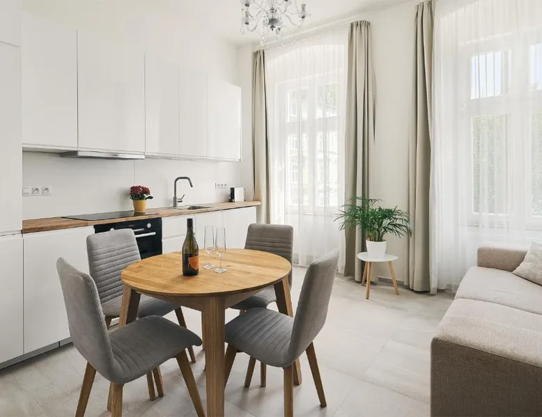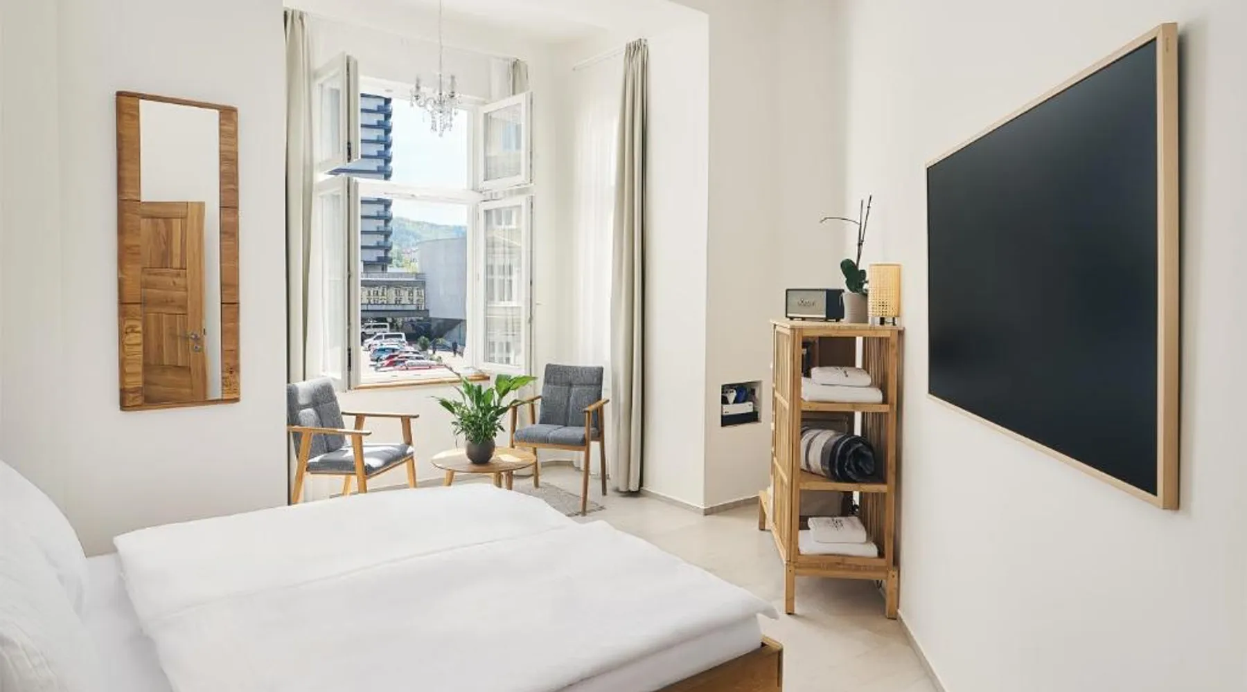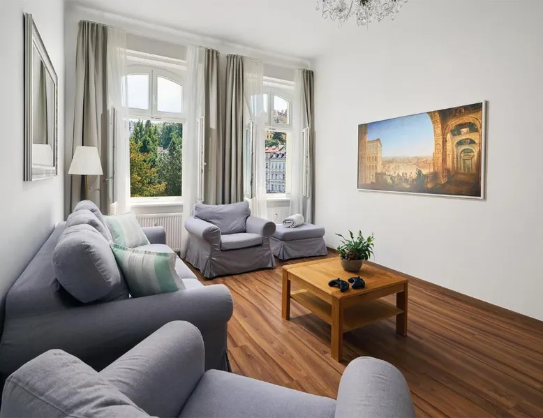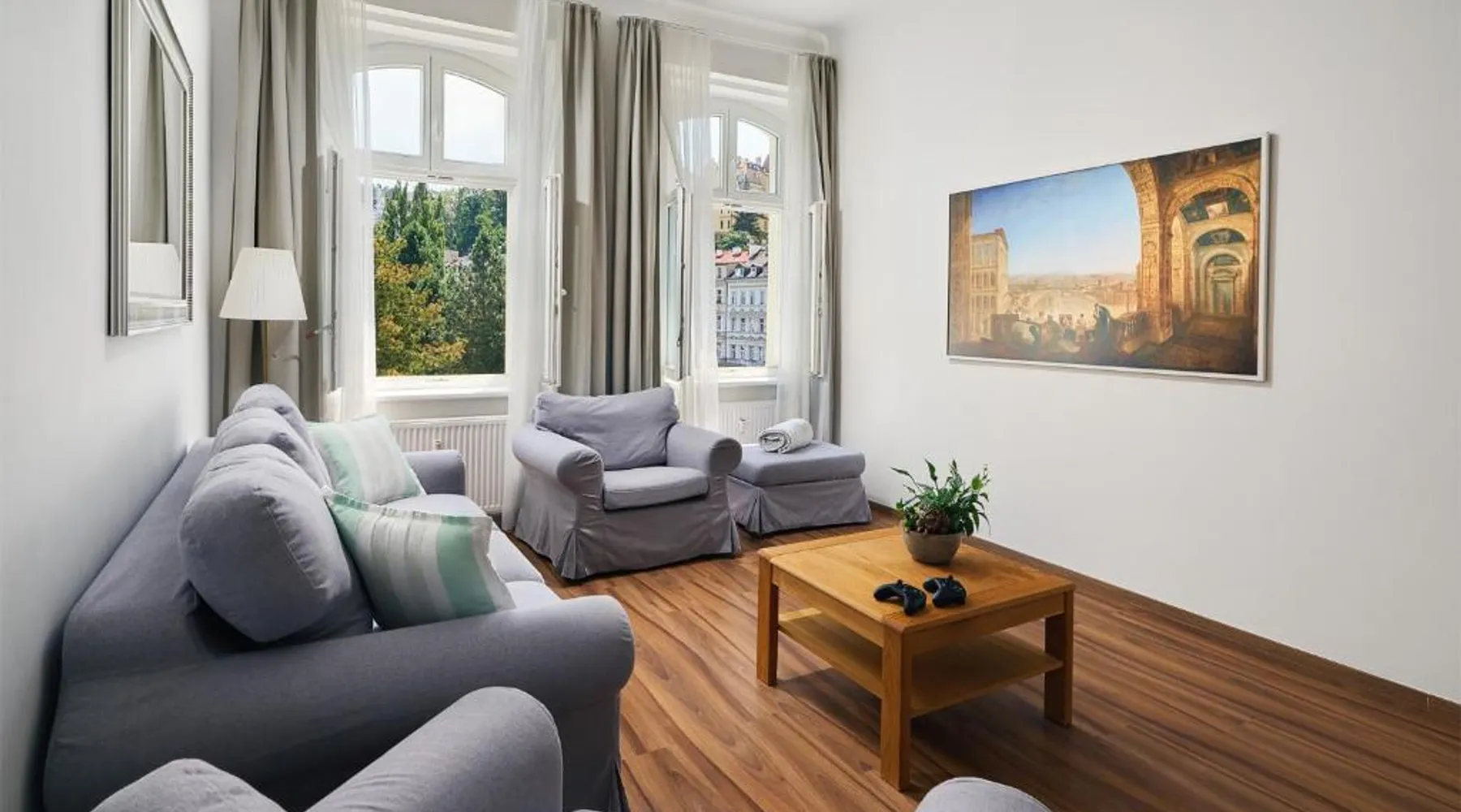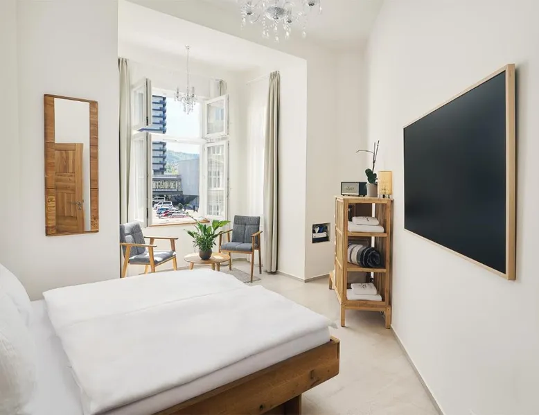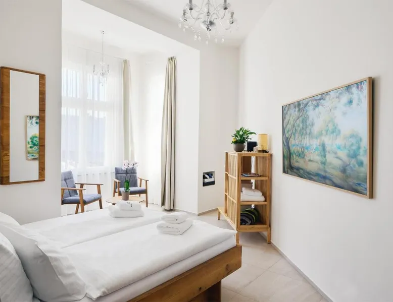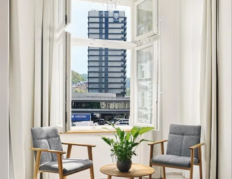 Historic Setting: IMPERIAL Apartments in Karlovy Vary offers a unique stay within a historic building. Guests enjoy a central location with easy access to key attractions. Spa Facilities: The property features spa facilities, an open-air bath, and a restaurant. Wellness packages and a steam room enhance the relaxation experience. Comfortable Accommodations: Apartments include air-conditioning, kitchenettes, and private bathrooms. Additional amenities include free WiFi, streaming services, and city views. Dining Options: The family-friendly restaurant serves brunch, lunch, dinner, high tea, and cocktails in a traditional and modern ambiance. Local Attractions: Nearby attractions include Hot Spring (13-minute walk), Market Colonnade (0.6 mi), and Jan Becher Museum (1969 feet). Karlovy Vary International Airport is 3.7 mi away. Featuring a private entrance, this air-conditioned apartment consists of 1 living room, 2 separate bedrooms and 1 bathroom with a shower and a bidet. Meals can be prepared in the well-fitted kitchen, which comes with a stovetop, a refrigerator, a dishwasher and kitchenware. The spacious apartment provides a washing machine, soundproof walls, a tea and coffee maker, a flat-screen TV with streaming services, as well as city views. The unit offers 3 beds.