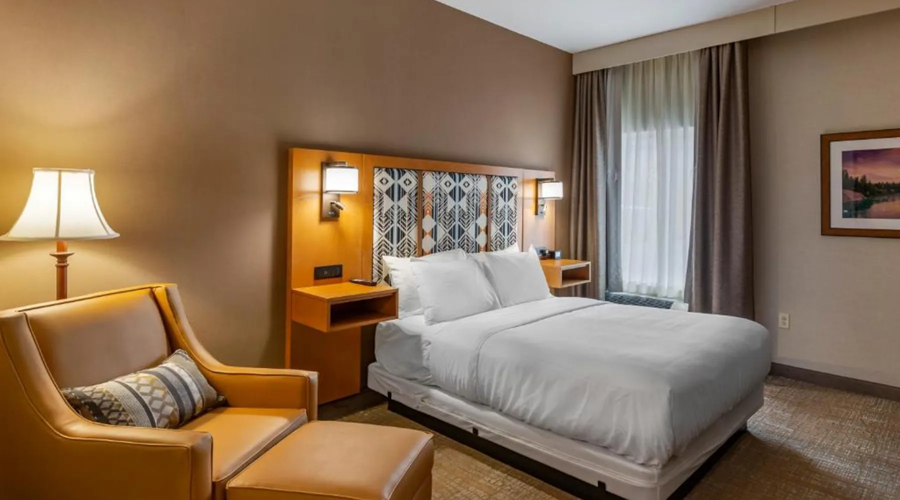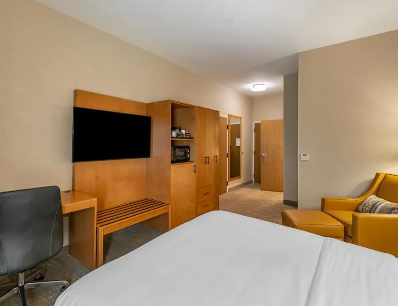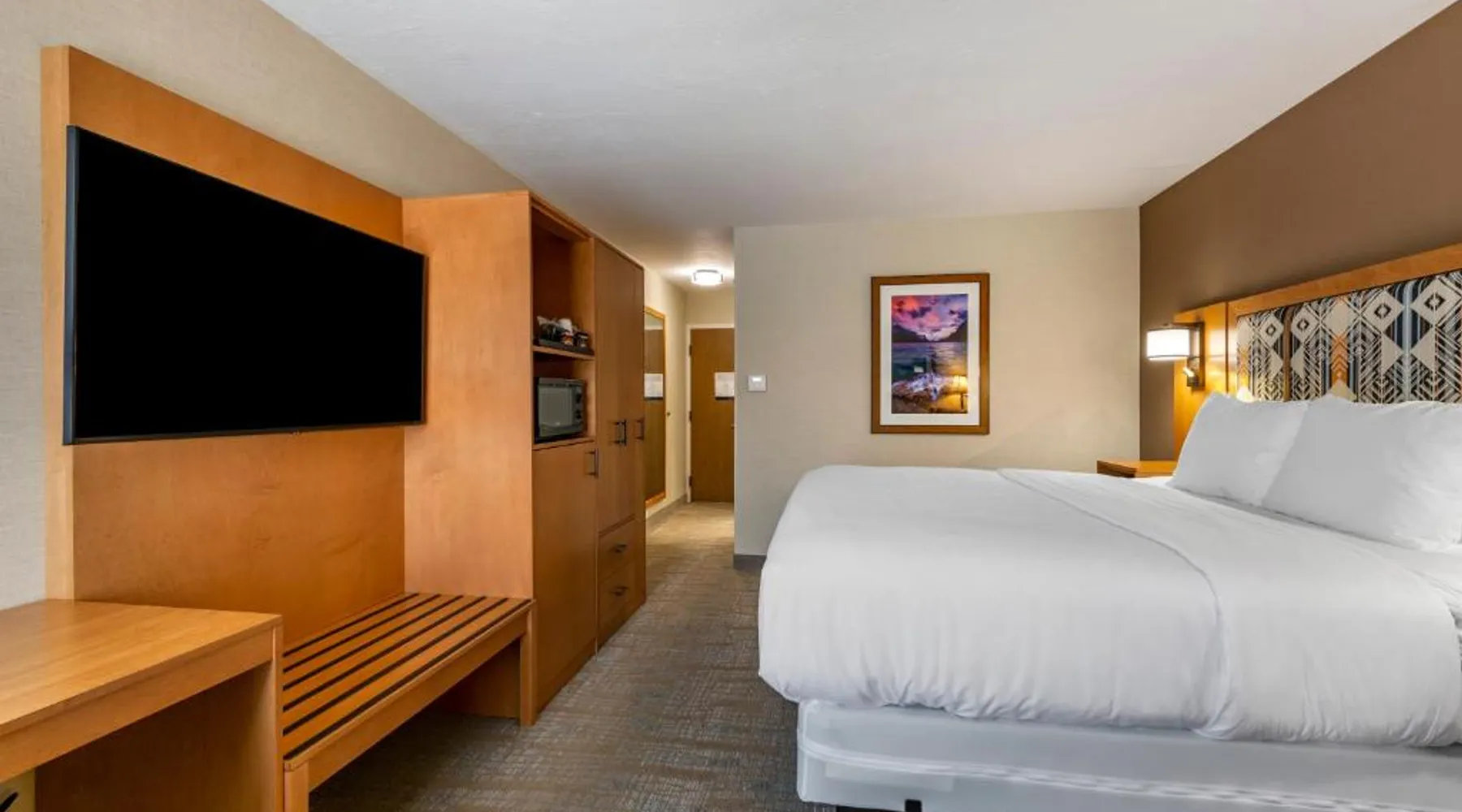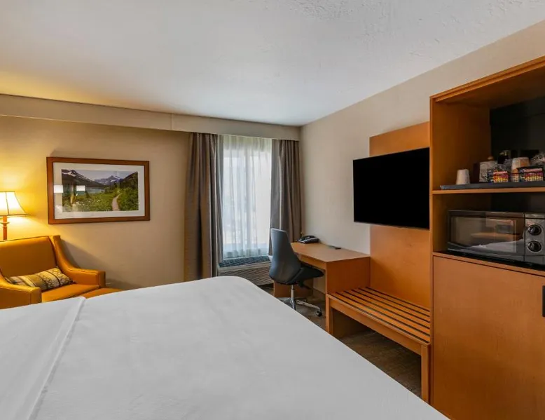 Comfortable Accommodations: Comfort Inn Missoula North Shopping District in Missoula offers adults-only rooms with free WiFi, air-conditioning, and private bathrooms. Each room includes a tea and coffee maker, refrigerator, microwave, and hairdryer. Leisure Facilities: Guests can enjoy a spa and wellness center, fitness center, indoor swimming pool, and hot tub. Additional amenities include a lounge, elevator, 24-hour front desk, daily housekeeping, business area, coffee shop, laundry service, bicycle parking, express check-in and check-out, and luggage storage. Convenient Location: Located 3.1 mi from Missoula International Airport and 5.6 mi from the University of Montana, the inn provides easy access to local attractions. Skiing activities are available nearby. Guest Satisfaction: Highly rated by guests for its continental breakfast, room comfort, and cleanliness. The double room offers a tea and coffee maker. The unit offers 1 bed.