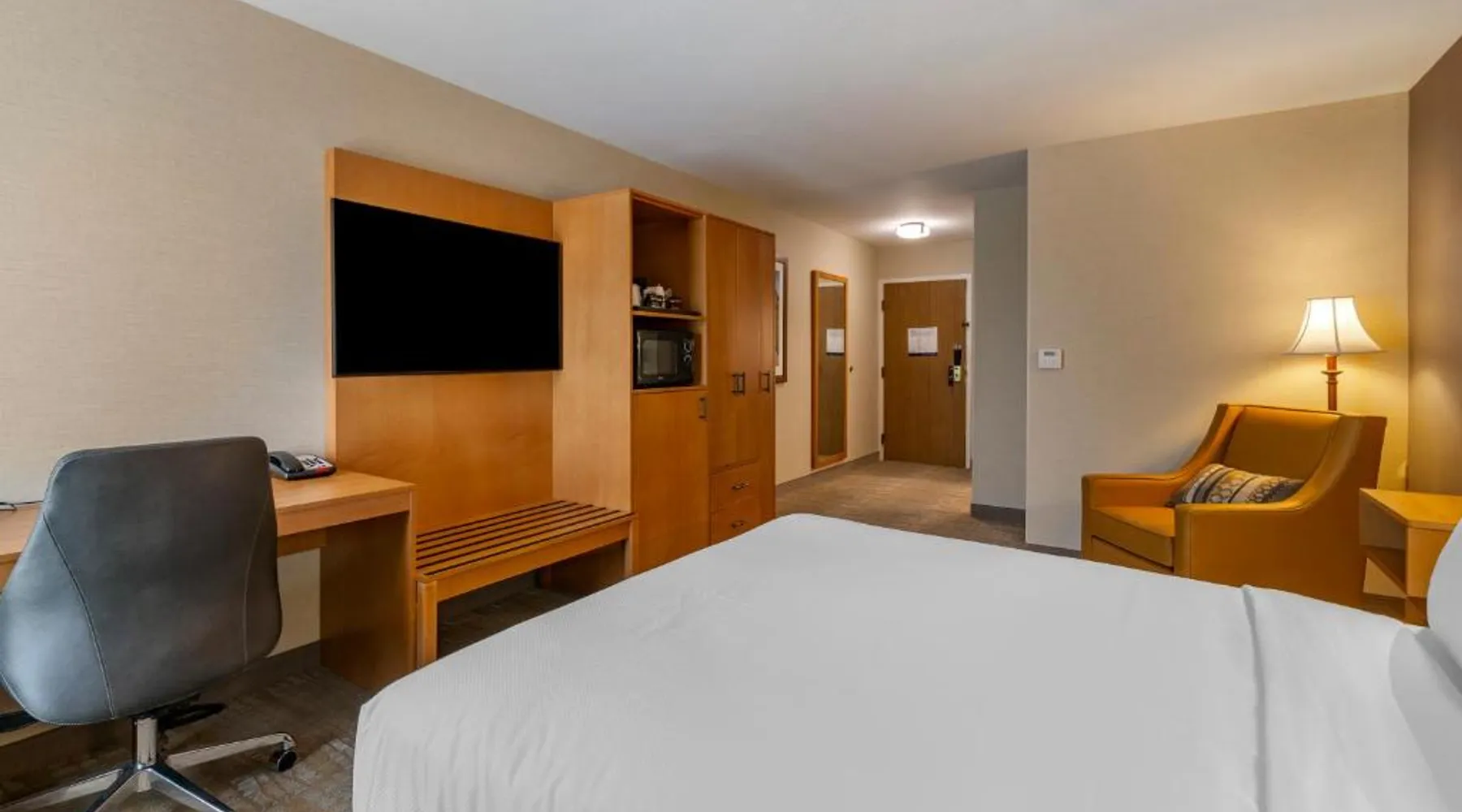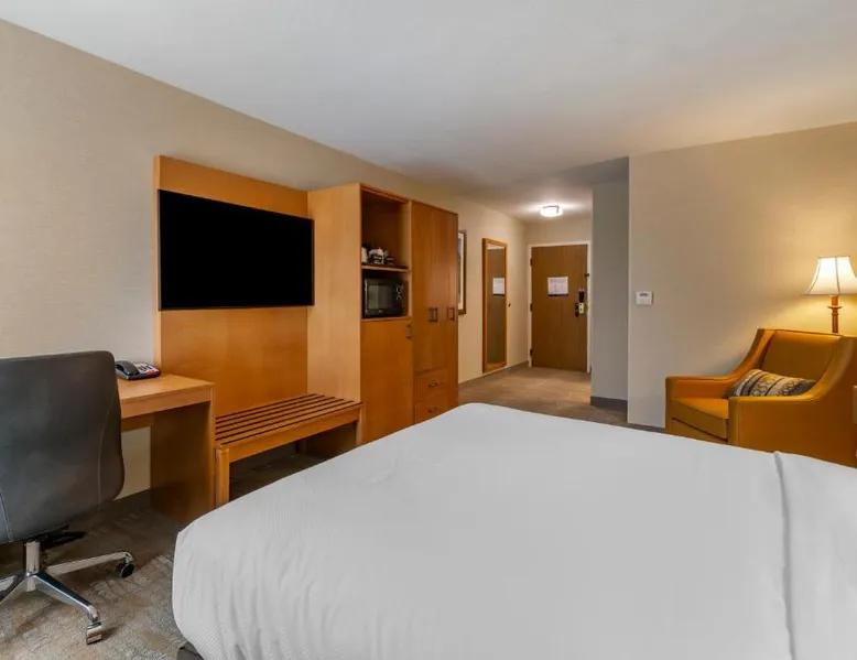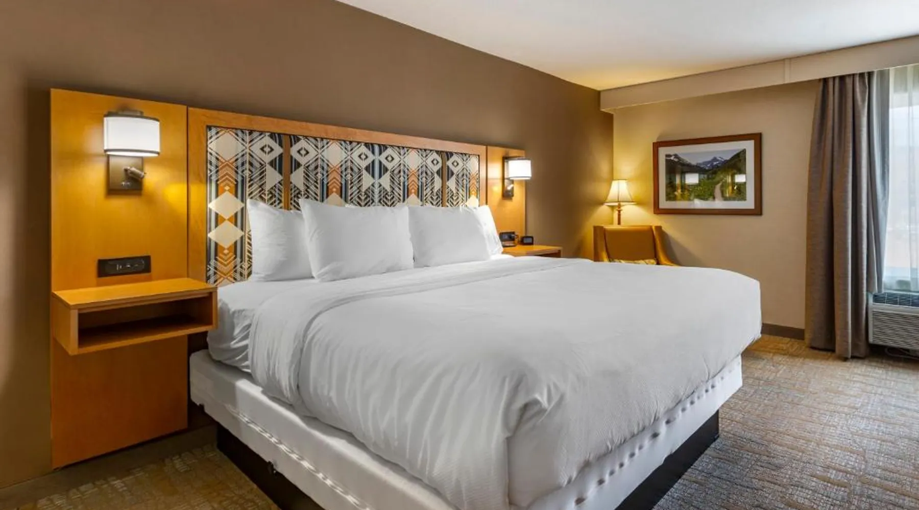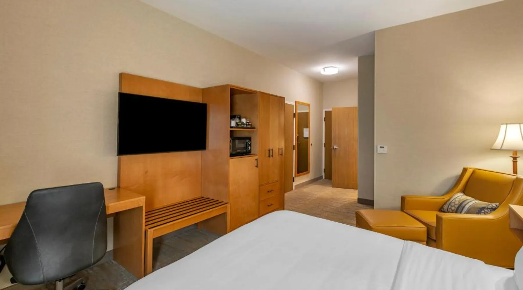 Comfortable Accommodations: Comfort Inn Missoula North Shopping District in Missoula offers adults-only rooms with free WiFi, air-conditioning, and private bathrooms. Each room includes a tea and coffee maker, refrigerator, microwave, and hairdryer. Leisure Facilities: Guests can enjoy a spa and wellness center, fitness center, indoor swimming pool, and hot tub. Additional amenities include a lounge, elevator, 24-hour front desk, daily housekeeping, business area, coffee shop, laundry service, bicycle parking, express check-in and check-out, and luggage storage. Convenient Location: Located 3.1 mi from Missoula International Airport and 5.6 mi from the University of Montana, the inn provides easy access to local attractions. Skiing activities are available nearby. Guest Satisfaction: Highly rated by guests for its continental breakfast, room comfort, and cleanliness. The double room offers a tea and coffee maker. The unit offers 1 bed.