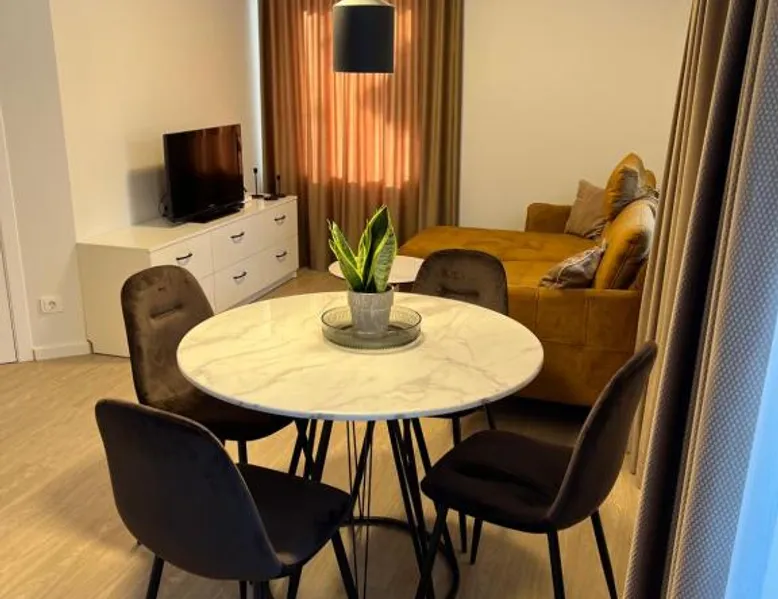 Comfortable Living: Bell Tower Apartment in Plungė offers a one-bedroom apartment with a living room. The property features family rooms, ensuring a pleasant stay for all guests. Modern Amenities: Guests enjoy free WiFi, a washing machine, and a fully equipped kitchen with a dishwasher and dishwasher. Additional amenities include a TV, sofa bed, and parquet floors. Convenient Location: Located 37 mi from Palanga International Airport, the apartment is highly rated for its room cleanliness and convenient location. Reception staff speak English, Lithuanian, and Russian. This apartment includes 1 living room, 1 separate bedroom and 1 bathroom with a shower and free toiletries. In the well-fitted kitchen, guests will find a stovetop, a refrigerator, a dishwasher and kitchenware. The apartment has parquet floors, a seating area with a flat-screen TV with cable channels, a washing machine, a tea and coffee maker, as well as a dining area. The unit has 2 beds.