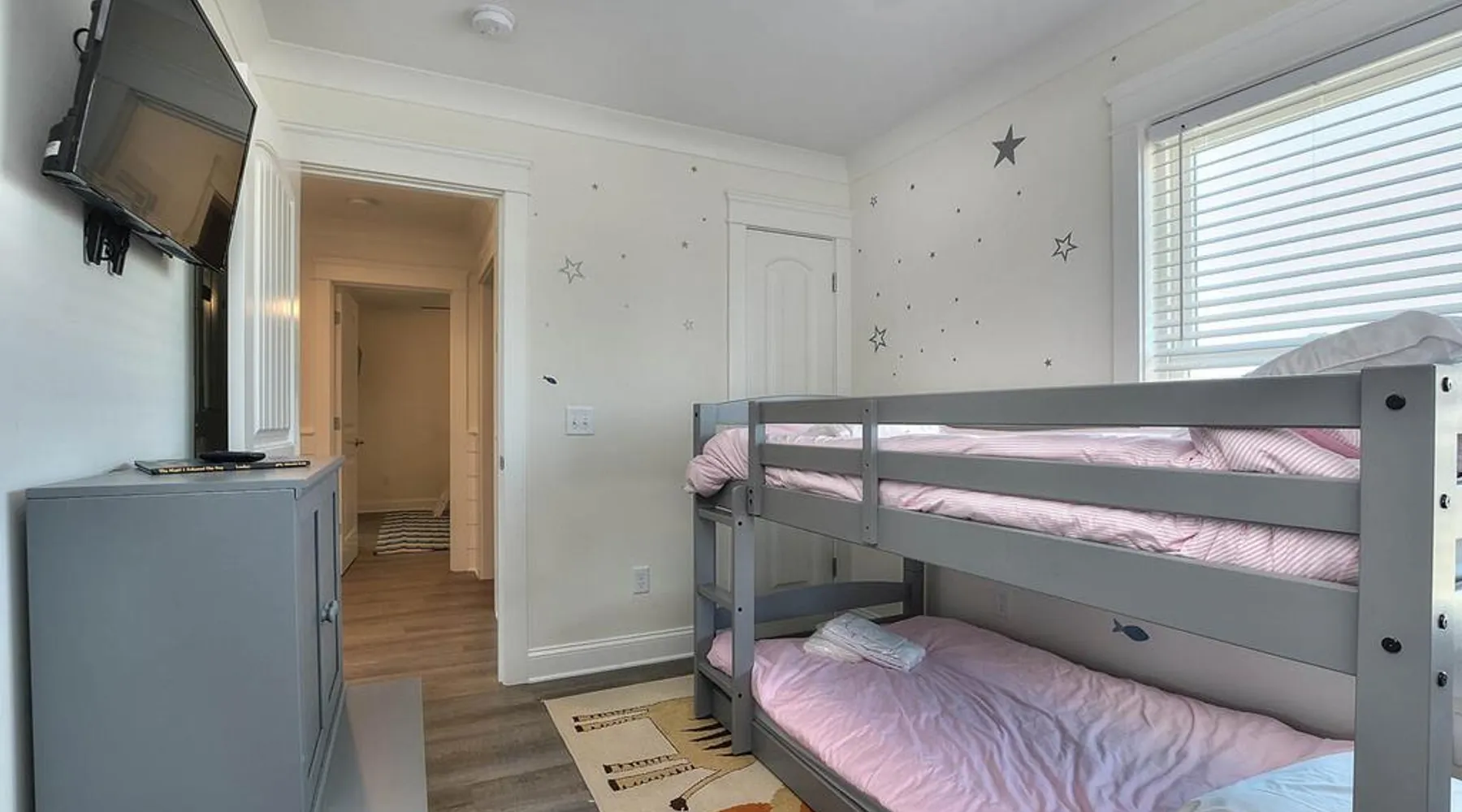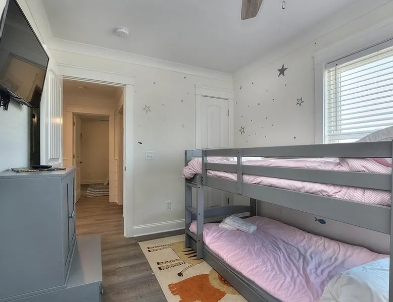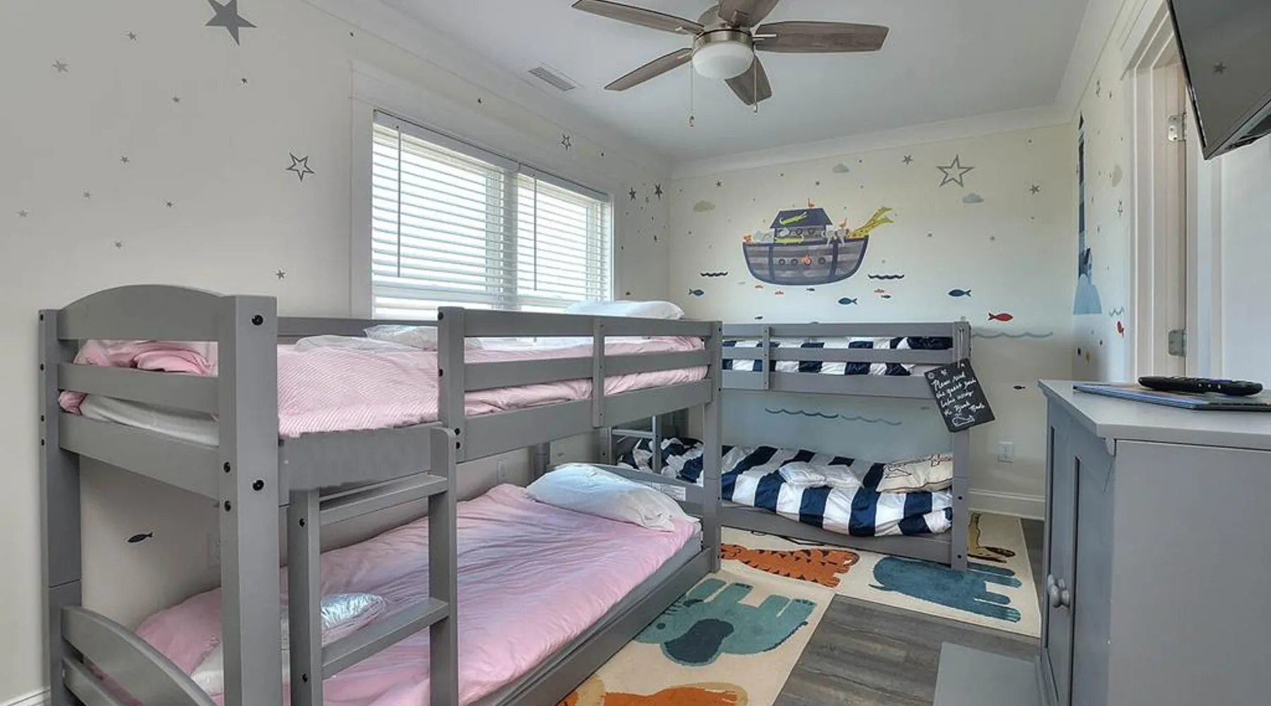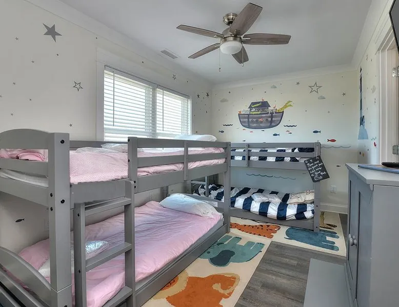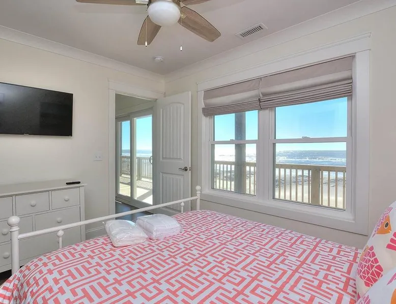 Brand New, Beautifully Decorated, 5 Bedroom/3.5 Bath Oceanfront Home-Sleeps13 The space Beach Plzzz - 5 Bedroom 3.5 Bath House, Sleeps 13 Unbelievable custom, brand new, oceanfront 5 bedroom, 3.5 bath home. This spacious new construction home is full of extras. Luxury Vinyl Plank throughout and tile floors in all baths. This beautiful home also has ship-lap accents throughout. Step into the kitchen with a large island bar area. Anyone lucky enough to work in this space will admire the views as well as the open concept. The kitchen offers granite countertops and a large eat-in island that you can multitask as a puzzle or game center. Extras include a panini press, ninja food grill, air fryer, and a large roaster. The higher end moldings and ship-lap accents throughout are a nice touch and give a beach feel. Great attention was paid to all the detail put into the property from the built-in bunk beds to the Pottery Barn décor. This home has two covered porches on the oceanfront so you can enjoy the unobstructed views down the beach and the breathtaking ocean blues. When you come off the beach, leave the sand in the outside hot/cold shower. This home is close to visit local restaurants, shopping, parks, & entertainment. Make this beautiful home your choice beach destination and you will be glad you did! Standard Features: - Bed linens and towel sets (shower towel, hand towel and washcloth) provided per the capacity of the house - Fully equipped kitchen - Free WIFI - Drip Coffee Maker - Washer/Dryer - Iron/ironing board - Departure housekeeping - Non-smoking Notable & Unique Features: - Brand new home built in 2020 - New to the rental market - Event home (additional fee for events) - Oceanfront with beautiful ocean sunrises and sunsets - Located in the heart of Oak Island convenient to great shops, dining, golf, sky diving and other fun activities - Short 10-15 minute drive to historic Southport - Beds: 1K, 2Q,1 BB T/D, 2 BB T/T - Private master suite - Baby crib and high chair provided by caring owner - Entertainment: Extended cable. Flat screen Smart TVs. Amazon Prime. DVD player. Games and puzzles. TVs in all bedrooms. - Granite countertops - Stainless steel appliances - Extra Kitchen Appliances: Panini Press. Ninja Foodi Grill. Air Fryer. Large roaster. - Large island breakfast bar in kitchen - Luxury Vinyl Plank flooring throughout - Tile floors in all bathrooms - Open concept floor plan - High-end molding and shiplap accents - Large capacity washer/dryer - Two covered oceanfront porches - Hot/cold outside shower - Charcoal Grill - Covered parking - No pets allowed **Exterior video monitoring on-premises**