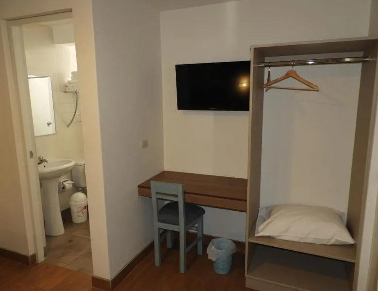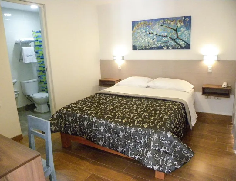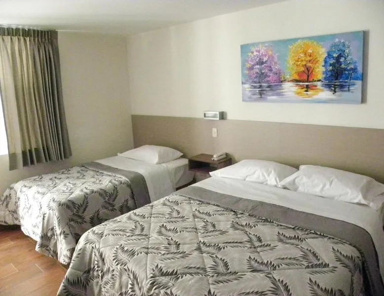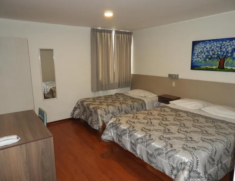 Comfortable Accommodations: Nice Inn Tacna in Tacna offers family rooms with private bathrooms, air-conditioning, and city views. Each room includes a work desk, TV, and free toiletries. Essential Facilities: Guests enjoy free WiFi, a lounge, outdoor seating area, and a 24-hour front desk. Additional services include a paid airport shuttle, tour desk, and luggage storage. Convenient Location: Located 3.1 mi from Coronel FAP Carlos Ciriani Santa Rosa International Airport, the hotel is a 15-minute walk from Jorge Basadre Stadium. Nearby attractions include Paso Chacalluta at 23 mi. Guest Satisfaction: Highly rated for its attentive staff, convenient location, and room cleanliness. This air-conditioned family room includes a flat-screen TV with cable channels, a private bathroom as well as a patio. The unit offers 3 beds.