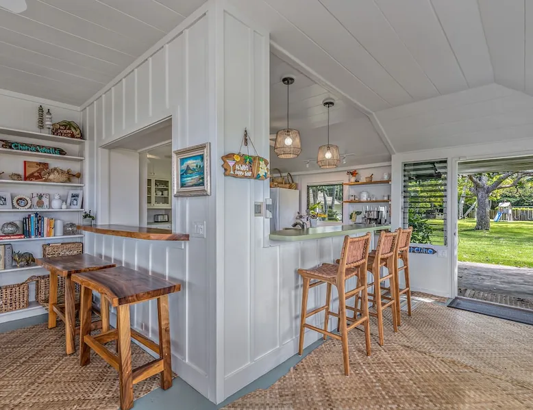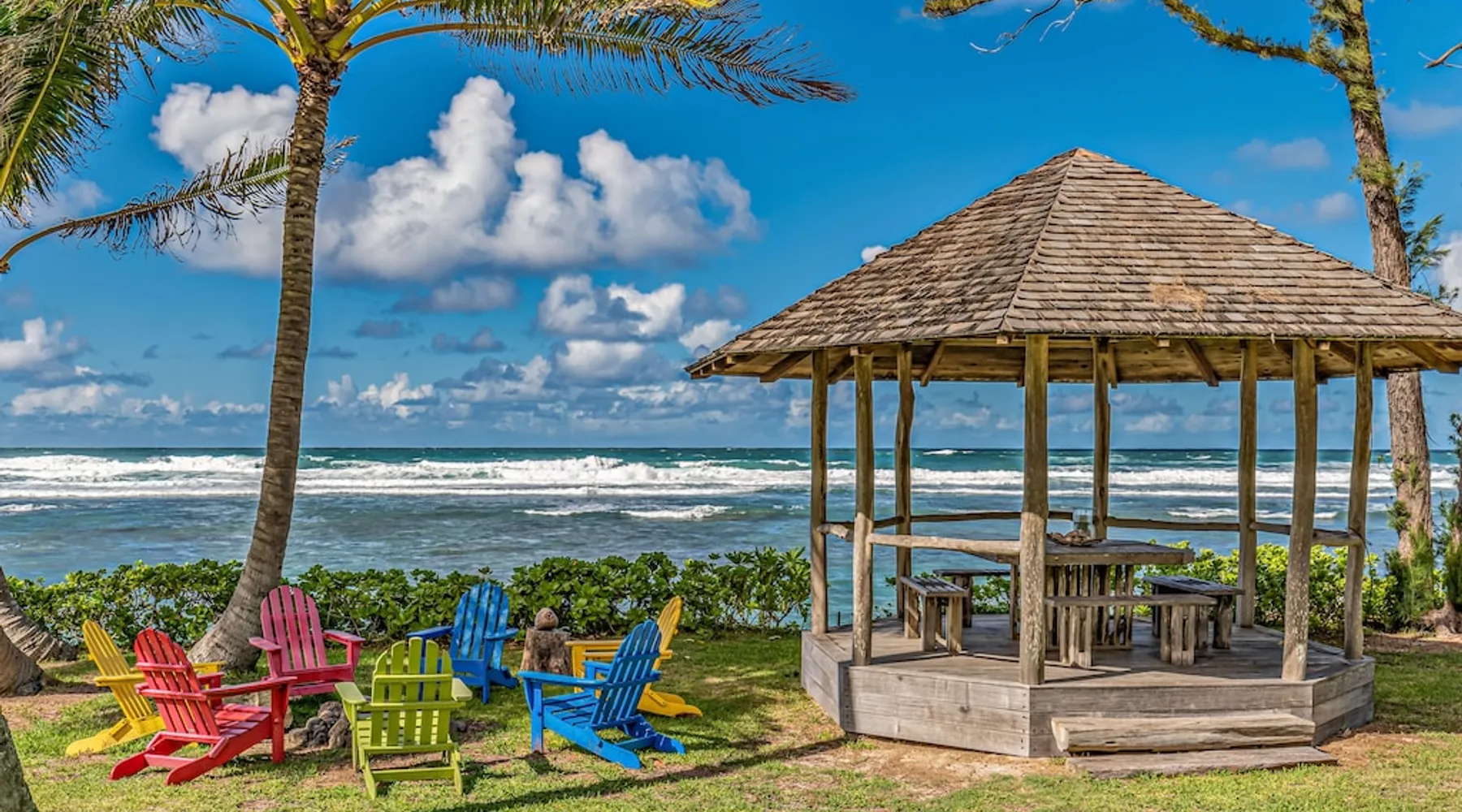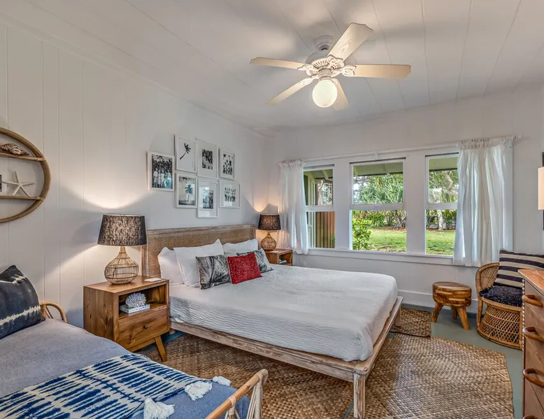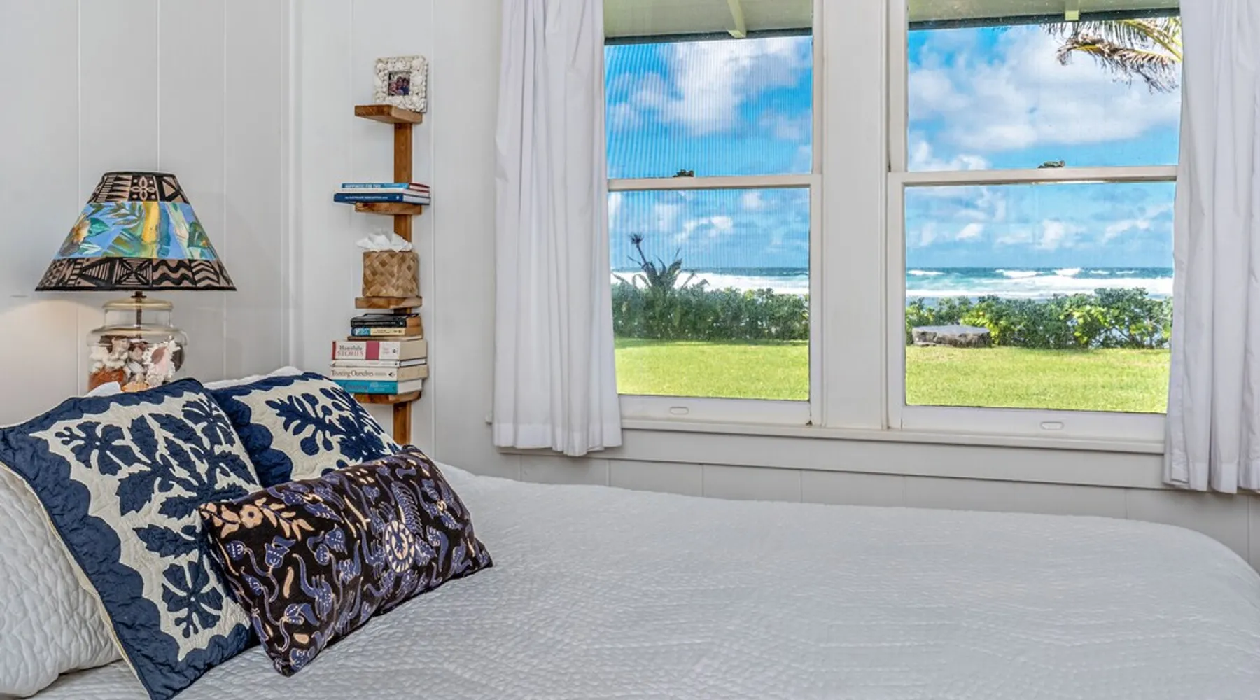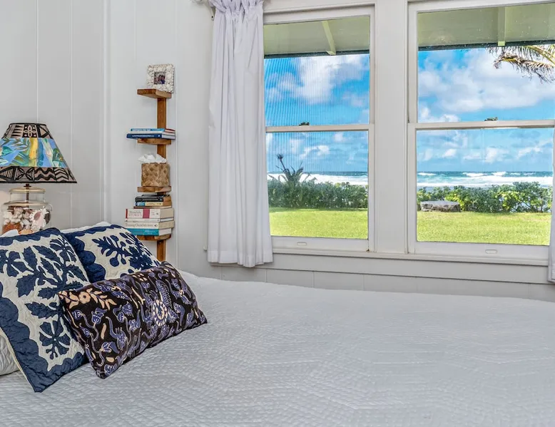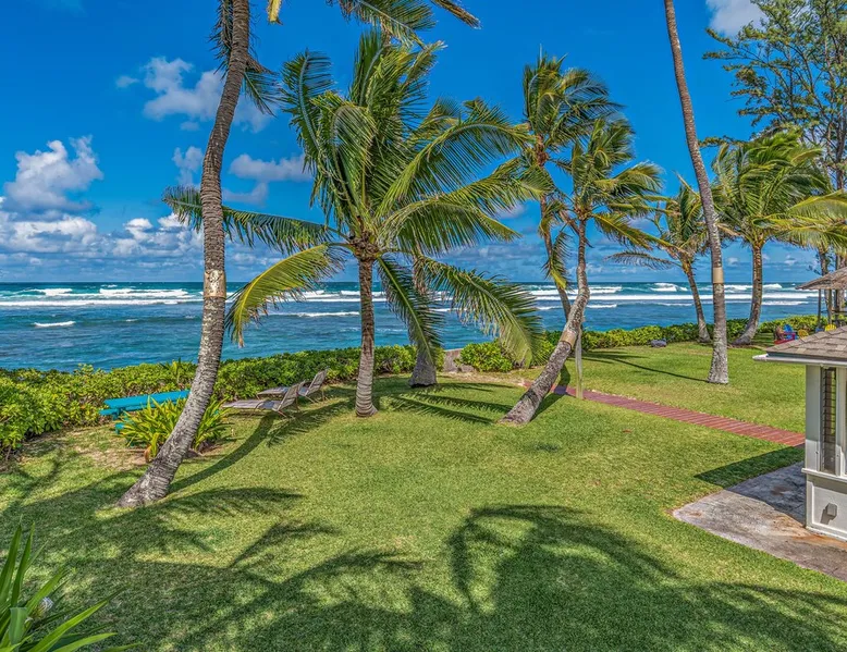 This gorgeous, historically registered, North Shore "country" home was built in 1937 and sits under a magnificent monkey pod tree surrounded by coconut trees. Perfectly located on a secluded calm beachfront, the 1.25 acres are fully fenced and gated on a quiet lane in Waialua (7 minutes from Haleiwa). This special property serves as the ideal family gathering place, complete with kid's play gym and tree swings, multiple indoor and outdoor dining spaces, play all day at the park and the beach without loading up the car! This is the place to step back in time and experience the calm of old Hawaii! The property has a spacious beachfront home with 3 bedrooms and 3 baths. There is also a separate cottage housing a studio bedroom and bunkroom, each with its own bath. The Main House has a large kitchen with views of ocean and backyard. A large great room, TV and day beds provide lots of gathering space. The house has ocean views and 3 bedrooms, each with its own full bath. There is also a separate cottage housing a very large studio bedroom w/ two queen beds, and a custom designed bunkroom, each with its own bath. Bedroom Breakdown: MAIN HOUSE THE MASTER BEDROOM Fall asleep to the sound of the ocean waves on a king size bed. The master bedroom faces the ocean and includes an outdoor shower. BEDROOM 2 Bedroom 2 has a king (1) & twin/single (1) BEDROOM 3 Bedroom 3 has a king (1) & twin/single (1) THE COTTAGE The separate cottage is large and has a king, queen and a twin couch in the sitting area. The full bath has an additional open air outdoor shower- very island style. The furnishings are quality and on par with the main house. The laundry is located in this building. THE BUNKROOM The bunkroom (on the other side of the cottage) has 2 twins and 2 fulls, and its own bathroom. This space is perfect for the kids in a multi-generational family rental DINING SPACES There are five dining areas in this private, beach front home. Outside: gazebo overlooking ocean extra large picnic table trellis dining on round cement table Inside: round wicker table (seats 6) kitchen counter (7 bar stools) card table (seats 4) This is the perfect place for a multi-generational family retreat. Imagine family games, playing horseshoes and barbequing, running down to the waters edge to take a swim, and back up to lounge on the pristine beach. Cant beat the lifestyle this home has to offer! Things to Do: There is little traffic so walks, biking or jogging are ideal. Surf Silvas or the famous North Shore spots. Snorkel with turtles in front of the house. Dine or shop in Haleiwa. Para sail, deep sea fish or dive with sharks out of Haleiwa Harbor. Hike Kaena Point, wind surf, kayak, stand-up paddle up the Haleiwa River. Visit Waimea Bay and Waimea Falls Park. Golf at Turtle Bay, Royal Kunia or Koolina. Or just relax on the hammock. There is something for everyone at Makana at Mokuleia! TMK TA-005-907-2512-01 In compliance with the Ordinances of the City & County of Honolulu, the Property will be made available to you for your use and occupancy for a minimum period of thirty (30) days.