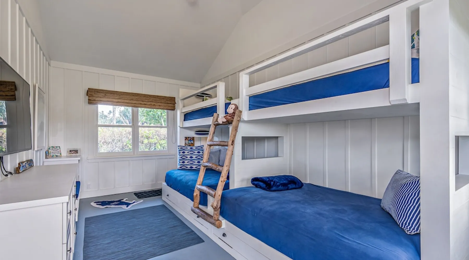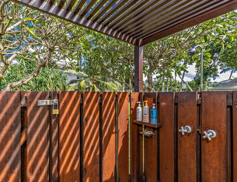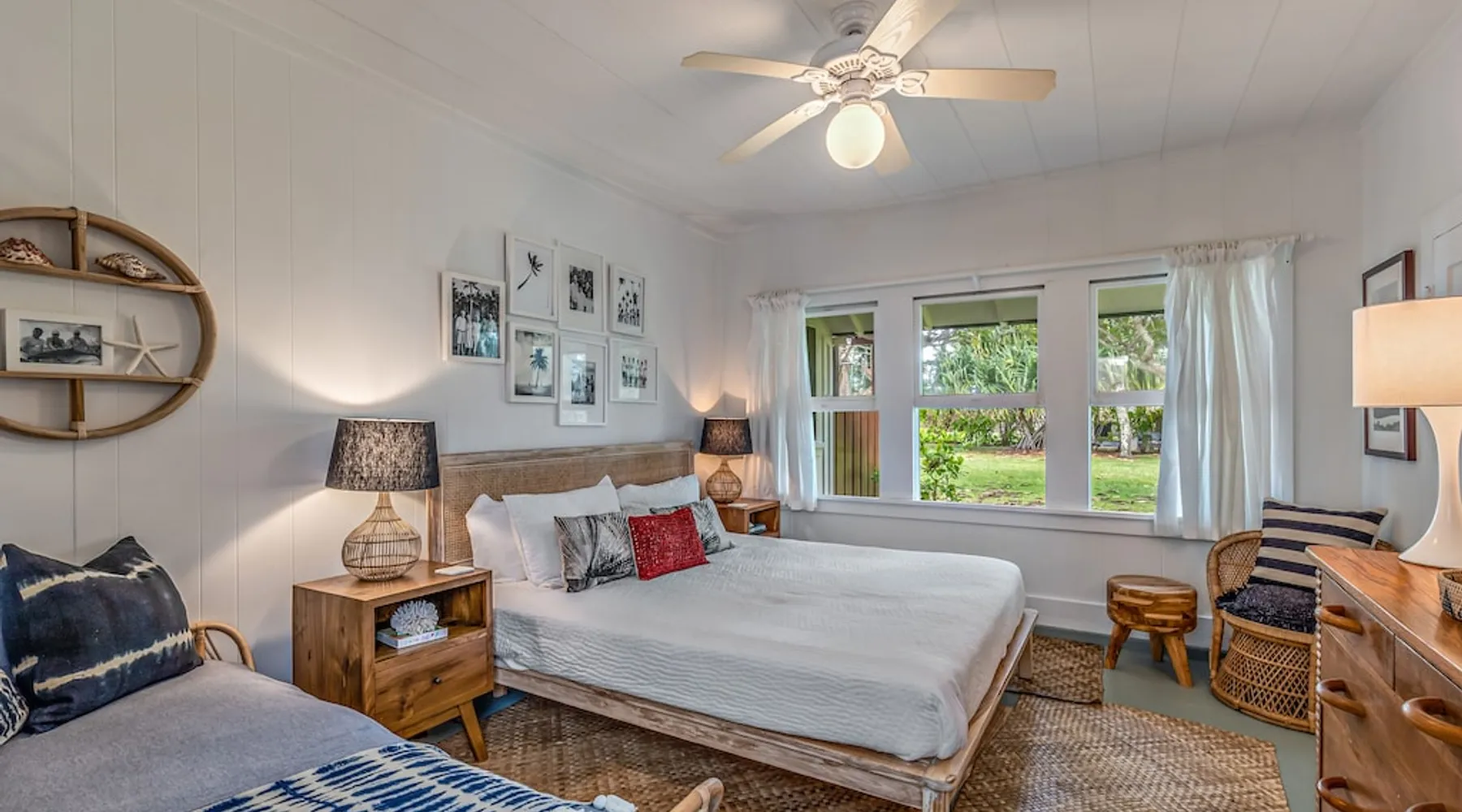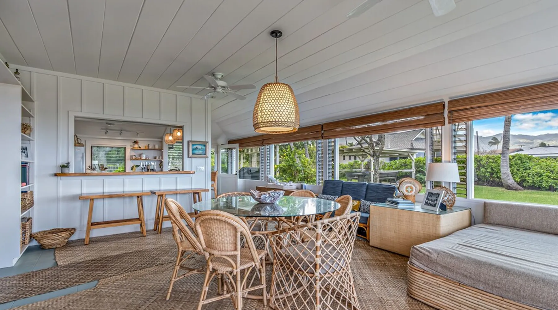 This gorgeous, historically registered, North Shore "country" home was built in 1937 and sits under a magnificent monkey pod tree surrounded by coconut trees. Perfectly located on a secluded calm beachfront, the 1.25 acres are fully fenced and gated on a quiet lane in Waialua (7 minutes from Haleiwa). This special property serves as the ideal family gathering place, complete with kid's play gym and tree swings, multiple indoor and outdoor dining spaces, play all day at the park and the beach without loading up the car! This is the place to step back in time and experience the calm of old Hawaii! The property has a spacious beachfront home with 3 bedrooms and 3 baths. There is also a separate cottage housing a studio bedroom and bunkroom, each with its own bath. The Main House has a large kitchen with views of ocean and backyard. A large great room, TV and day beds provide lots of gathering space. The house has ocean views and 3 bedrooms, each with its own full bath. There is also a separate cottage housing a very large studio bedroom w/ two queen beds, and a custom designed bunkroom, each with its own bath. Bedroom Breakdown: MAIN HOUSE THE MASTER BEDROOM Fall asleep to the sound of the ocean waves on a king size bed. The master bedroom faces the ocean and includes an outdoor shower. BEDROOM 2 Bedroom 2 has a king (1) & twin/single (1) BEDROOM 3 Bedroom 3 has a king (1) & twin/single (1) THE COTTAGE The separate cottage is large and has a king, queen and a twin couch in the sitting area. The full bath has an additional open air outdoor shower- very island style. The furnishings are quality and on par with the main house. The laundry is located in this building. THE BUNKROOM The bunkroom (on the other side of the cottage) has 2 twins and 2 fulls, and its own bathroom. This space is perfect for the kids in a multi-generational family rental DINING SPACES There are five dining areas in this private, beach front home. Outside: gazebo overlooking ocean extra large picnic table trellis dining on round cement table Inside: round wicker table (seats 6) kitchen counter (7 bar stools) card table (seats 4) This is the perfect place for a multi-generational family retreat. Imagine family games, playing horseshoes and barbequing, running down to the waters edge to take a swim, and back up to lounge on the pristine beach. Cant beat the lifestyle this home has to offer! Things to Do: There is little traffic so walks, biking or jogging are ideal. Surf Silvas or the famous North Shore spots. Snorkel with turtles in front of the house. Dine or shop in Haleiwa. Para sail, deep sea fish or dive with sharks out of Haleiwa Harbor. Hike Kaena Point, wind surf, kayak, stand-up paddle up the Haleiwa River. Visit Waimea Bay and Waimea Falls Park. Golf at Turtle Bay, Royal Kunia or Koolina. Or just relax on the hammock. There is something for everyone at Makana at Mokuleia! TMK TA-005-907-2512-01 In compliance with the Ordinances of the City & County of Honolulu, the Property will be made available to you for your use and occupancy for a minimum period of thirty (30) days.