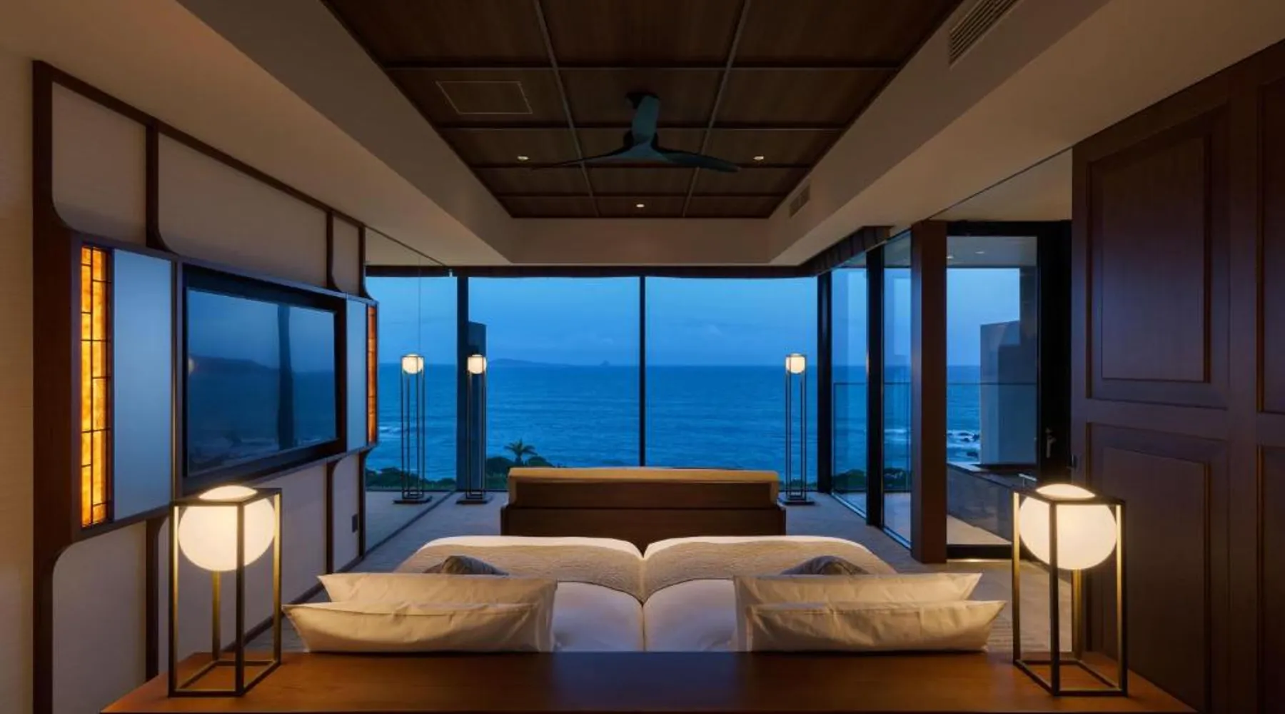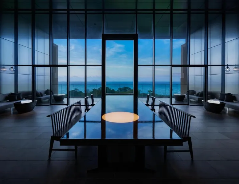 Elegant Accommodations: GOTO RETREAT by Onko Chishin in Goto offers a 5-star hotel experience with spa facilities, a sun terrace, open-air bath, restaurant, and bar. Guests enjoy sea views, air-conditioning, and private bathrooms equipped with modern amenities. Dining and Leisure: The family-friendly restaurant serves Japanese and local cuisines with vegetarian options. Dinner is available in a traditional, modern, or romantic ambiance. Additional facilities include a lounge, beauty services, and free on-site private parking. Prime Location: Located 1.9 mi from Fukue Airport, the hotel is near attractions such as Fukue Catholic Church (5.6 mi) and Gyogasaki Park (13 mi). Guests appreciate the scenic views, attentive staff, and comfortable rooms. This twin room features a hot tub and a private open-air bath. The spacious twin room offers air conditioning, soundproof walls, a terrace with sea views as well as a private bathroom featuring a bath. The unit offers 3 beds.