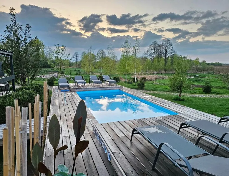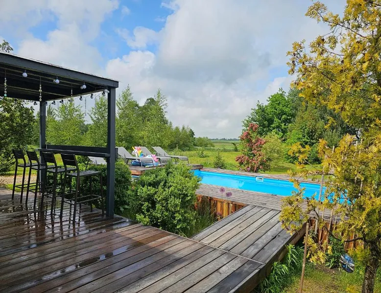 Elegant Holiday Home in Pilviškiai: Vaitų Riešutynė offers a serene retreat in Pilviškiai, Lithuania. Guests enjoy a swimming pool with stunning views, a lush garden, and a spacious terrace. Comfortable Living Spaces: The holiday home features one bedroom and a bathroom, equipped with air-conditioning, a kitchenette, and a sauna. Additional amenities include a hot tub, patio, and outdoor dining area. Convenient Facilities: Free on-site private parking is available. The property includes a swimming pool, spa bath, and a plunge pool. Guests can relax in the garden or enjoy lake and river views from the terrace. Highly Rated by Guests: Vaitų Riešutynė is highly rated for its attentive host, the quietness of the area, and the comfort of the bathrooms. Kaunas Airport is 54 mi away, providing easy access for travelers. This luxurious holiday home features a hot tub, a spa bath and a sauna. Boasting a private entrance, this air-conditioned holiday home includes a kitchen, 1 bedroom and 1 bathroom with a shower and a hairdryer. Guests will find a stovetop, a refrigerator, kitchenware and a microwave in the well-equipped kitchen. The holiday home also features a barbecue. Featuring a terrace with lake views, this holiday home also offers a tea and coffee maker and a flat-screen TV. The unit has 2 beds.