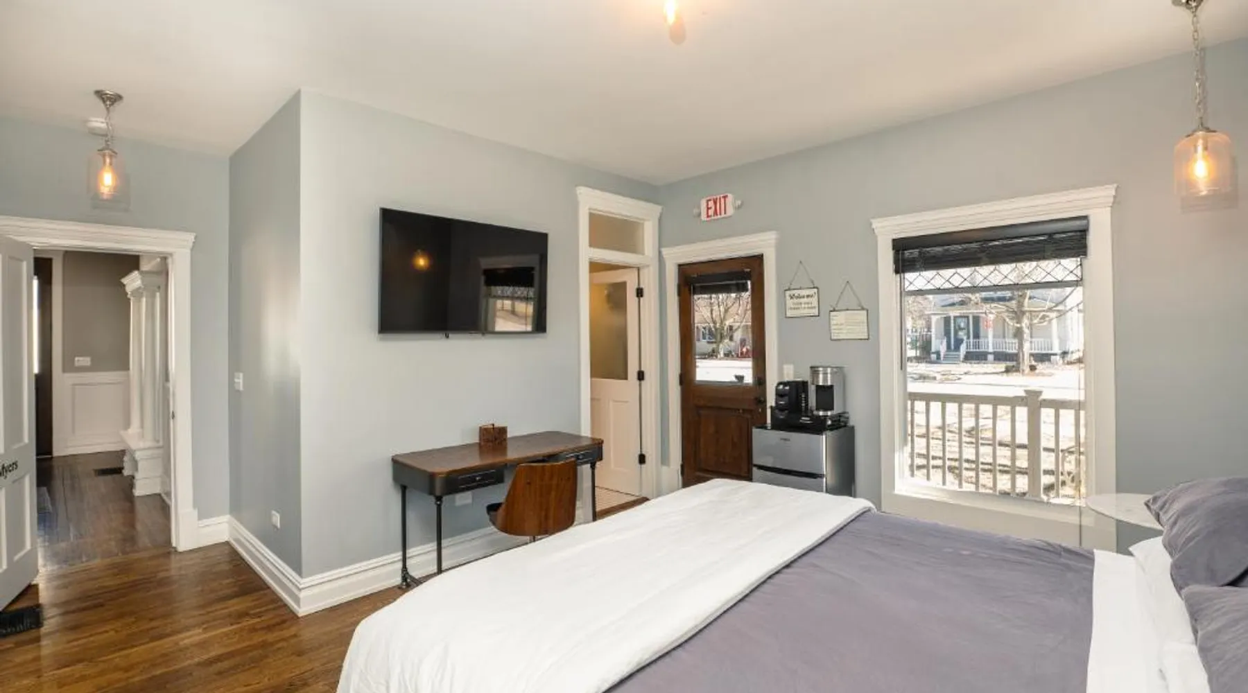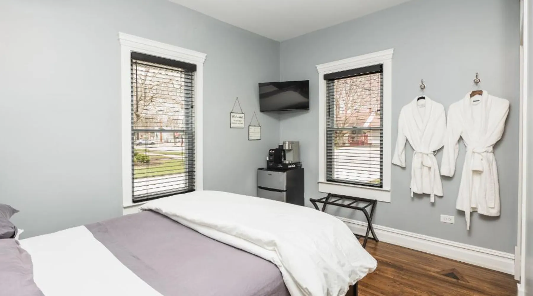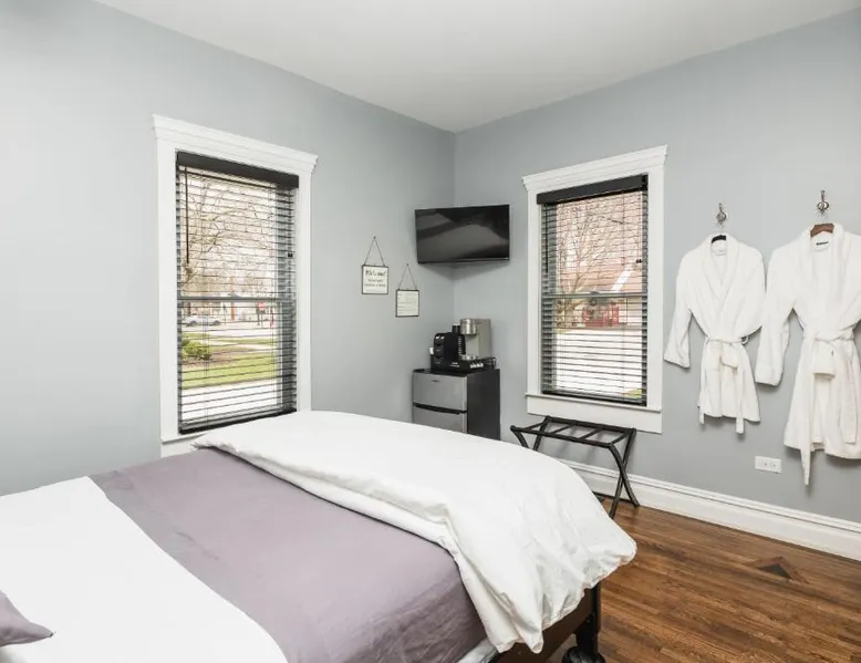 Historic Charm: The Plainfield Inn in Plainfield offers a unique stay within a historic building. Guests enjoy a beautiful garden and free WiFi throughout the property. Comfortable Accommodations: Rooms feature private bathrooms with walk-in showers, air-conditioning, and modern amenities such as coffee machines and flat-screen TVs. Additional comforts include bathrobes, hypoallergenic bedding, and free toiletries. Convenient Location: Located 29 mi from Midway International Airport, the inn is near attractions like Joliet Area Historical Museum (8.7 mi) and Brookfield Zoo (28 mi). Free on-site private parking is available. Guest Satisfaction: Highly rated for room cleanliness, convenient location, and suitability for city trips. Boasting a private entrance, this air-conditioned suite features 1 bedroom and 1 bathroom with a walk-in shower and a hairdryer. The suite features a flat-screen TV with cable channels, a coffee machine, a seating area, a wardrobe as well as a quiet street view. The unit has 1 bed.