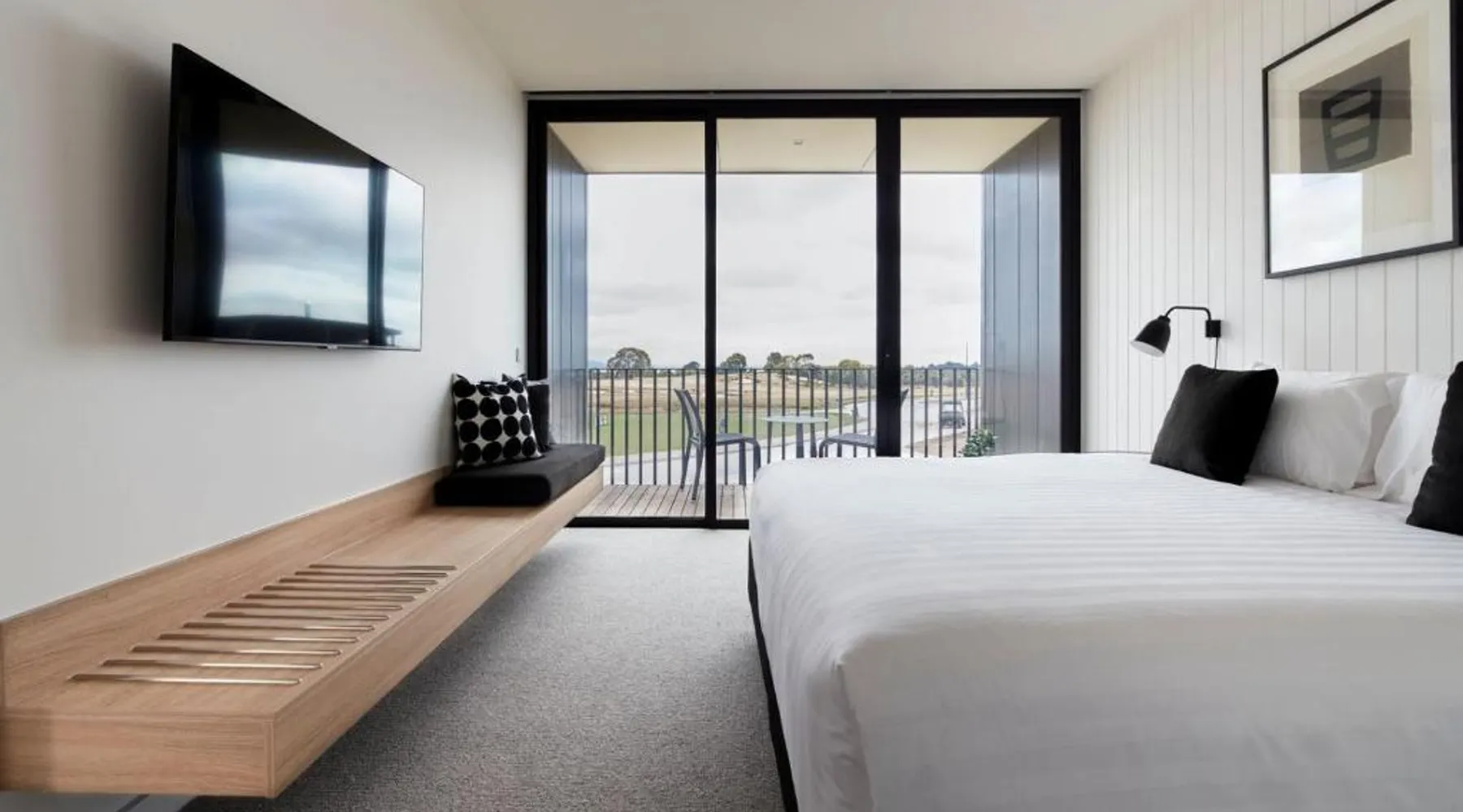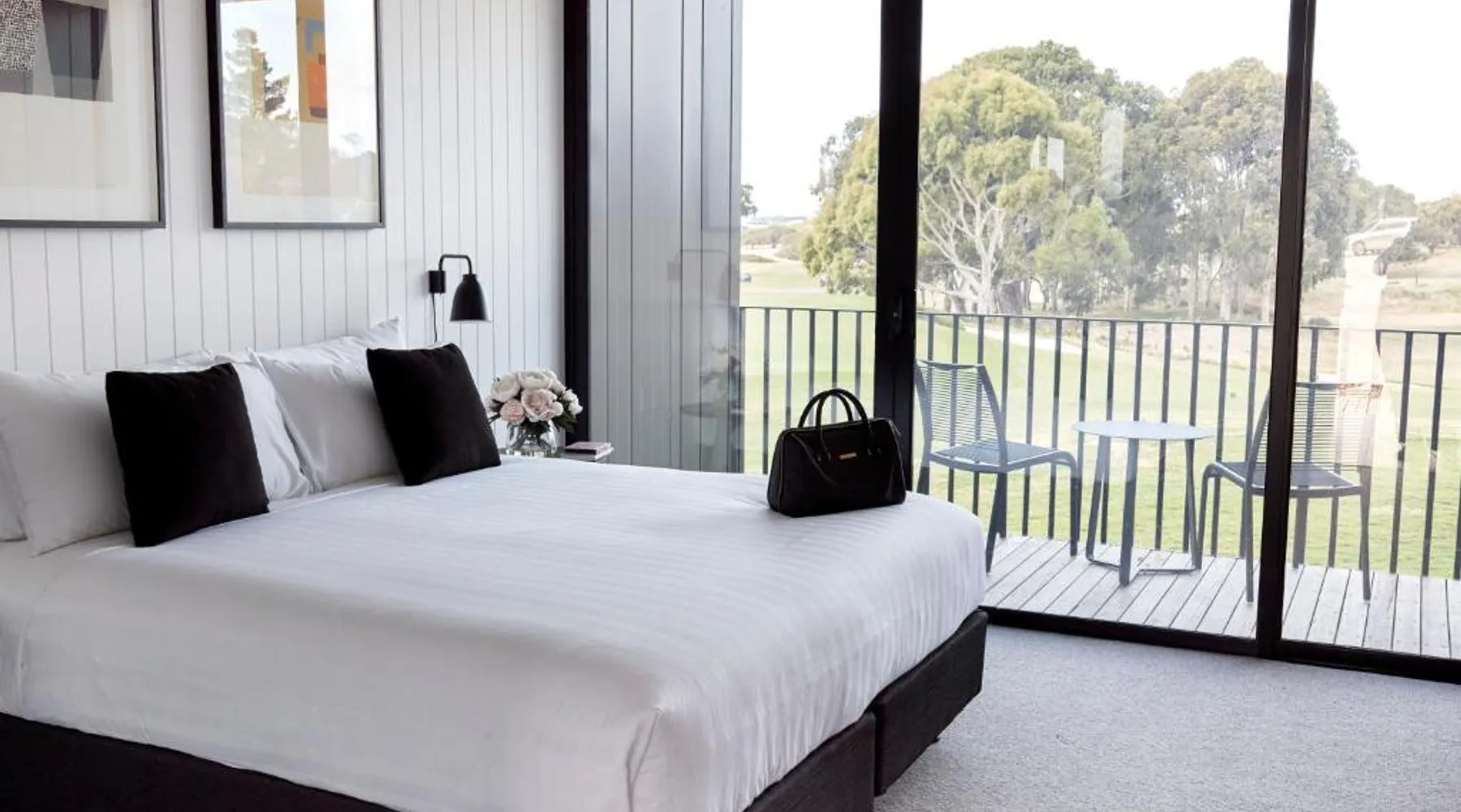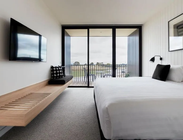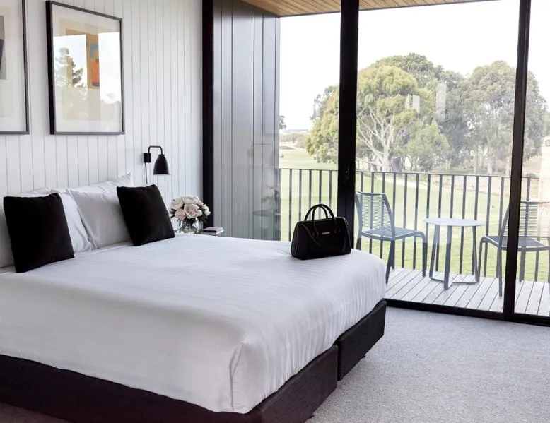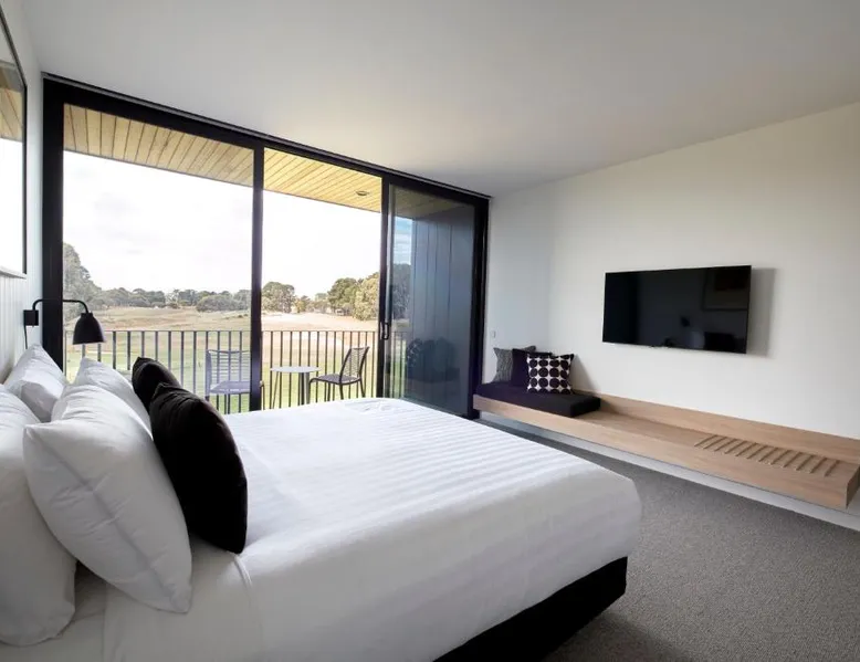 Comfortable Accommodations: Accommodations @ Curlewis in Curlewis offers a 4-star hotel experience with a sun terrace, garden, restaurant, bar, and free WiFi. Guests enjoy private check-in and check-out, a lounge, and full-day security. Dining Options: The French restaurant serves lunch, dinner, and cocktails with vegetarian, vegan, gluten-free, and dairy-free options. An à la carte breakfast is available, complemented by a coffee shop and outdoor seating area. Convenient Location: Located 25 mi from Avalon Airport, the hotel is near attractions such as Adventure Park Geelong (3.7 mi) and Geelong Botanic Gardens (9.9 mi). Free on-site private parking and nearby train stations enhance the stay. Guest Satisfaction: Highly rated for its attentive staff, scenic views, and immaculate rooms, Accommodations @ Curlewis ensures a comfortable and memorable experience. This triple room features a balcony, bathrobe, tea/coffee maker and unobstructed views across the golf course. Rooms can be located on the ground or first floor. First-floor rooms are only accessible by stairs.