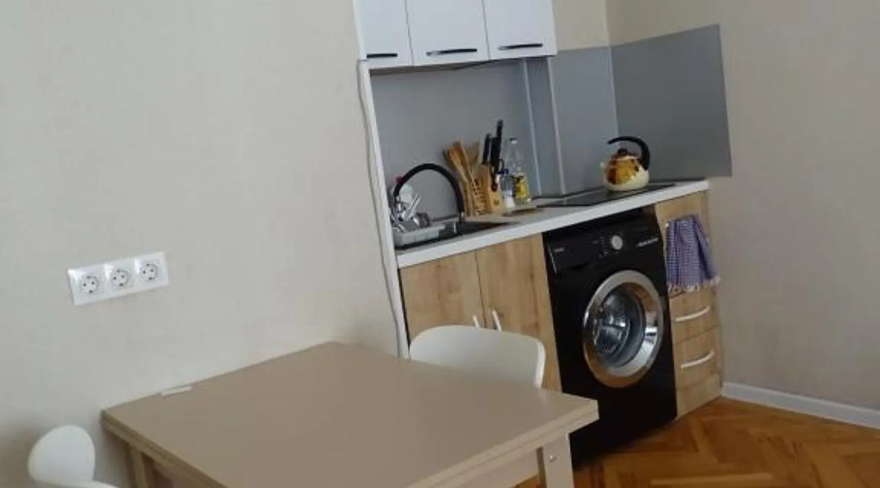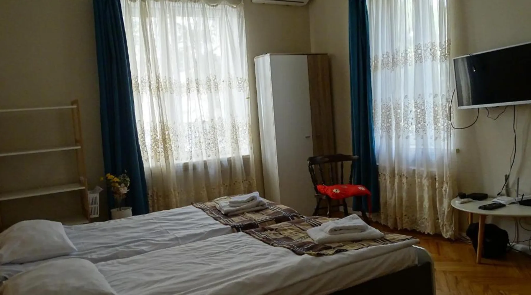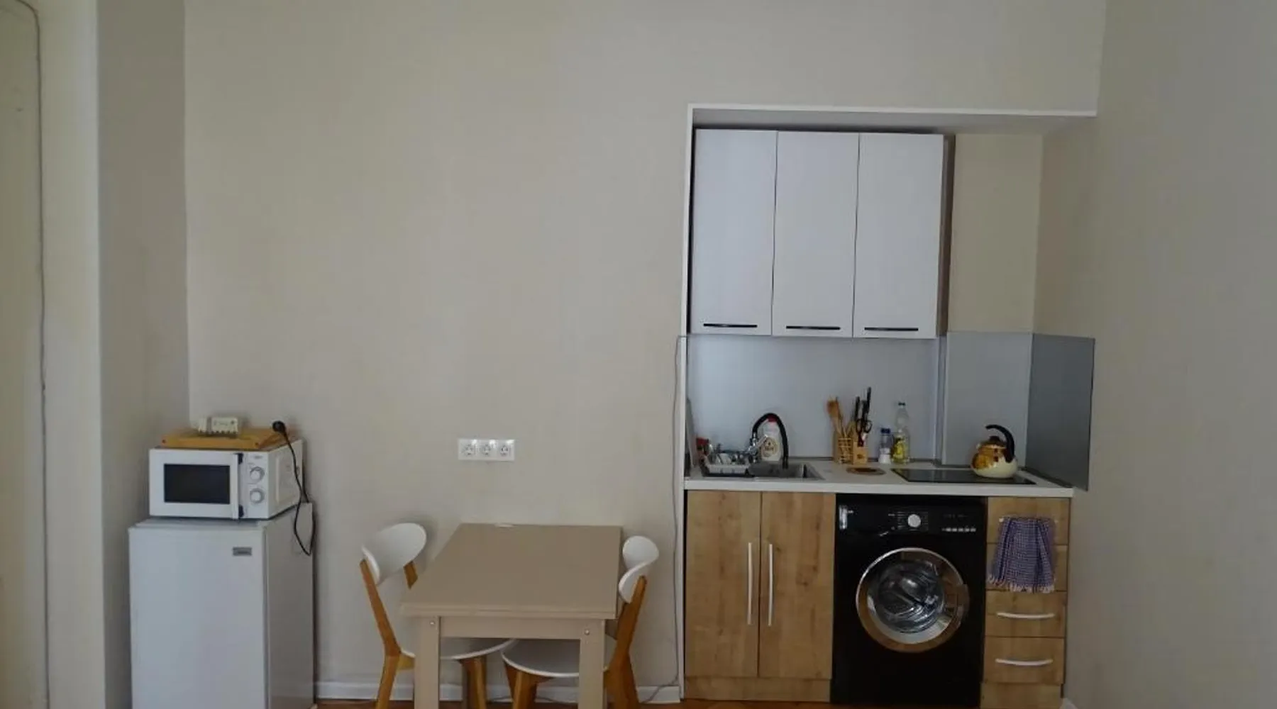 Comfortable Living: Vake Super Quiet Comfy apartment in Tbilisi offers a spacious one-bedroom apartment with a private entrance. The property features family rooms, air-conditioning, and parquet floors. Modern Amenities: Guests enjoy free WiFi, a terrace, kitchenette, washing machine, and a fully equipped kitchen with a refrigerator, stovetop, microwave, and kitchenware. Additional amenities include a dining area, work desk, and free toiletries. Convenient Location: Located 12 mi from Tbilisi International Airport, the apartment is a short walk from Tbilisi Concert Hall (16 minutes) and Heroes Square (0.6 mi). Nearby attractions include Tbilisi Circus (1.2 mi) and Tbilisi Opera and Ballet Theater (1.9 mi). Guest Satisfaction: Highly rated for room cleanliness, the apartment ensures a comfortable and hygienic stay. Meals can be prepared in the kitchen, which comes with a stovetop, a refrigerator, kitchenware and a microwave. This apartment is air-conditioned and features a seating area with a flat-screen TV, a washing machine, a private entrance, a tea and coffee maker, as well as a dining area. The unit offers 2 beds.
