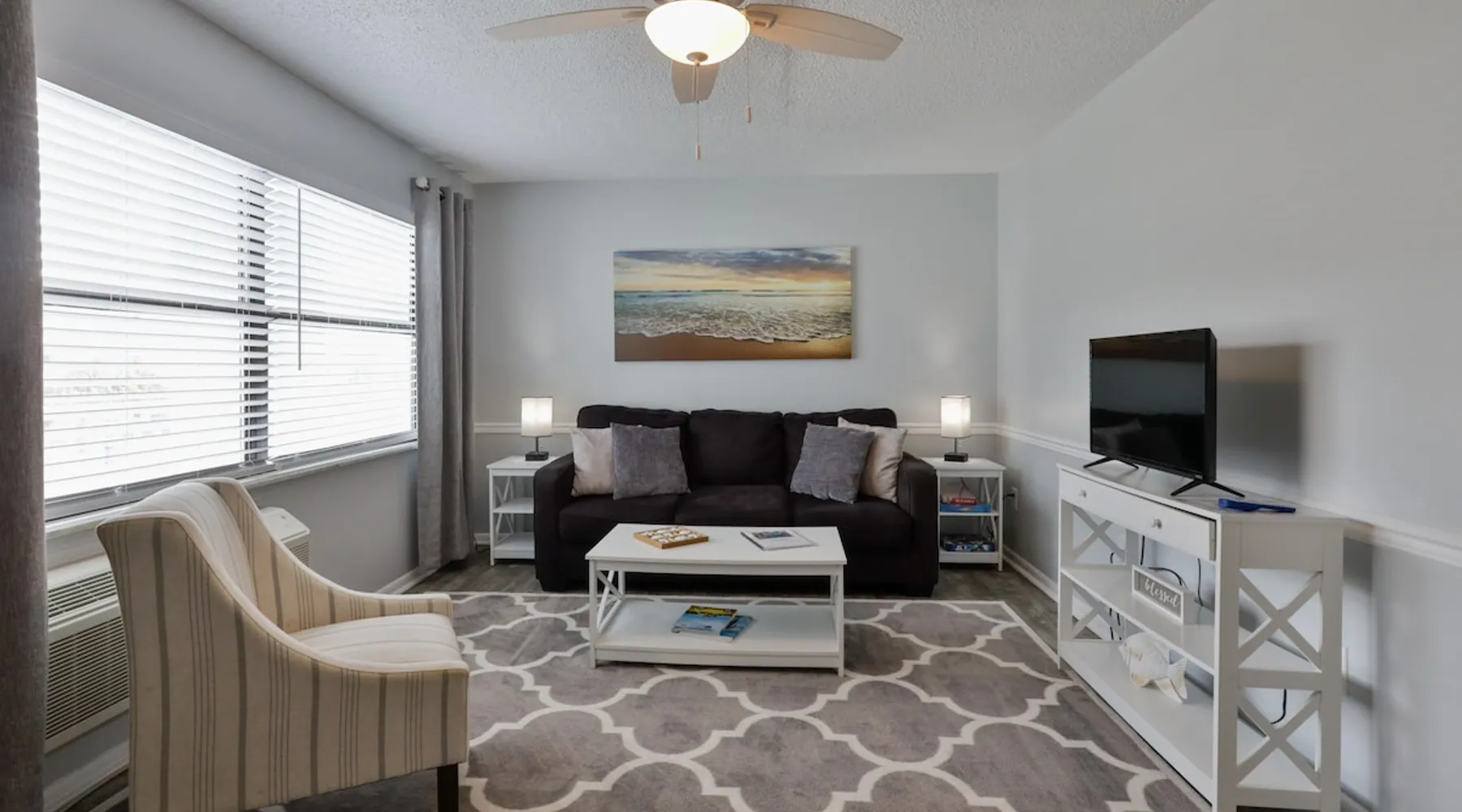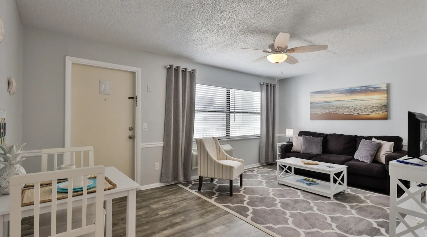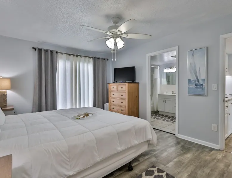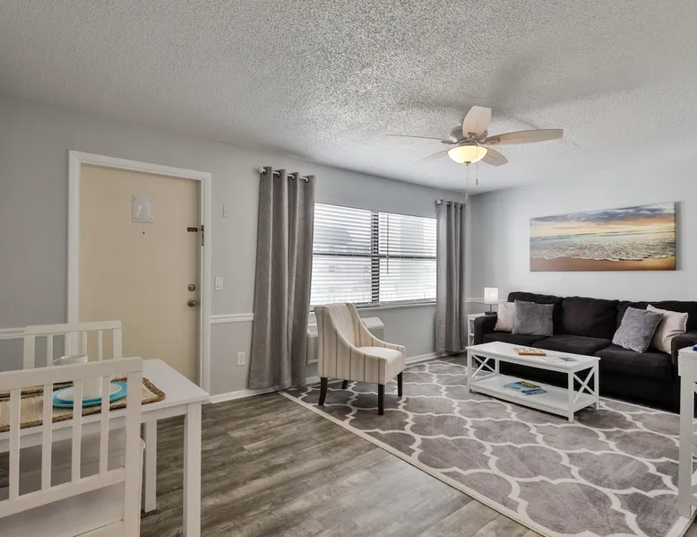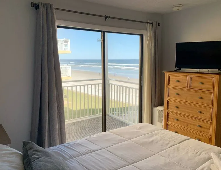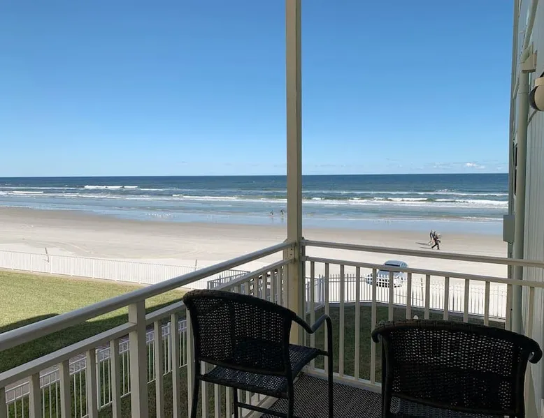 Come relax and rejuvenate your soul in this charming 1 bedroom 1 bath OCEAN VIEW CONDO Located on the 2nd floor and provides everything you need for a relaxing vacation. The space This Bright, and cheery unit is on the waters edge and steps to the beautiful white sands of New Smyrna Beach, a 1 bedroom 1 bath well equipped condo that provides everything you need for a relaxing vacation. The recently remodeled ocean view bedroom accommodates a king size bed, A/C, en-suite full bath and private balcony access where you can enjoy sweeping views of the ocean. The upgraded kitchen comes with new appliances, granite counter tops, a keurig coffee maker, and cookware. The condo is also equipped with plenty of plush towels, linens, beach towels, beach chairs, an umbrella and more to make your stay an unforgettable one. Coastal Waters is an oceanfront complex on the driving section of New Smyrna Beach. When you're not basking on the white sands of NSB, you'll find the complex provides great on-site amenities such as a heated swimming pool, 2 gas BBQ's and direct ocean access. Within walking distance to many great restaurants with just a short drive from Flagler Ave. Located near 27th avenue park, walking distance to some of NSB’s popular hometown restaurants and just minutes away from Flagler Avenue & Canal Street! There is parking in the front and an overflow parking across the street which can accommodate your trailer or boat, parking is first come first serve with appropriate parking pass. New Smyrna Beach is known for its small town character and family atmosphere. The warm climate, wide, white sand beaches, and variety of outdoor activities make this the perfect Florida beach vacation spot. PLEASE NOTE: We provide a "starter supply" of toilet paper, paper towels, hand soap, and trash bags. The starter supplies should suffice until a trip to the store is required. We do recommend you bring shampoo/conditioner, soap, coffee, and anything else you may need for your perfect vacation! Guest access All of our guests are welcome to use the common area of the complex, we offer a pool and BBQ area.