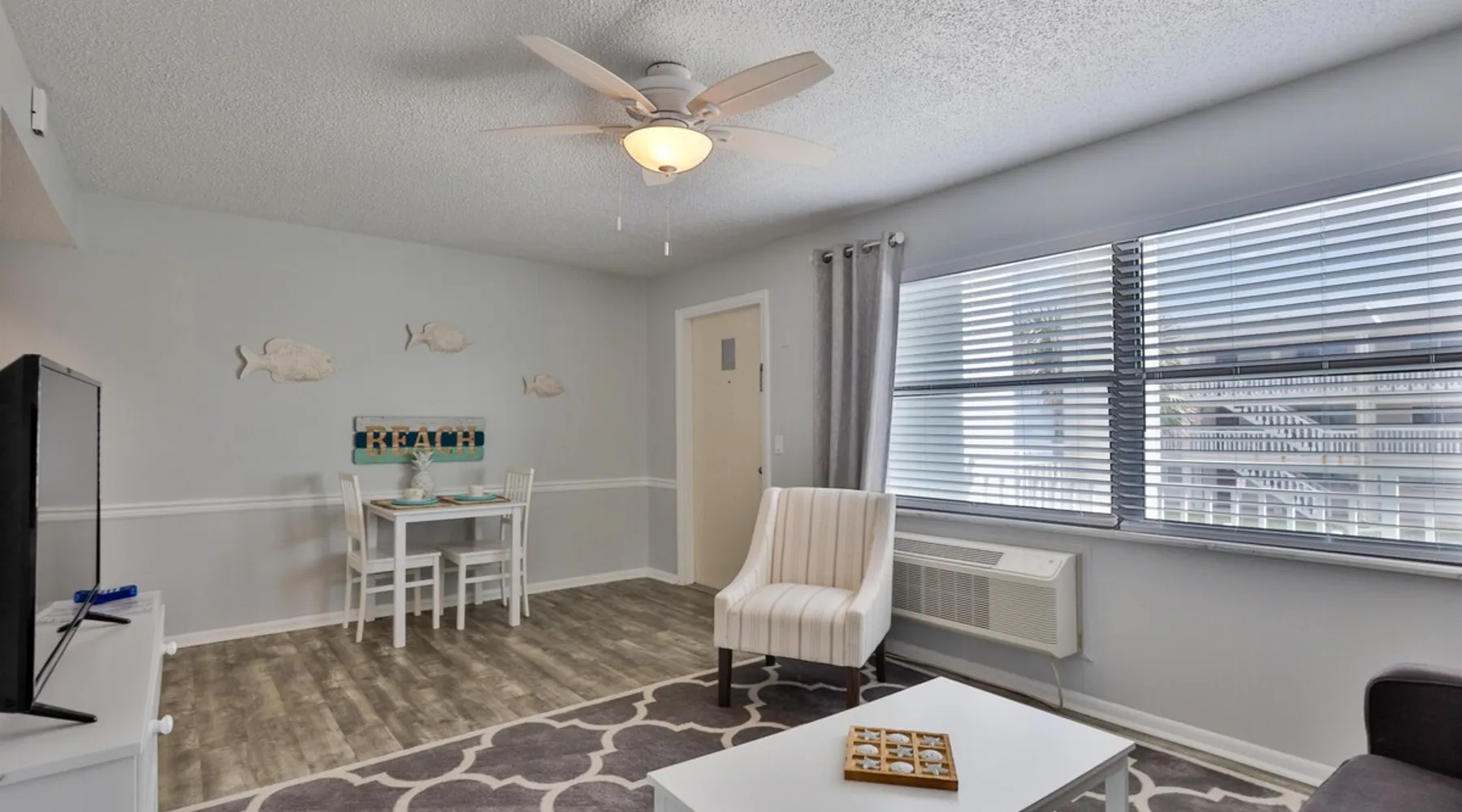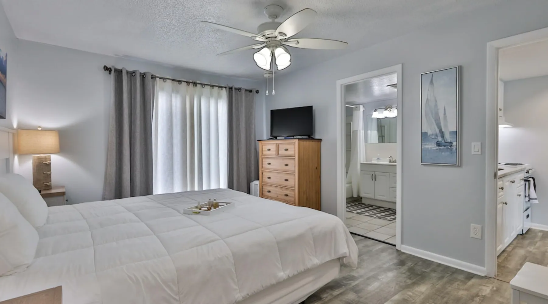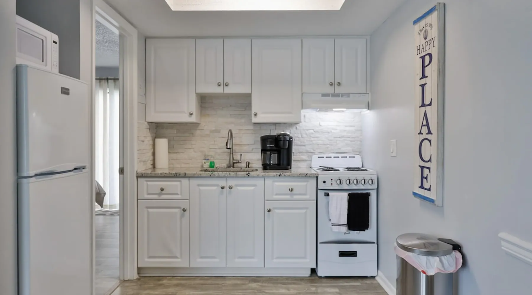 Come relax and rejuvenate your soul in this charming 1 bedroom 1 bath OCEAN VIEW CONDO Located on the 2nd floor and provides everything you need for a relaxing vacation. The space This Bright, and cheery unit is on the waters edge and steps to the beautiful white sands of New Smyrna Beach, a 1 bedroom 1 bath well equipped condo that provides everything you need for a relaxing vacation. The recently remodeled ocean view bedroom accommodates a king size bed, A/C, en-suite full bath and private balcony access where you can enjoy sweeping views of the ocean. The upgraded kitchen comes with new appliances, granite counter tops, a keurig coffee maker, and cookware. The condo is also equipped with plenty of plush towels, linens, beach towels, beach chairs, an umbrella and more to make your stay an unforgettable one. Coastal Waters is an oceanfront complex on the driving section of New Smyrna Beach. When you're not basking on the white sands of NSB, you'll find the complex provides great on-site amenities such as a heated swimming pool, 2 gas BBQ's and direct ocean access. Within walking distance to many great restaurants with just a short drive from Flagler Ave. Located near 27th avenue park, walking distance to some of NSB’s popular hometown restaurants and just minutes away from Flagler Avenue & Canal Street! There is parking in the front and an overflow parking across the street which can accommodate your trailer or boat, parking is first come first serve with appropriate parking pass. New Smyrna Beach is known for its small town character and family atmosphere. The warm climate, wide, white sand beaches, and variety of outdoor activities make this the perfect Florida beach vacation spot. PLEASE NOTE: We provide a "starter supply" of toilet paper, paper towels, hand soap, and trash bags. The starter supplies should suffice until a trip to the store is required. We do recommend you bring shampoo/conditioner, soap, coffee, and anything else you may need for your perfect vacation! Guest access All of our guests are welcome to use the common area of the complex, we offer a pool and BBQ area.