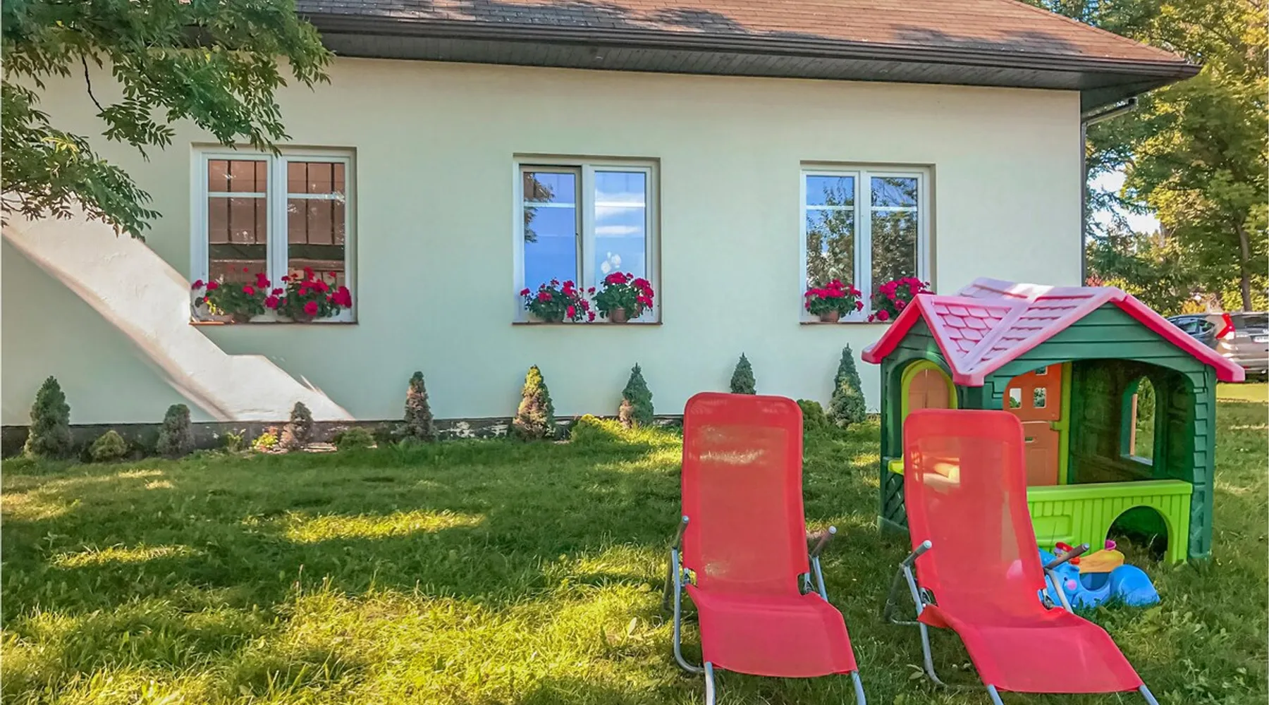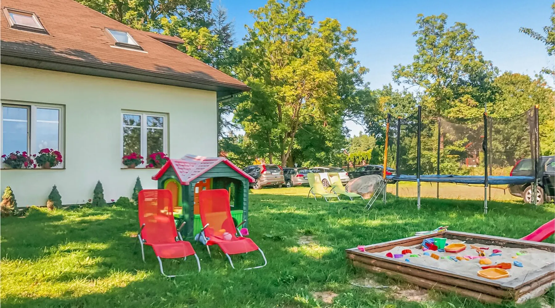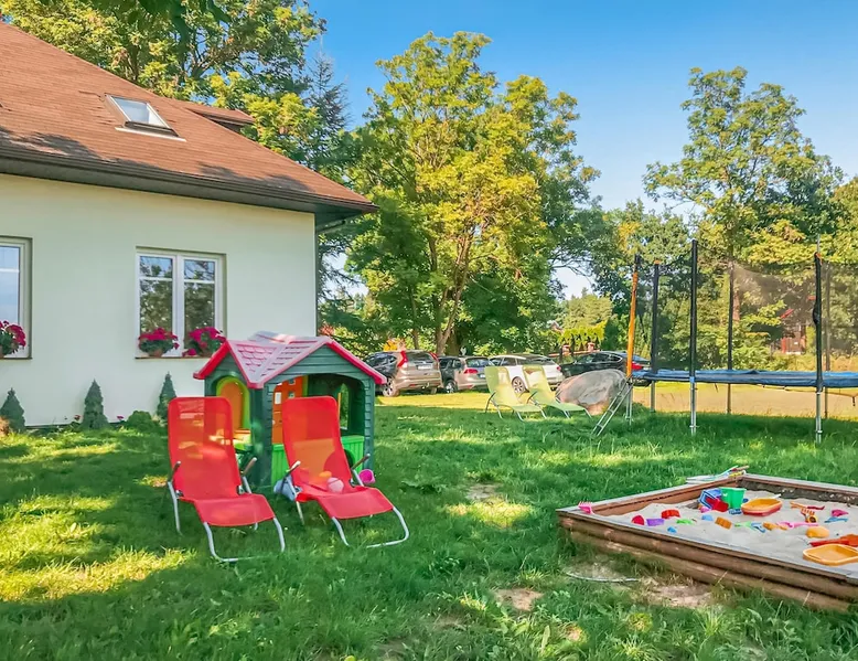 Comfortable holiday home in the village of Dbina. The space Comfortable holiday home in the village of Dbina. The holiday home is practically equipped and is an ideal place for a holiday with a large family or group of friends. A real paradise for children, the large fenced plot and the well-equipped playground will delight the youngest guests. Relax on the terrace while the children play and leave everyday life behind you. The small village of Dbina is located near Supsk and Rowy in a quiet and beautiful location. Here you are only 700 metres from the sandy beach and 2 km from Lake Gardno. Nearby you will find many meadows and forests with many oak trees. The house has a good starting point for excursions to the surrounding coastal towns such as eba or Ustka. In Miedzyzdroje you can visit the wax museum, the animal park, the lighthouse or the rope park. Welcome to Miedzyzdroje! Can comfortably fit up to 24 people Other things to note Please note that: Bed linen and towels are included in the room rate in 2025. Consumption costs are included in the room rate. Up to five pets are allowed.