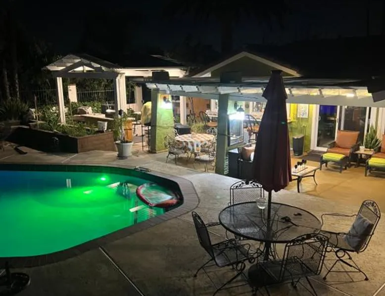 Spa and Wellness Center: Beautiful Foothill Home in Rancho Cucamonga offers a spa and wellness center with a swimming pool, sauna, and sun terrace. Guests can relax in the hot tub or enjoy the serene garden. Comfortable Accommodations: The homestay features family rooms, a lounge, and a fitness room. Free WiFi is available throughout the property, ensuring connectivity for all visitors. Convenient Amenities: Private check-in and check-out services, a paid airport shuttle, and free on-site parking enhance the stay. Additional facilities include a shared kitchen, laundry service, and outdoor seating areas. Local Attractions: Located 7.5 mi from LA/Ontario International Airport, Beautiful Foothill Home is near Auto Club Speedway (12 mi) and Ontario Mills (8.1 mi). Guests can enjoy hiking and visit nearby colleges such as Claremont McKenna College and Pomona College. This luxurious double room has a pool with a view, a hot tub and a sauna. Guests will find a stovetop, a refrigerator, a dishwasher and kitchenware in the kitchen. The double room also includes a barbecue. The spacious double room features air conditioning, Smartphone, as well as a shared bathroom boasting a bath and a shower. The unit has 1 bed.