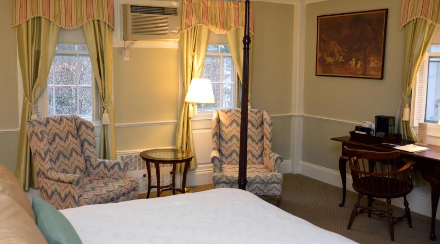 This historic 1716 hotel is on Monument Square in Concord. Guests at this hotel will find rooms with free Wi-Fi and cable TV. Concord’s Colonial Inn rooms include a coffee maker and a free newspaper. The rooms also have a private bathroom and hairdryer. The hotel features the Village Forge Tavern and a restaurant, which serves American and New England cuisine. Concord’s Inn is within a 10-minute walk of Emerson House and Concord Museum. The Minute Man National Historical Park and Minute Man Monument is one mile from the hotel. A cable TV is included in this room.