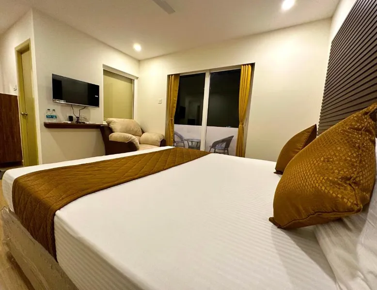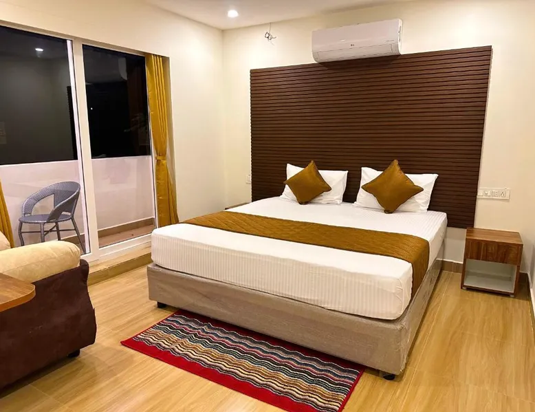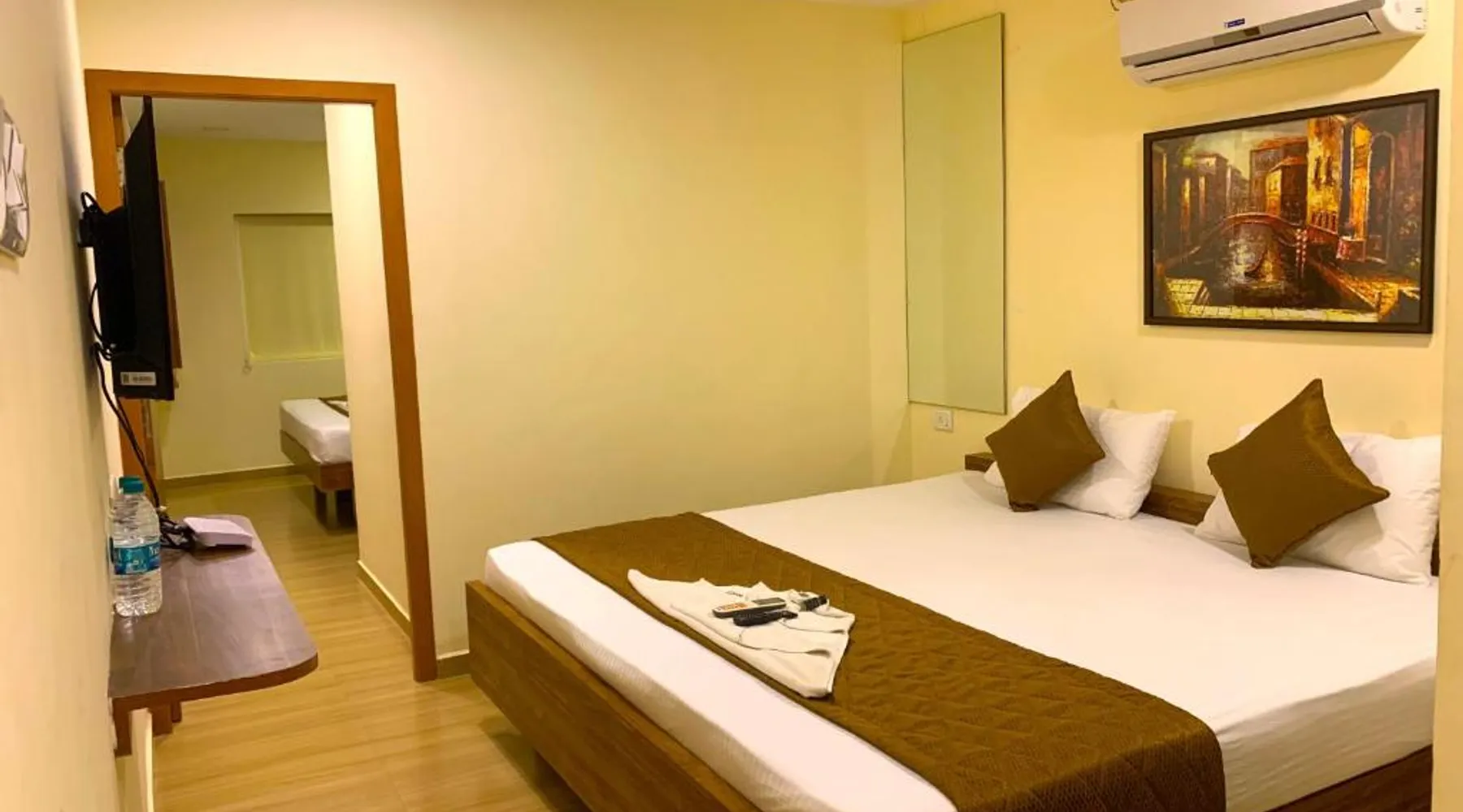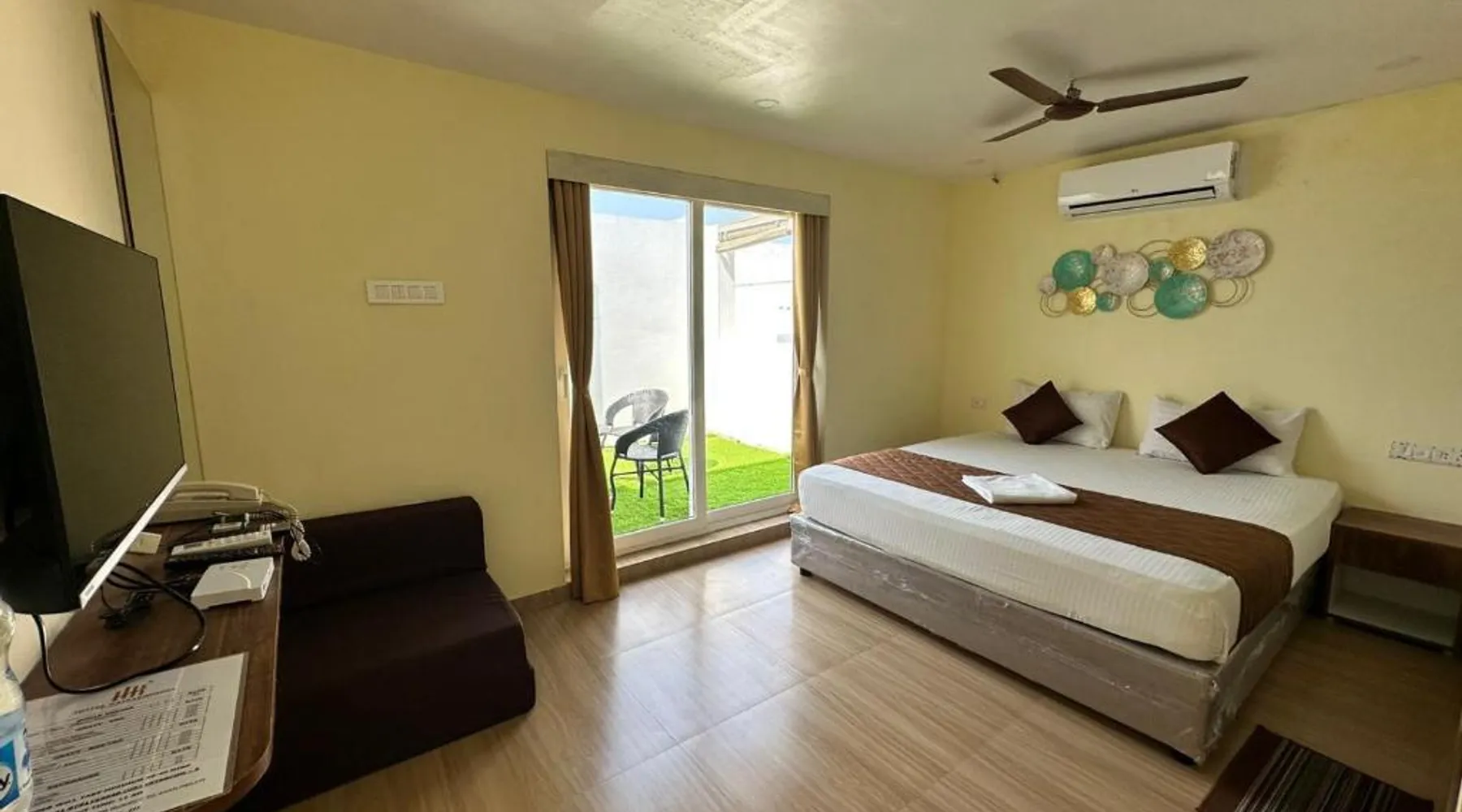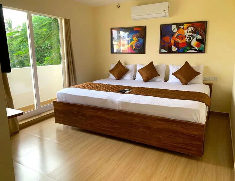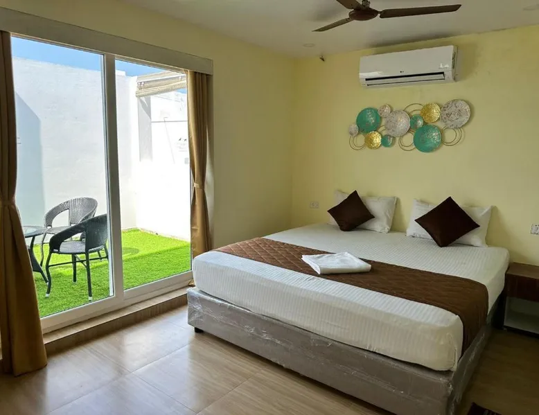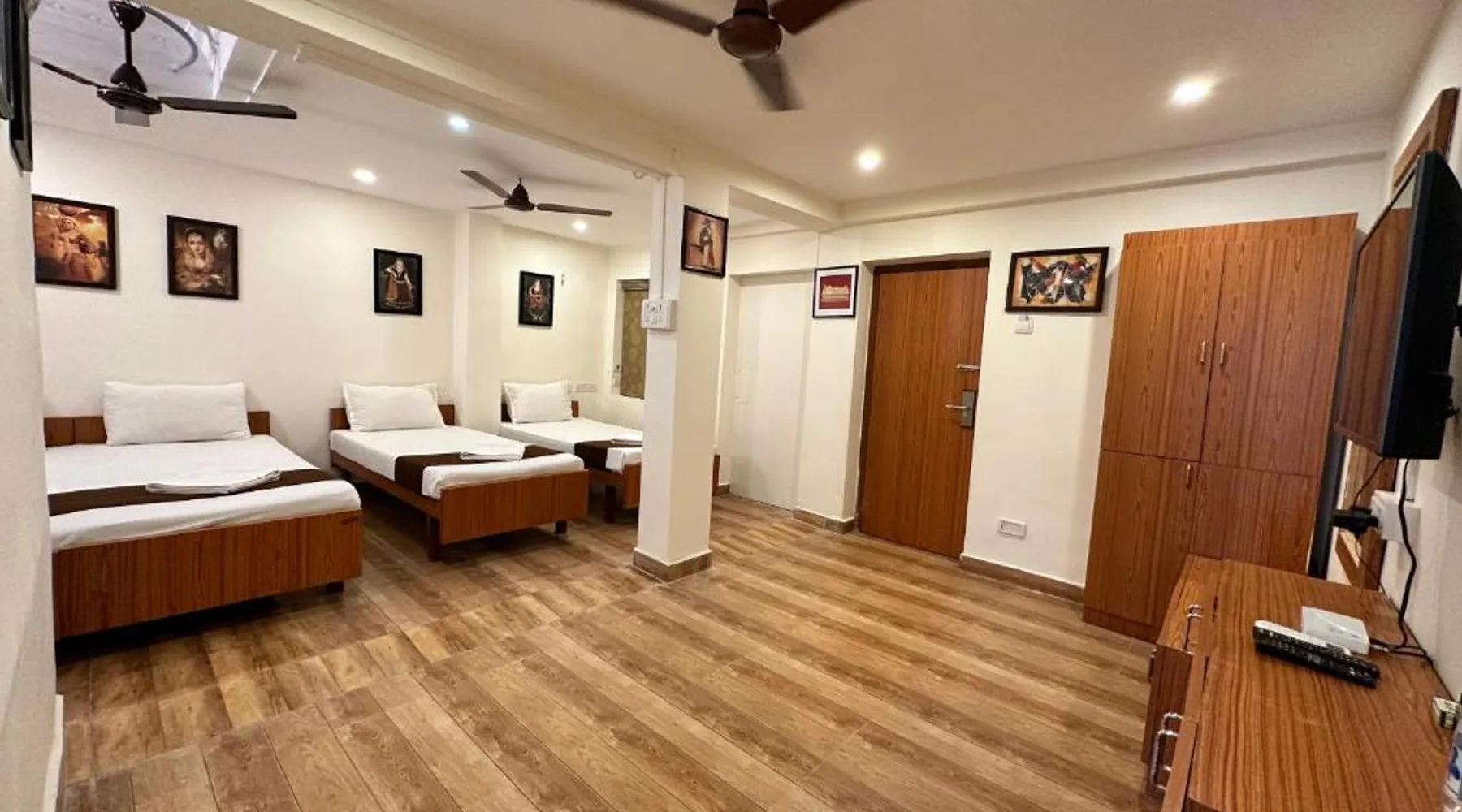 Comfortable Accommodations: Hotel Ramakrishna in Mamallapuram offers family rooms with air-conditioning, private bathrooms, and free WiFi. Each room includes a TV, wardrobe, and tiled floors. Convenient Facilities: Guests benefit from private check-in and check-out, a 24-hour front desk, concierge service, and a coffee shop. Additional services include a paid shuttle, elevator, bicycle parking, and free on-site private parking. Prime Location: Located 33 mi from Chennai International Airport, the hotel is a 2-minute walk from Pallava Beach. Nearby attractions include Arignar Anna Zoological Park (27 mi) and Nithya Kalyana Perumal Temple (12 mi). Guests appreciate the convenient location. This air-conditioned family room has a private bathroom, a seating area, a dining area as well as a patio. The unit has 2 beds.