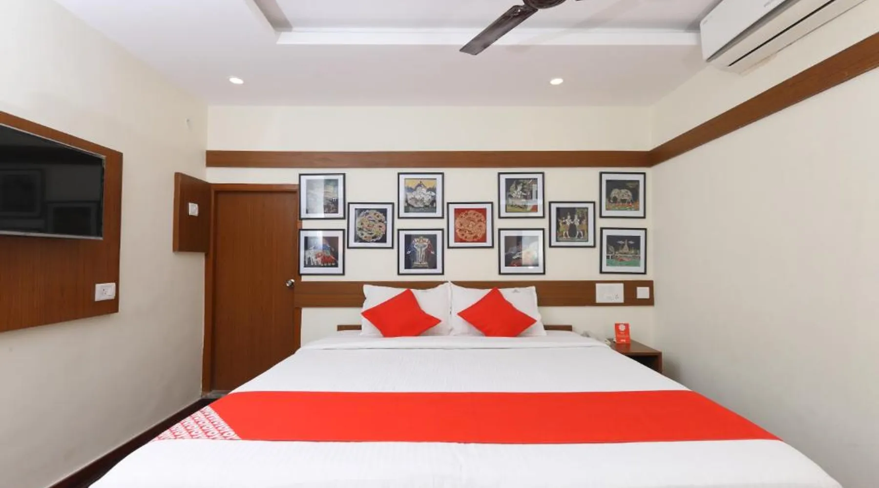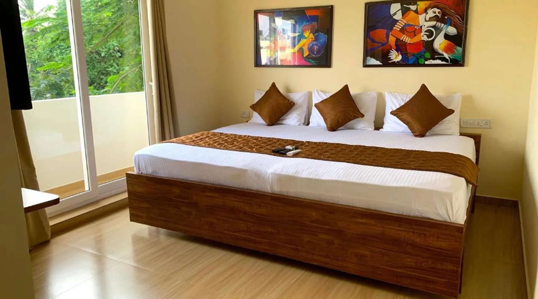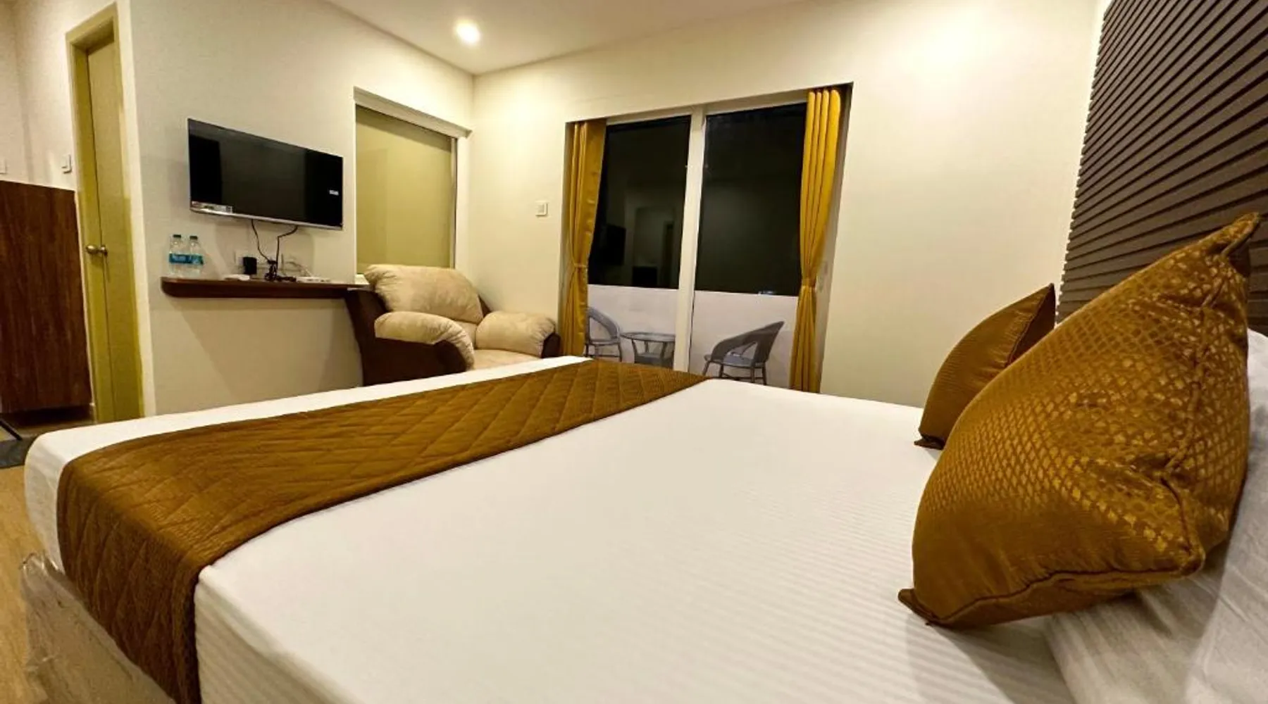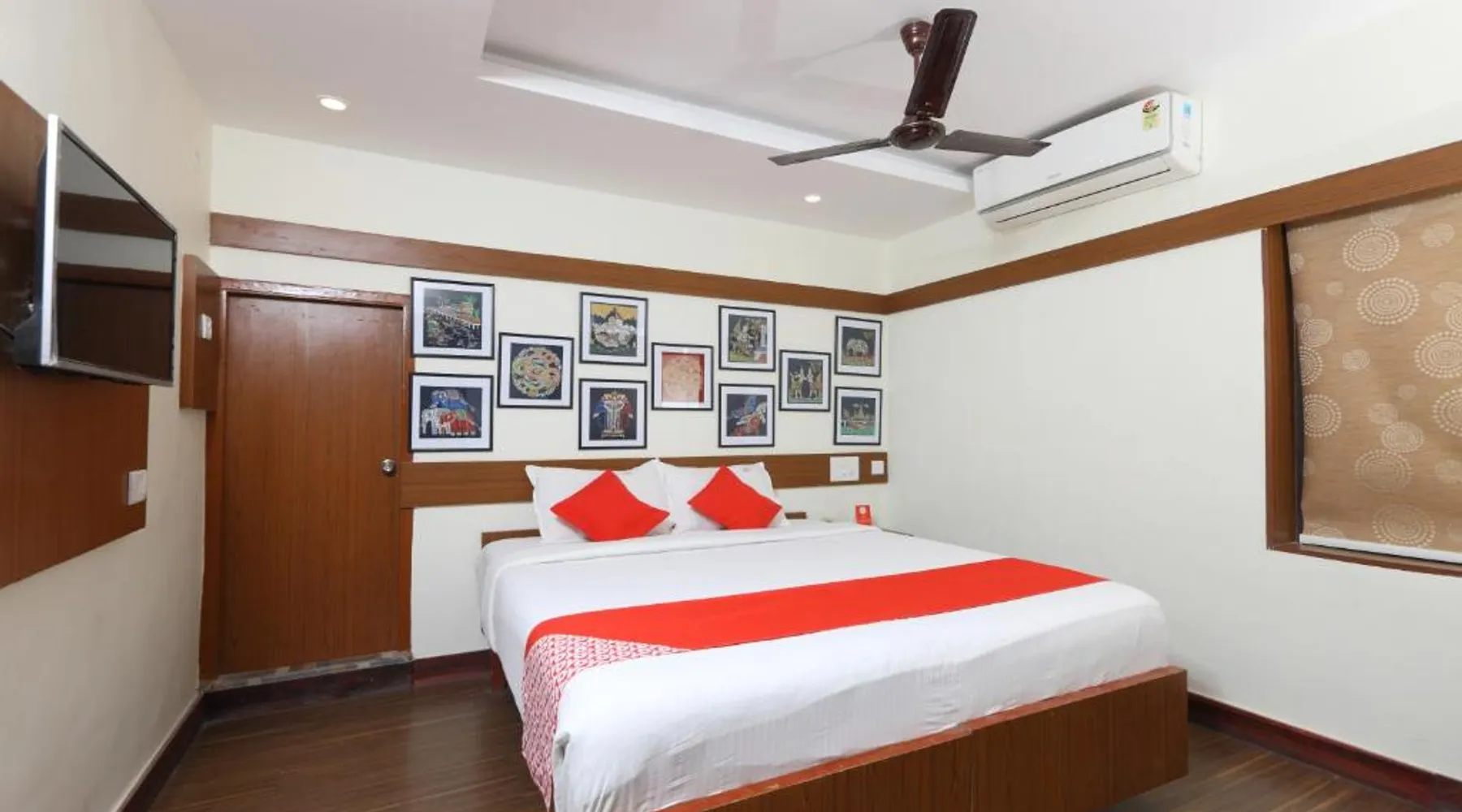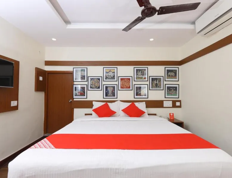 Comfortable Accommodations: Hotel Ramakrishna in Mamallapuram offers family rooms with air-conditioning, private bathrooms, and free WiFi. Each room includes a TV, wardrobe, and tiled floors. Convenient Facilities: Guests benefit from private check-in and check-out, a 24-hour front desk, concierge service, and a coffee shop. Additional services include a paid shuttle, elevator, bicycle parking, and free on-site private parking. Prime Location: Located 33 mi from Chennai International Airport, the hotel is a 2-minute walk from Pallava Beach. Nearby attractions include Arignar Anna Zoological Park (27 mi) and Nithya Kalyana Perumal Temple (12 mi). Guests appreciate the convenient location. This air-conditioned family room has a private bathroom, a seating area, a dining area as well as a patio. The unit has 2 beds.