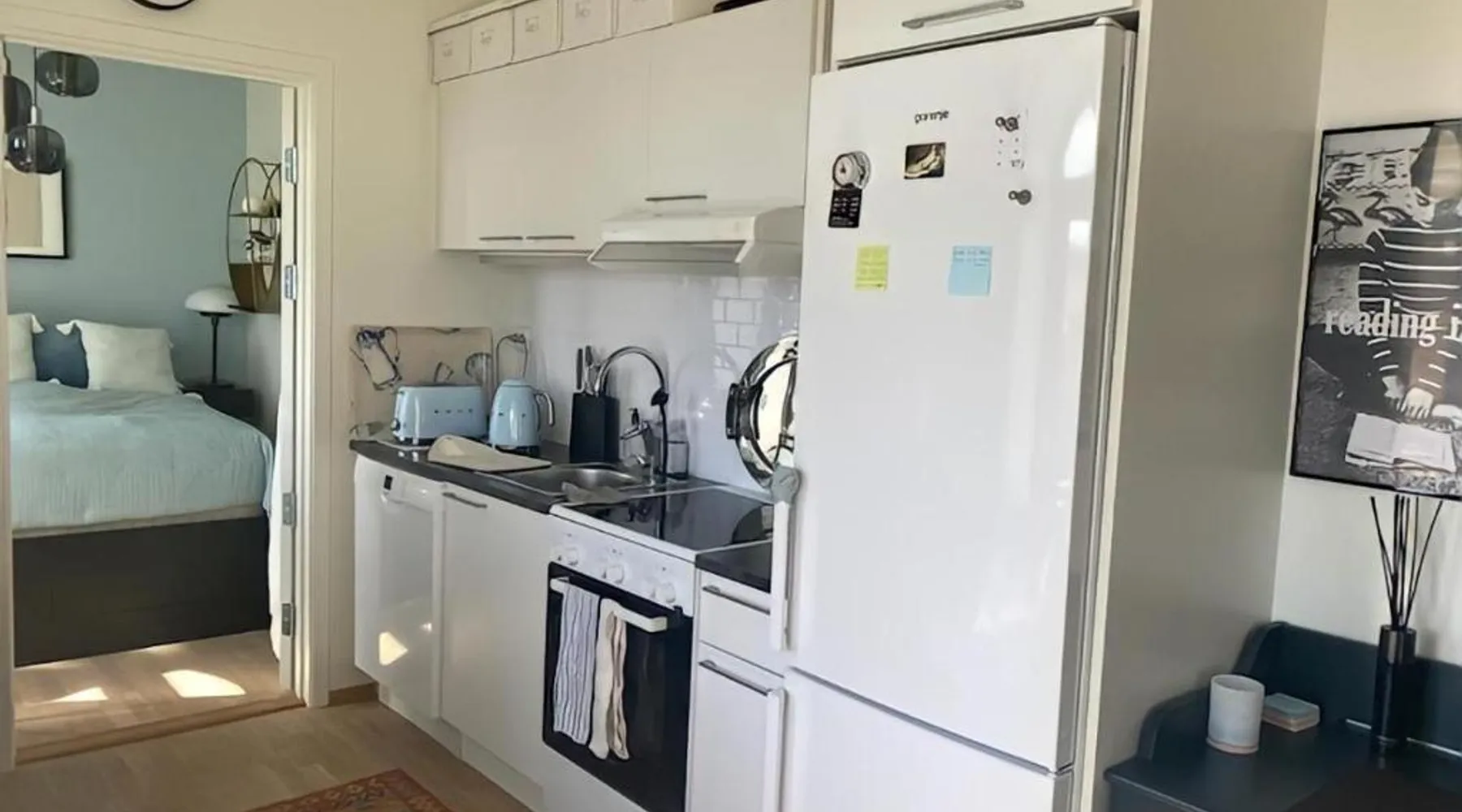 Comfortable Accommodations: Kongens Apartment St Joseph in Kristiansand offers a two-bedroom, two-bathroom apartment with parquet floors and a dining area. The property features a fully equipped kitchen with a refrigerator, dishwasher, oven, stovetop, toaster, and electric kettle. Modern Amenities: Guests enjoy free WiFi, a sun terrace, and streaming services. The apartment includes a washing machine, TV, and a dining table. Private check-in and check-out services, a elevator, and paid on-site parking are available. Prime Location: Located 11 mi from Kristiansand Kjevik Airport, the apartment is an 8-minute walk from Kristiansand City Beach. Nearby attractions include the University of Agder (3.1 mi), Kristiansand Zoo and Amusement Park (8.1 mi), and The Ibsen House (29 mi). Winter sports are available in the surroundings. Guest Satisfaction: Highly rated by guests for its central location, convenient location, and friendly host. Featuring 2 bedrooms and 2 bathrooms with a shower, this apartment offers a well-fitted kitchen and a terrace. The fully equipped kitchen features a stovetop, a refrigerator, a dishwasher and kitchenware. The apartment provides a tea and coffee maker, a dining area, a wardrobe, a flat-screen TV with streaming services, as well as a quiet street view. The unit has 2 beds.