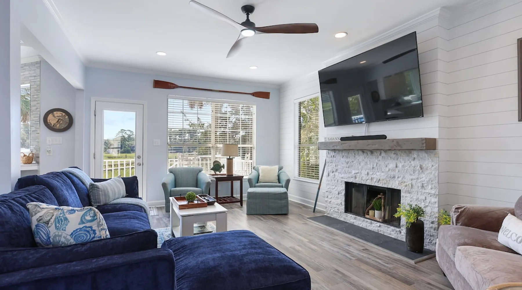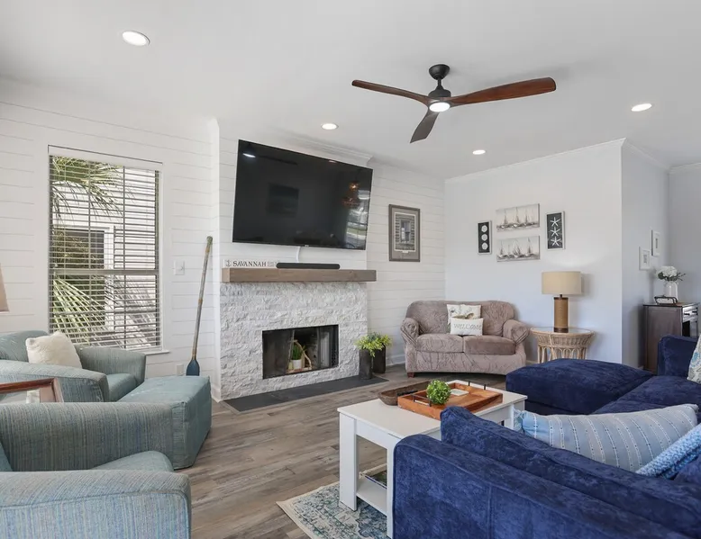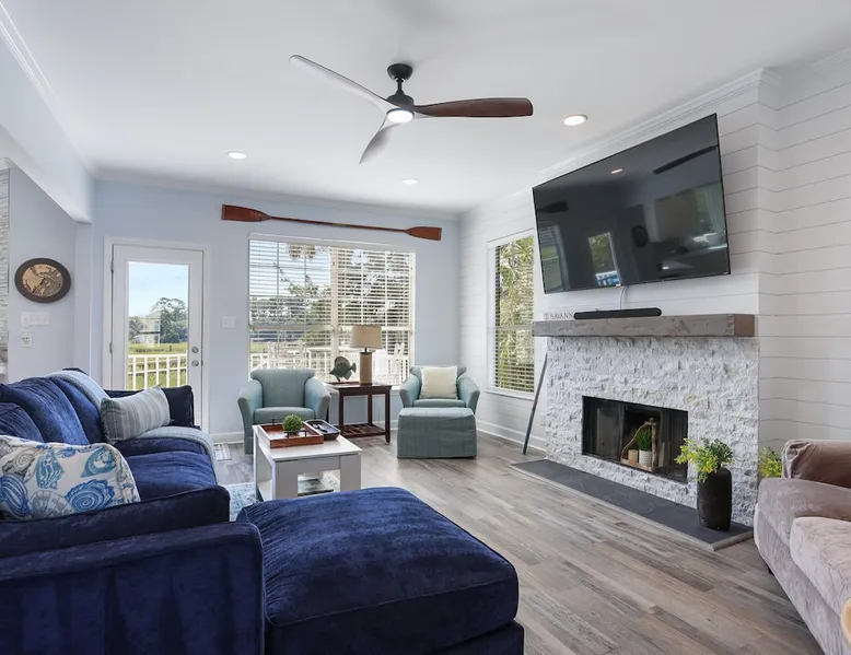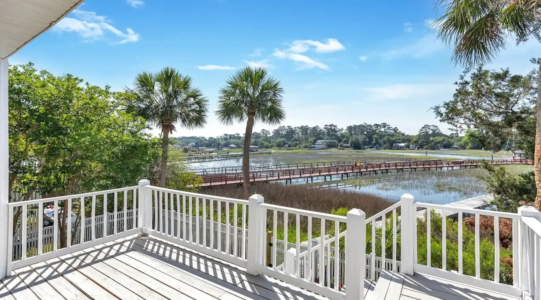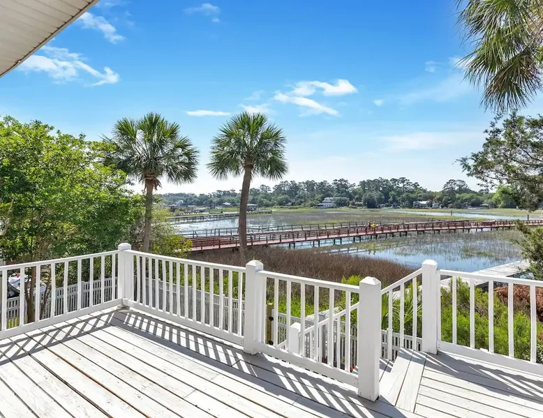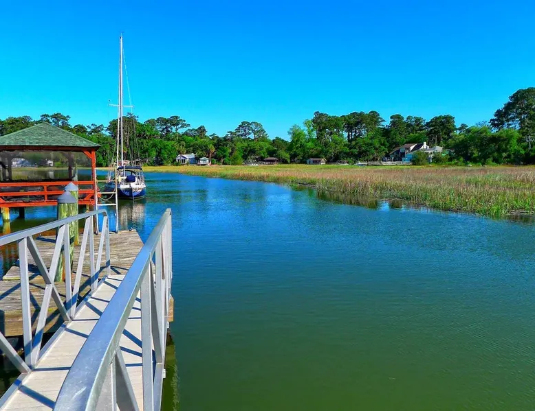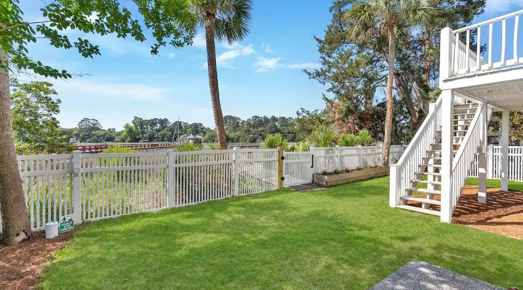 FULLY RENOVATED Creekside Island retreat! Experience the ultimate in entertainment: 15 min to historic and lovely downtown Savannah AND Tybee Island! Fine dining and shopping nearby. Convenient to I-95 and great entertainment; 4 minutes to marina for boat rentals & fishing charters. Enjoy salt-water fishing from your private dock with access to the Atlantic Ocean and breathtaking views of nature! Take it easy at this beautiful, unique, and tranquil getaway. Tesla Level 2 EV charger. Pets OK The space Back available after a full interior renovation! Enjoy gorgeous marsh and creek views, watch the beautiful sunrise AND sunset over the creek from your dock, beautiful kitchen, large bedrooms with Roku smart TVs, 3 renovated bathrooms, open floor plan, 75” TV with surround sound and gigabit Wi-Fi, brand new large washer/dryer, parking for 4 cars. HIGHLIGHTS: WELCOMING ENTRY: • Detailed, step by step check-in instructions • Covered entry with smart lock for convenient and secure access 24/7 • Guidebook with local recommendations • Parking for 4 cars (two in garage, two in driveway) BEAUTIFUL UPDATED KITCHEN • Well-stocked kitchen with toaster, and brand-new oven, stove, microwave, refrigerator, and dishwasher • Pots and pans, George Foreman grill, large electric skillet, K-cup and full carafe coffee pot with starter coffee, sugar, and creamers, electric tea pot, Ninja blender, electric wine opener • Cooking and dining essential tools and utensils, wine glasses, pitchers, napkins, paper towels, dish and dishwasher soap • Lovely views of the water and private dock through big picture windows that can open to the summer breeze! Long counter with island and stools overlooking the water. LIVING/DINING • Relax in the Living room with large sectional sofa and ottoman, two swivel chairs and a love seat, 75” TV, surround sound and WiFi, views of the creek • Dining room with seating for up to 10 people. BEDROOMS/BATH: sleeping for 10 Note that all 3 bedrooms are on the upper floor (2 floors up from garage) • Large primary suite with king bed with comfortable memory foam mattress and topper, newly updated private double vanity bathroom with walk-in shower, 55” Roku smart TV, clothes hanging area with suitcase stand, full-length mirror, and dresser. Desk with a nice view of the marsh in case you need to get a little work done. • Queen bedroom: Enjoy comfortable memory foam mattress, Roku smart TV, closet, chest of drawers, mirror. • Bunk Room: Queen under twin plus twin bunks (extra twin mattress if needed on the floor for more children). • Second floor FULL bathroom with tub • Main floor FULL bathroom with walk-in shower and large stackable washer and dryer • Bathroom amenities provided: towels, washcloths, hair dryers, shampoo, conditioner, body wash, hand soap, toilet paper PRIVATE BACKYARD & DOCK: • Secluded, fenced & gated back yard. • Gated entrance to your private dock. • Upper deck and lower screened in porch. • Outdoor furniture and lounger. • Large upper deck with beautiful view of the creek! Relax and enjoy the peaceful view from the deck! • Floating dock and beautiful wide creek! Deep water for boats! • Watch for fascinating birds, fish, occasional otters, and even dolphin off the dock! PLEASE NOTE: • Our coastal area is home to beautiful wildlife, as well as pests. We have a regular pest control service, but you may still occasionally see live, dead, or dying pests - particularly "Palmetto bugs". If you do, these most likely arrived after the last cleaning and will not be a reason for a refund. Thank you for your understanding. • Dogs must be crated when left unattended. • You will need to send a copy of your driver's license and sign a rental agreement after booking. Guest access You'll have access to the entire house, including back deck, fenced backyard, and private dock on the deep-water creek! Other things to note Items in garage available for your use: - twin air mattress - 4 beach chairs - 2 folding lawn chairs in carry bags - folding table - corn hole set - Croquet set - Tesla charger