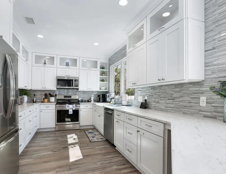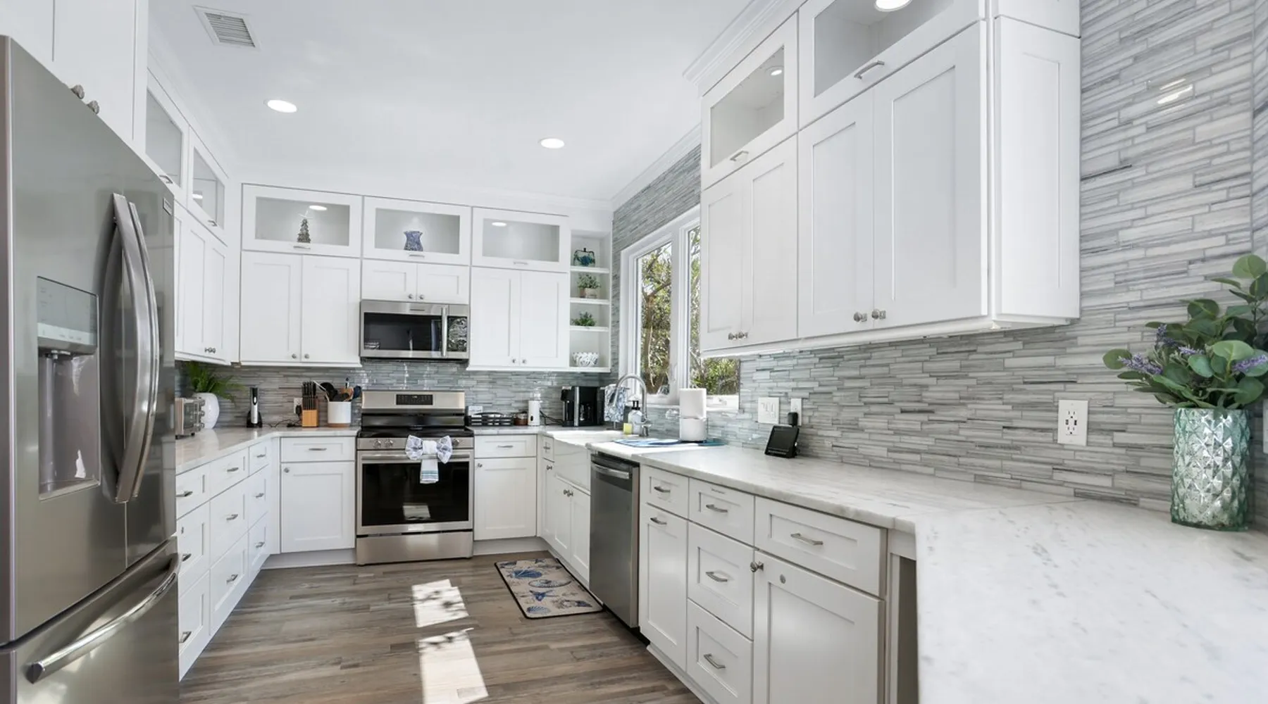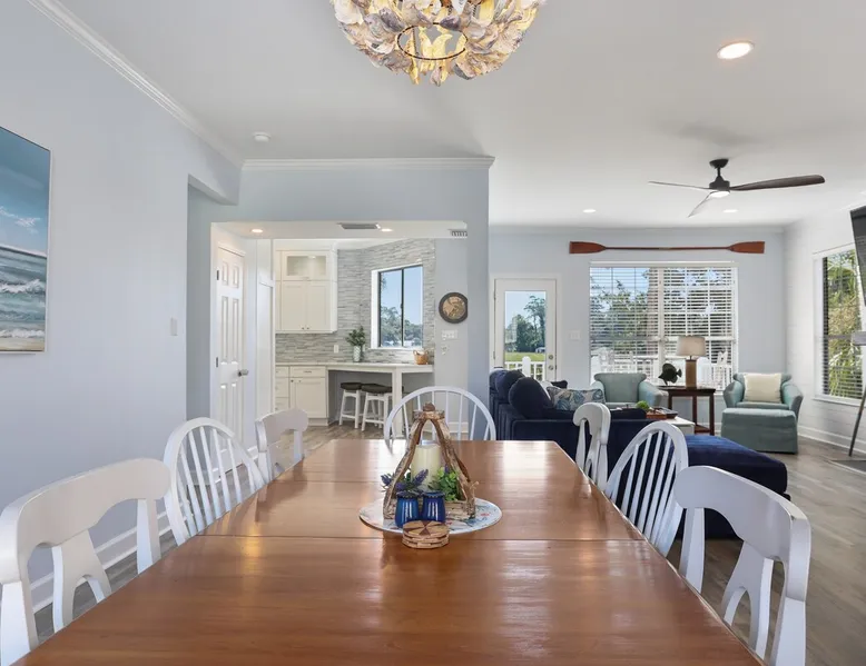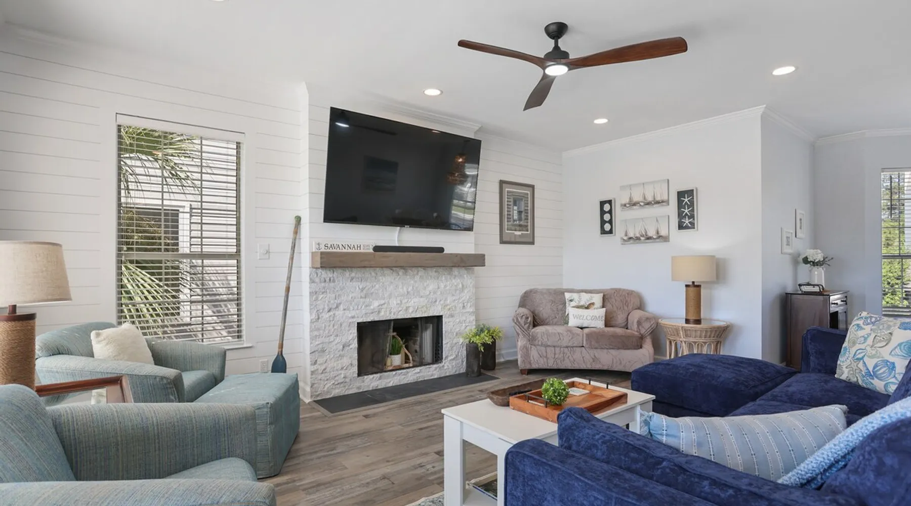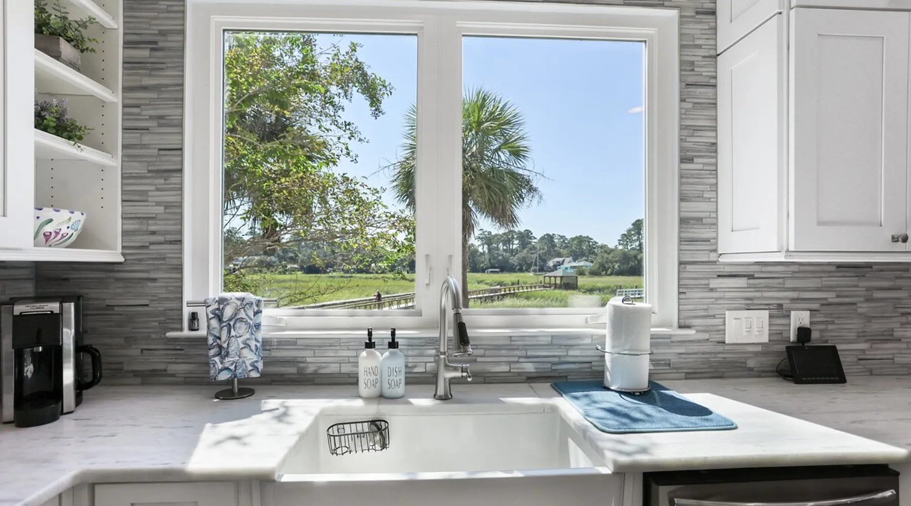 FULLY RENOVATED Creekside Island retreat! Experience the ultimate in entertainment: 15 min to historic and lovely downtown Savannah AND Tybee Island! Fine dining and shopping nearby. Convenient to I-95 and great entertainment; 4 minutes to marina for boat rentals & fishing charters. Enjoy salt-water fishing from your private dock with access to the Atlantic Ocean and breathtaking views of nature! Take it easy at this beautiful, unique, and tranquil getaway. Tesla Level 2 EV charger. Pets OK The space Back available after a full interior renovation! Enjoy gorgeous marsh and creek views, watch the beautiful sunrise AND sunset over the creek from your dock, beautiful kitchen, large bedrooms with Roku smart TVs, 3 renovated bathrooms, open floor plan, 75” TV with surround sound and gigabit Wi-Fi, brand new large washer/dryer, parking for 4 cars. HIGHLIGHTS: WELCOMING ENTRY: • Detailed, step by step check-in instructions • Covered entry with smart lock for convenient and secure access 24/7 • Guidebook with local recommendations • Parking for 4 cars (two in garage, two in driveway) BEAUTIFUL UPDATED KITCHEN • Well-stocked kitchen with toaster, and brand-new oven, stove, microwave, refrigerator, and dishwasher • Pots and pans, George Foreman grill, large electric skillet, K-cup and full carafe coffee pot with starter coffee, sugar, and creamers, electric tea pot, Ninja blender, electric wine opener • Cooking and dining essential tools and utensils, wine glasses, pitchers, napkins, paper towels, dish and dishwasher soap • Lovely views of the water and private dock through big picture windows that can open to the summer breeze! Long counter with island and stools overlooking the water. LIVING/DINING • Relax in the Living room with large sectional sofa and ottoman, two swivel chairs and a love seat, 75” TV, surround sound and WiFi, views of the creek • Dining room with seating for up to 10 people. BEDROOMS/BATH: sleeping for 10 Note that all 3 bedrooms are on the upper floor (2 floors up from garage) • Large primary suite with king bed with comfortable memory foam mattress and topper, newly updated private double vanity bathroom with walk-in shower, 55” Roku smart TV, clothes hanging area with suitcase stand, full-length mirror, and dresser. Desk with a nice view of the marsh in case you need to get a little work done. • Queen bedroom: Enjoy comfortable memory foam mattress, Roku smart TV, closet, chest of drawers, mirror. • Bunk Room: Queen under twin plus twin bunks (extra twin mattress if needed on the floor for more children). • Second floor FULL bathroom with tub • Main floor FULL bathroom with walk-in shower and large stackable washer and dryer • Bathroom amenities provided: towels, washcloths, hair dryers, shampoo, conditioner, body wash, hand soap, toilet paper PRIVATE BACKYARD & DOCK: • Secluded, fenced & gated back yard. • Gated entrance to your private dock. • Upper deck and lower screened in porch. • Outdoor furniture and lounger. • Large upper deck with beautiful view of the creek! Relax and enjoy the peaceful view from the deck! • Floating dock and beautiful wide creek! Deep water for boats! • Watch for fascinating birds, fish, occasional otters, and even dolphin off the dock! PLEASE NOTE: • Our coastal area is home to beautiful wildlife, as well as pests. We have a regular pest control service, but you may still occasionally see live, dead, or dying pests - particularly "Palmetto bugs". If you do, these most likely arrived after the last cleaning and will not be a reason for a refund. Thank you for your understanding. • Dogs must be crated when left unattended. • You will need to send a copy of your driver's license and sign a rental agreement after booking. Guest access You'll have access to the entire house, including back deck, fenced backyard, and private dock on the deep-water creek! Other things to note Items in garage available for your use: - twin air mattress - 4 beach chairs - 2 folding lawn chairs in carry bags - folding table - corn hole set - Croquet set - Tesla charger